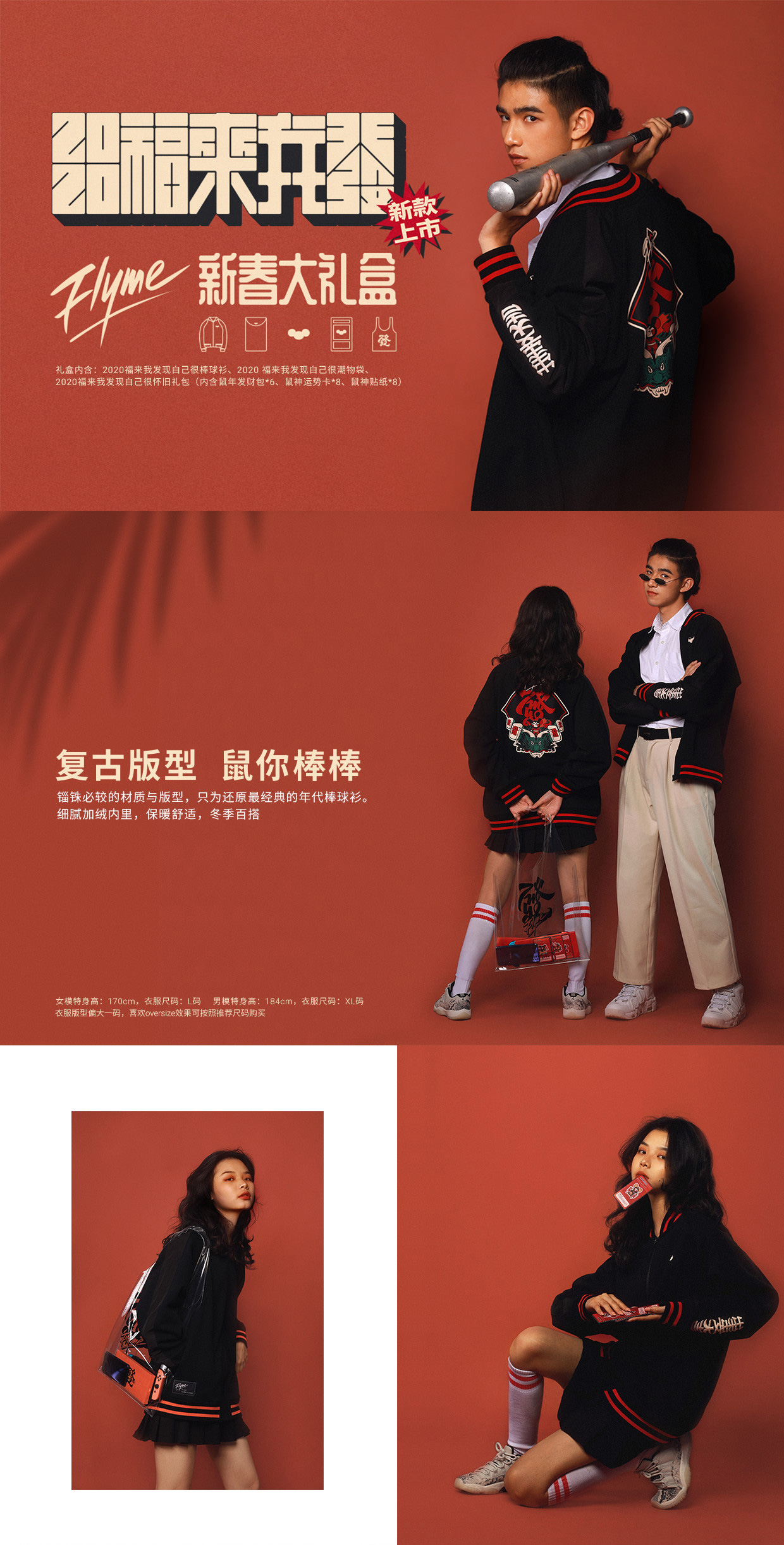 Flyme 原创设计/ 鼠年春节套装 / 复古潮流 / 棒球衫 / 怀旧礼包 / 情侣装