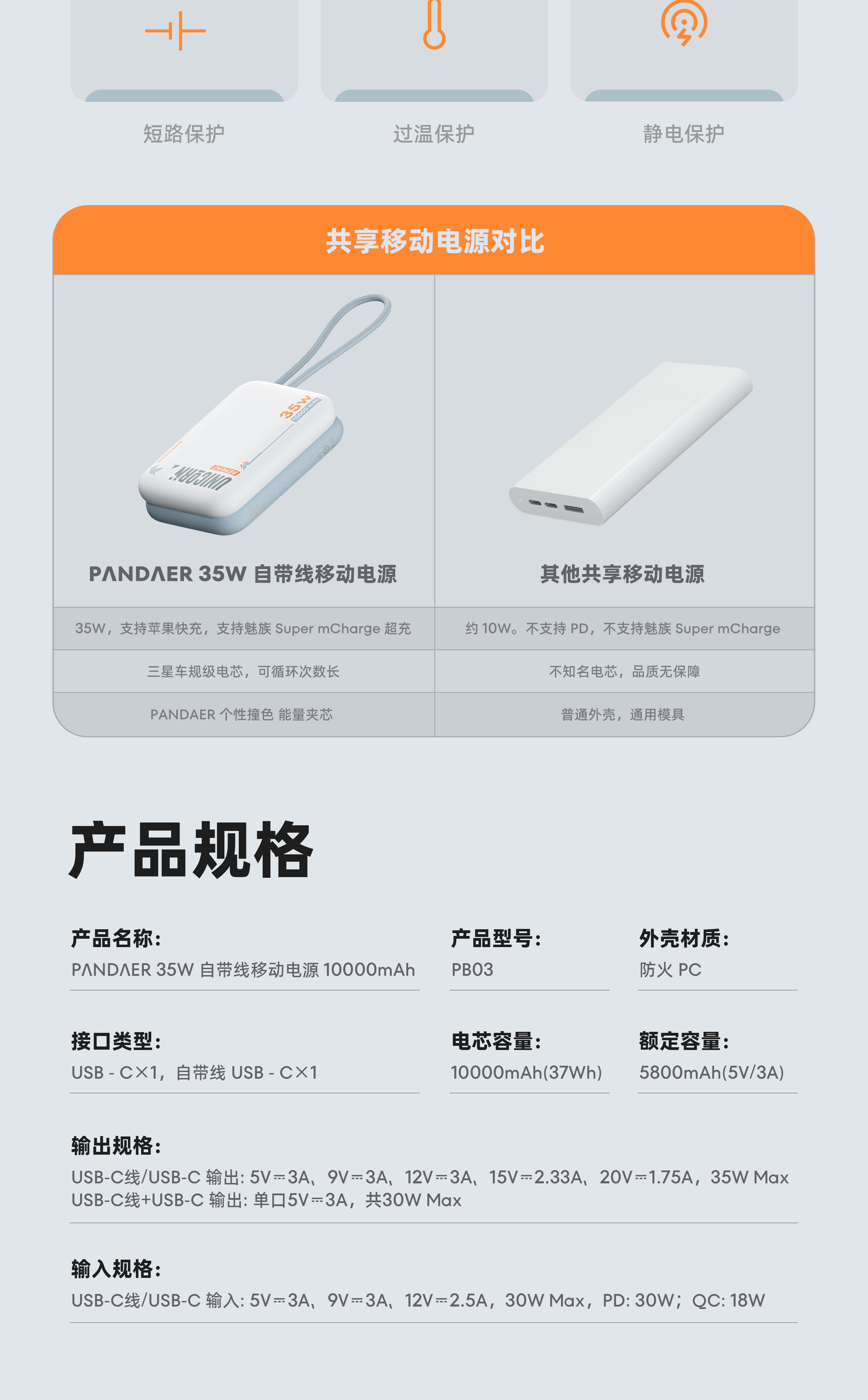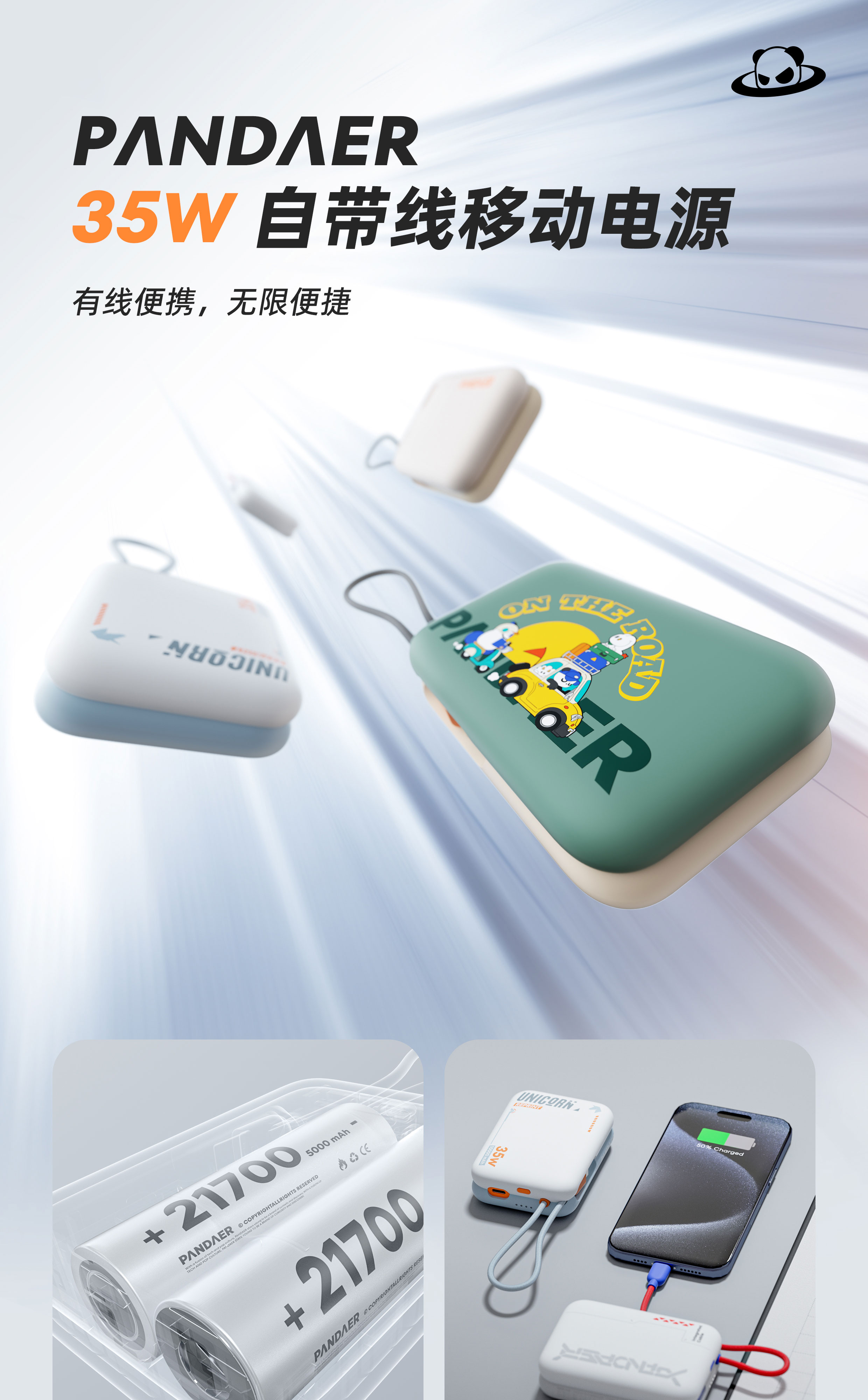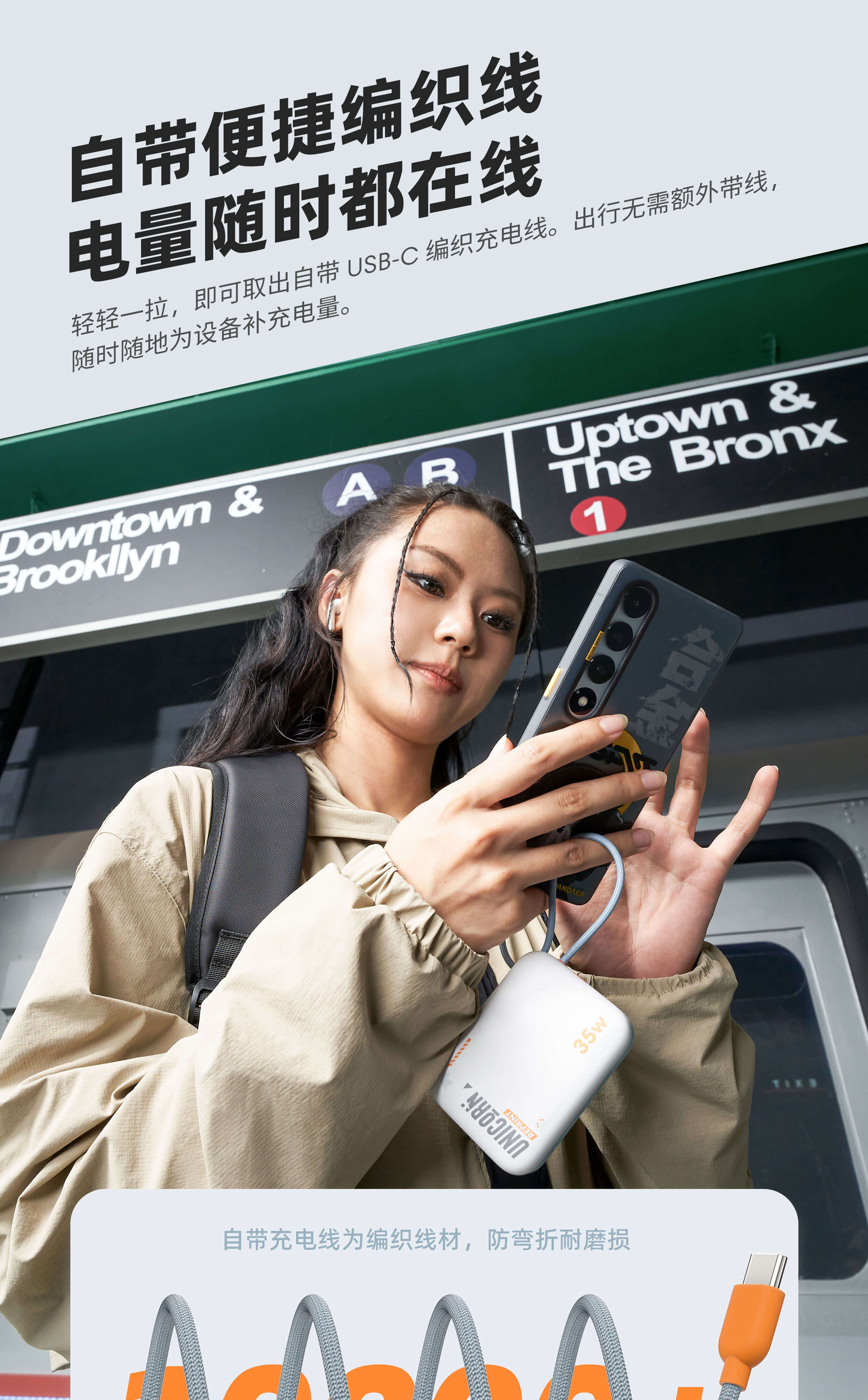 【3c认证】【可上飞机】优质车规级电芯 | 35W MAX | 支持 USB-C 端口 / USB-C 充电线同时输出 | 约银行卡大小 | 多协议快充 | 37Wh 可登机