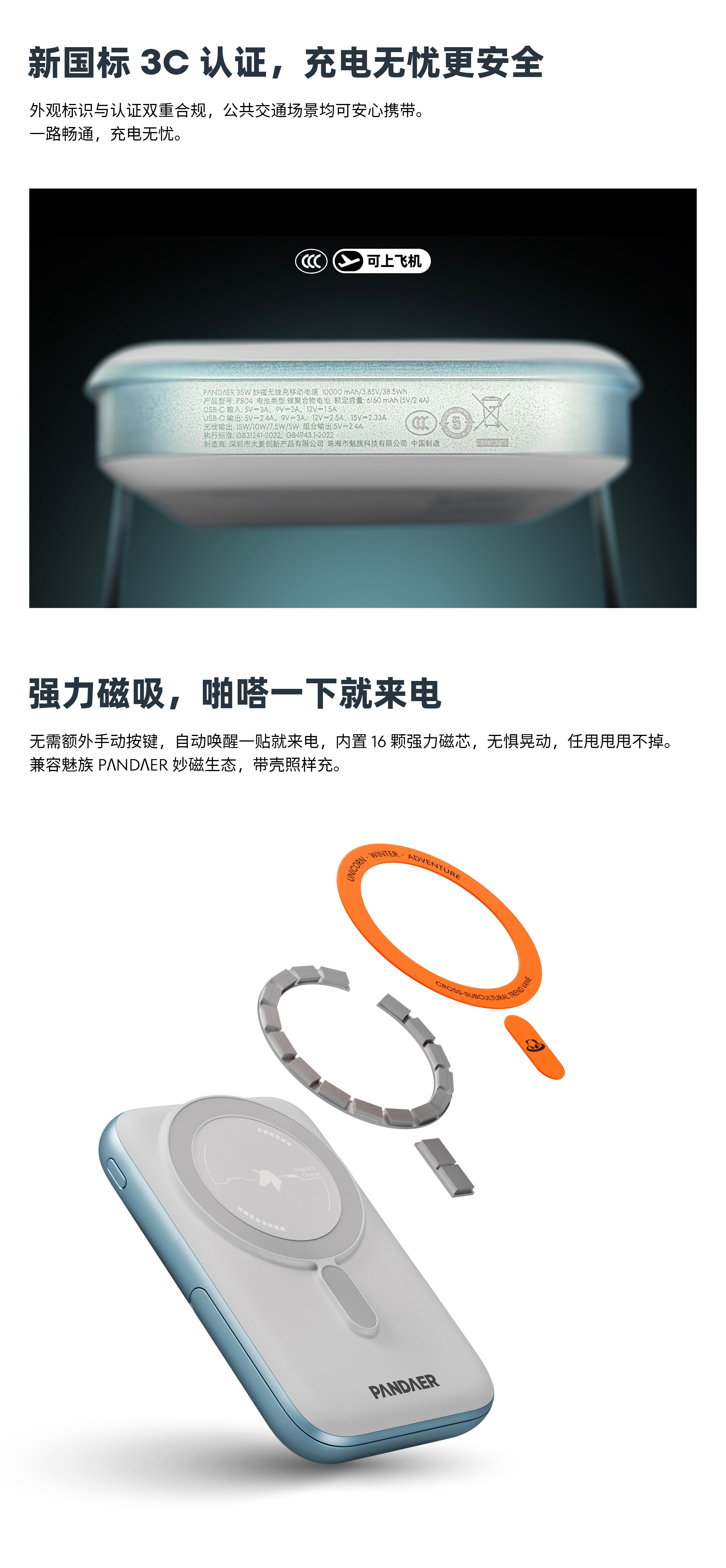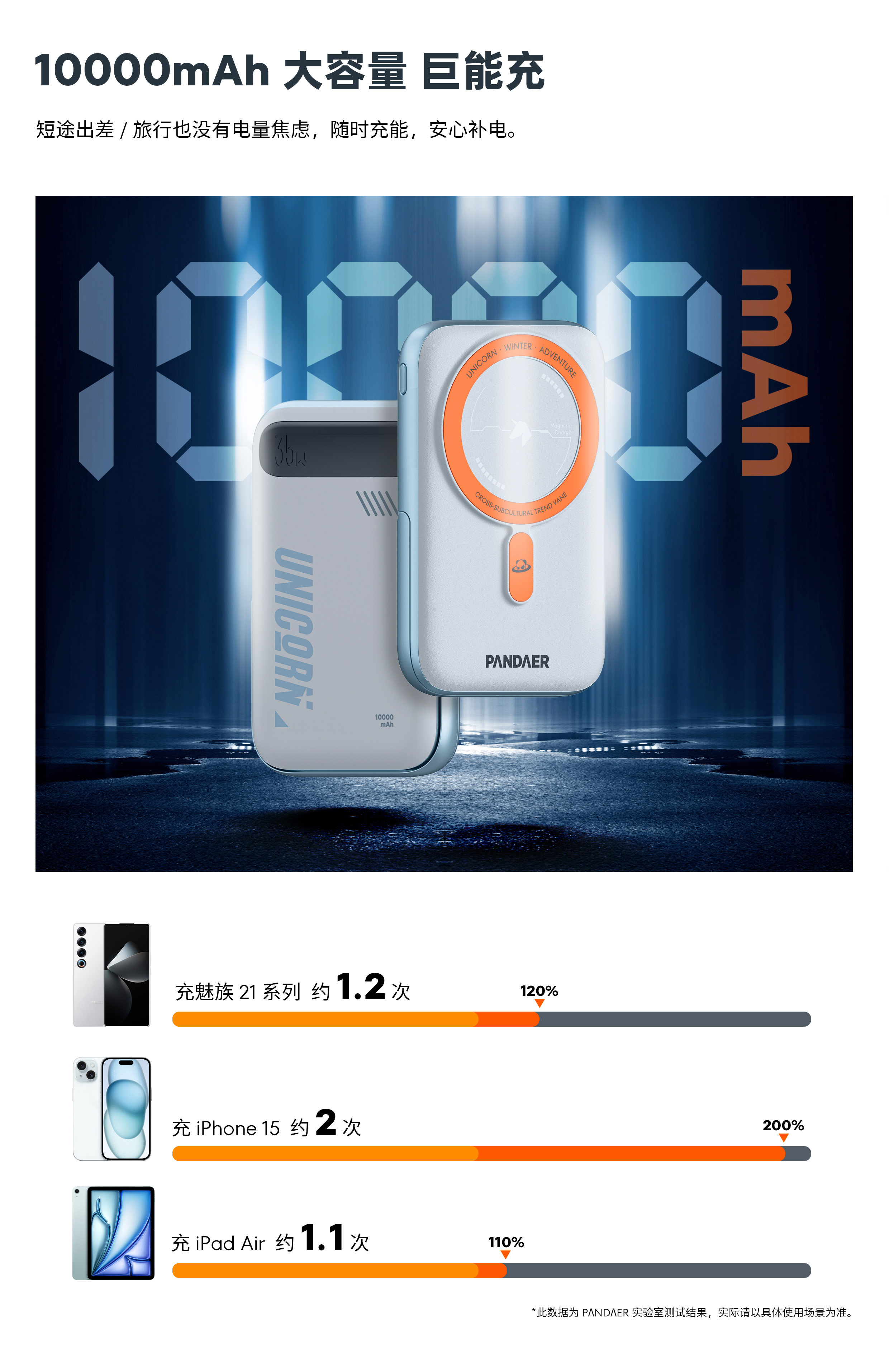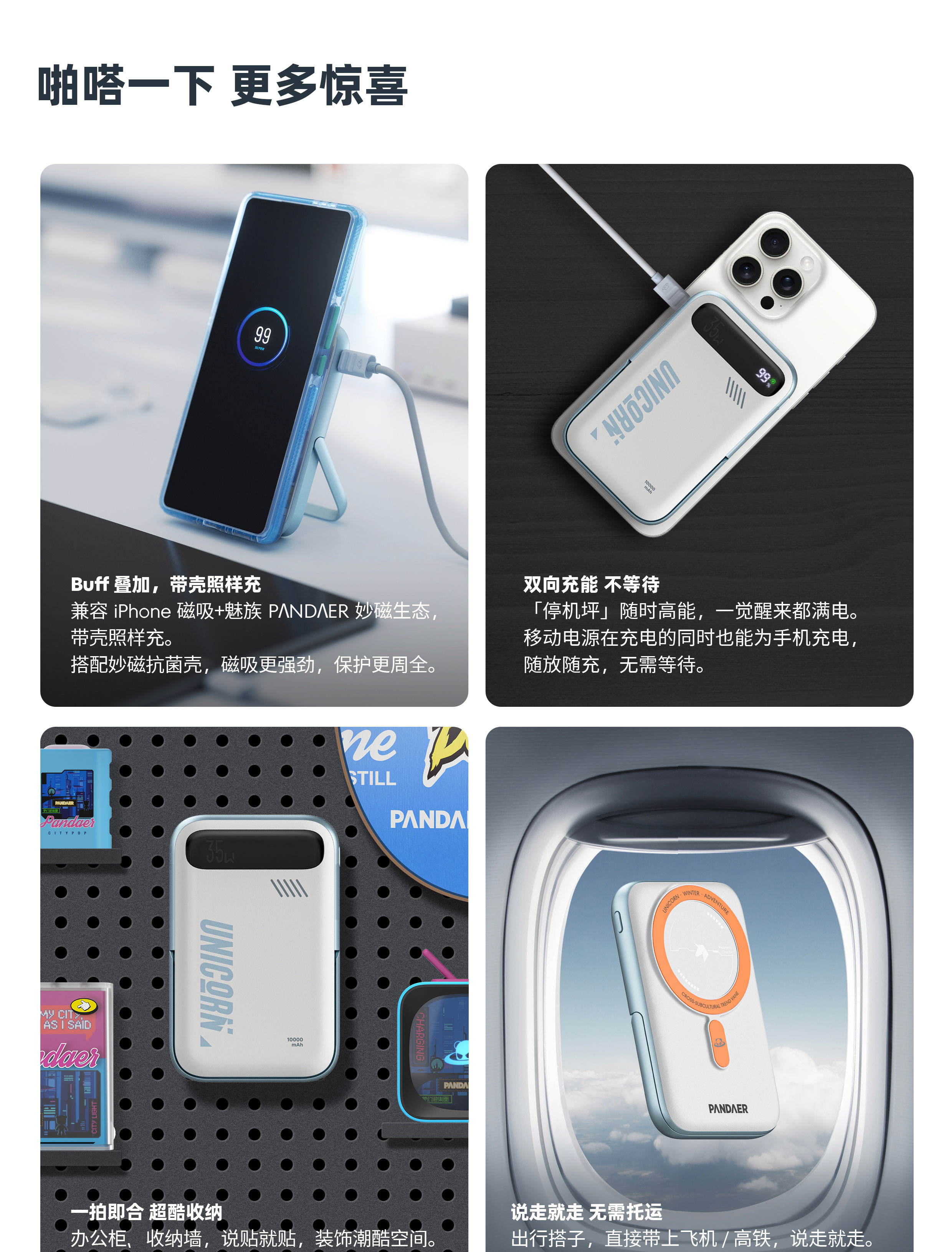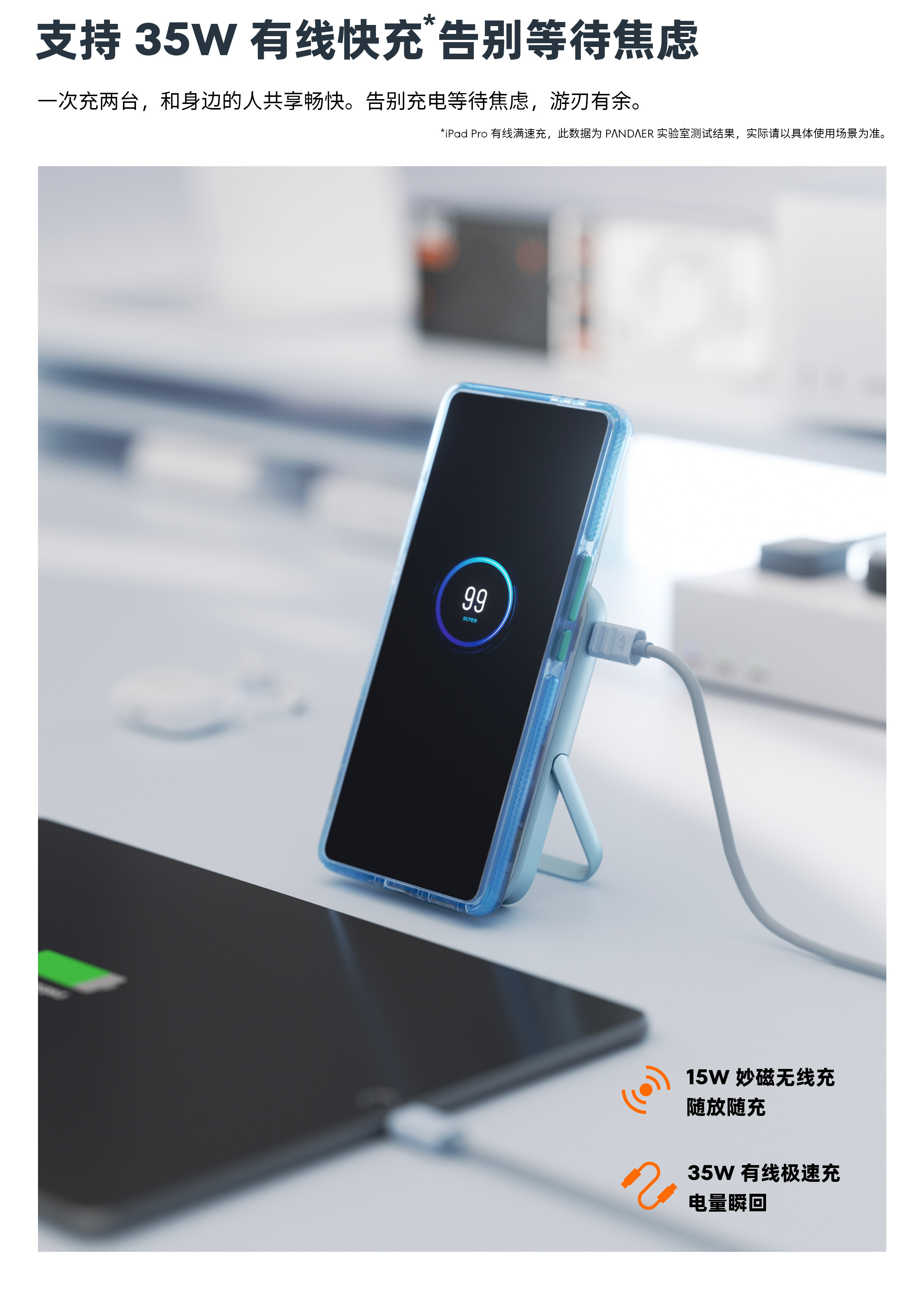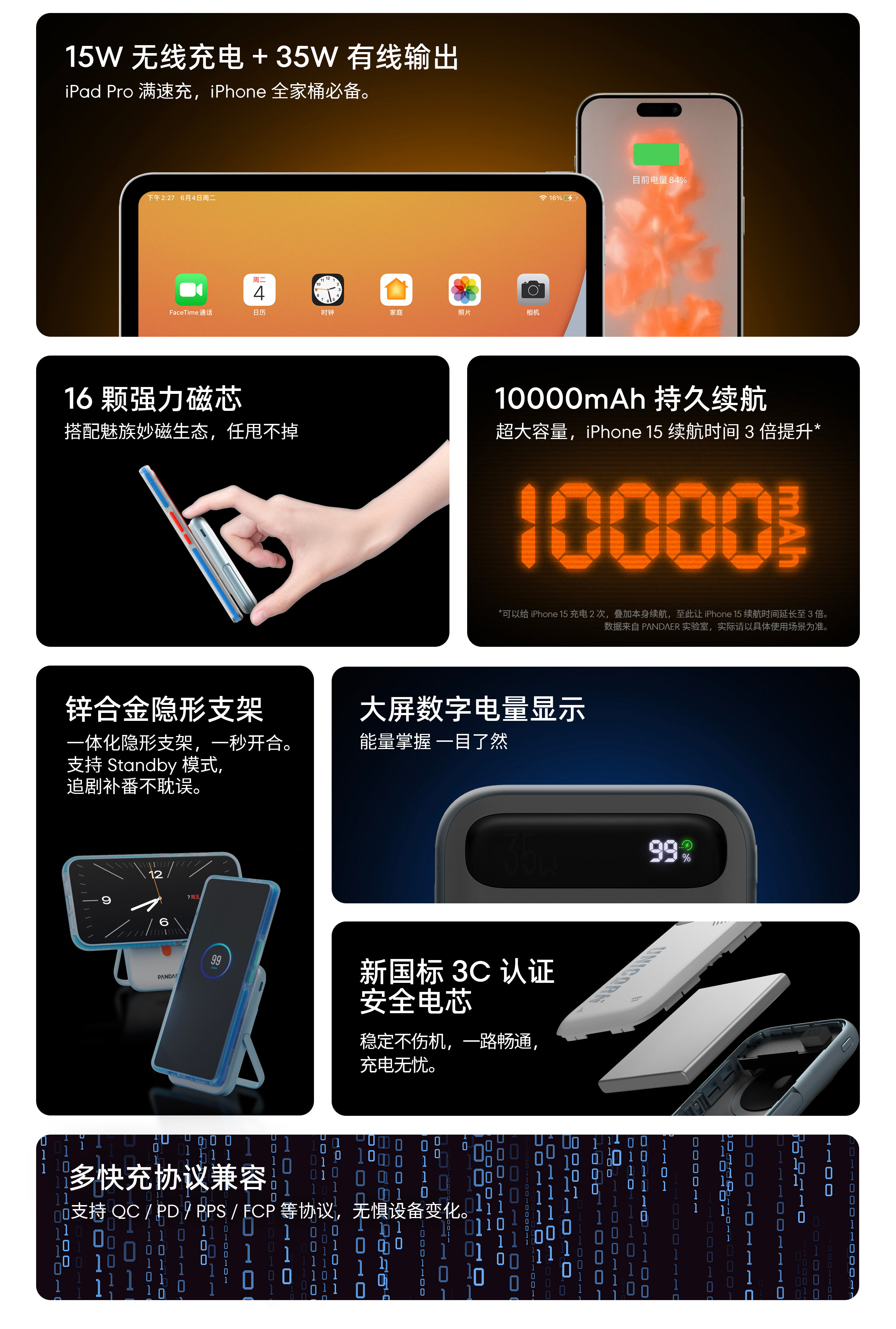 15W 无线充电 | 35W 有线快充 | 10000mAh 容量 | 数字电量显示 | 锌合金隐藏支架