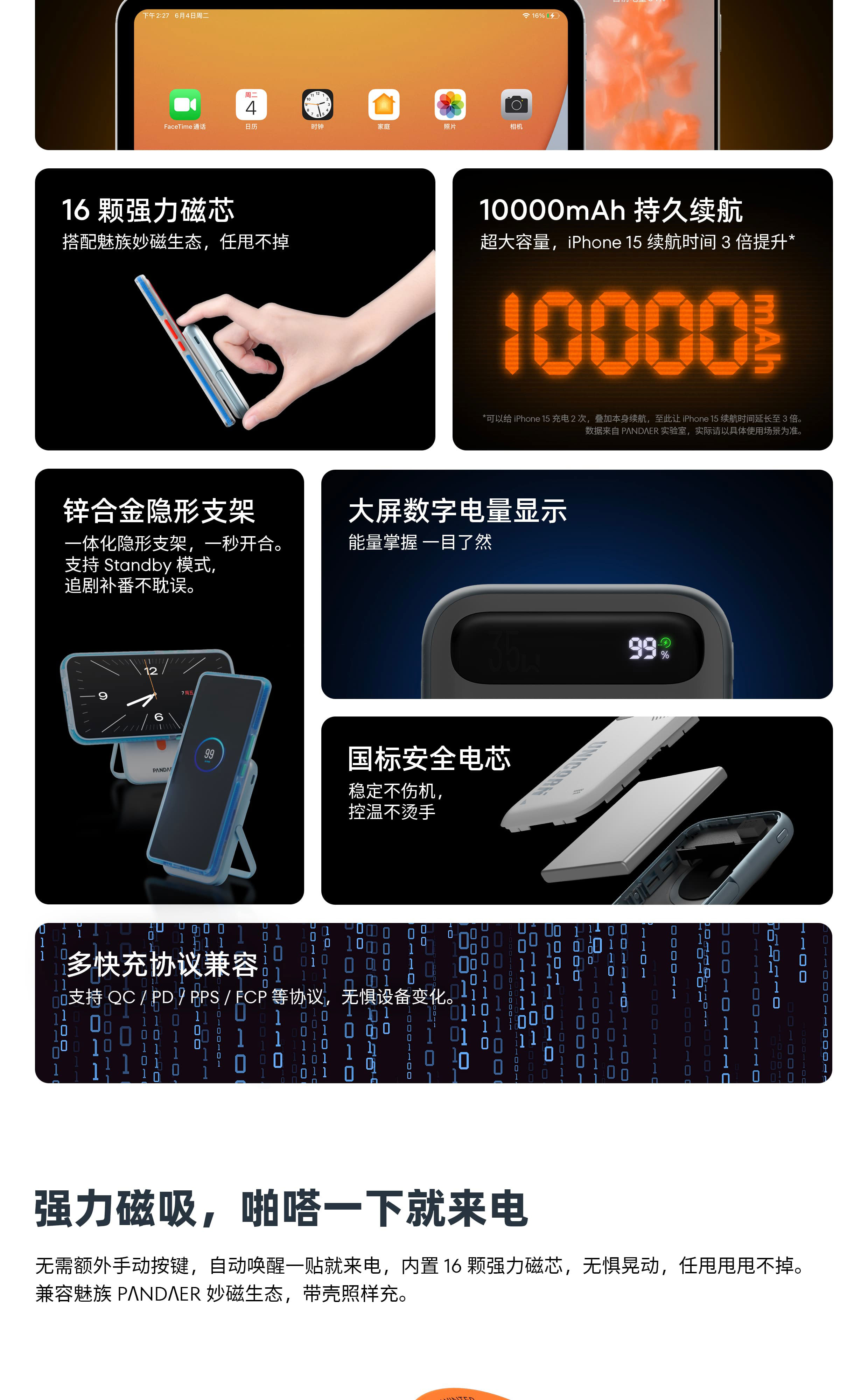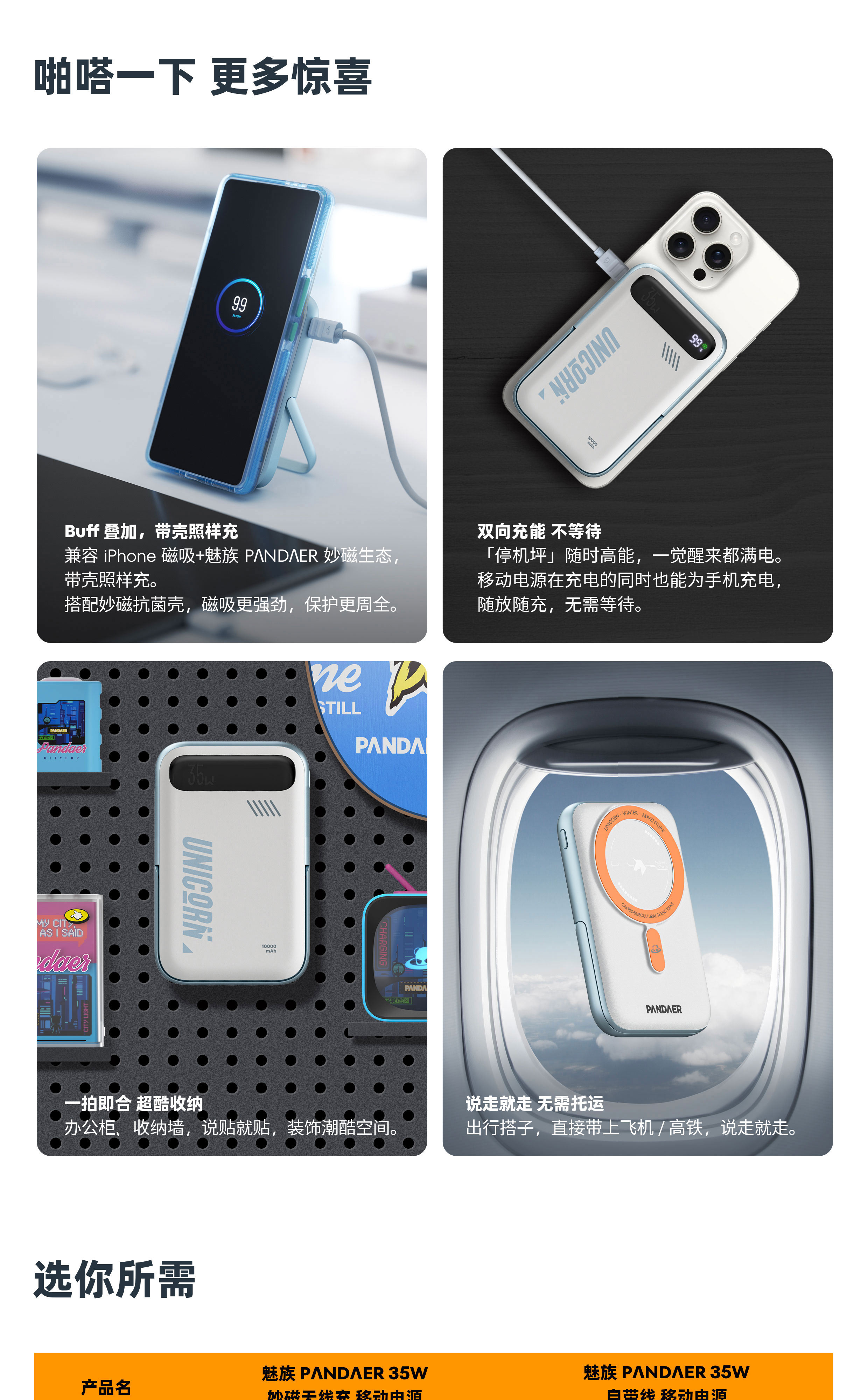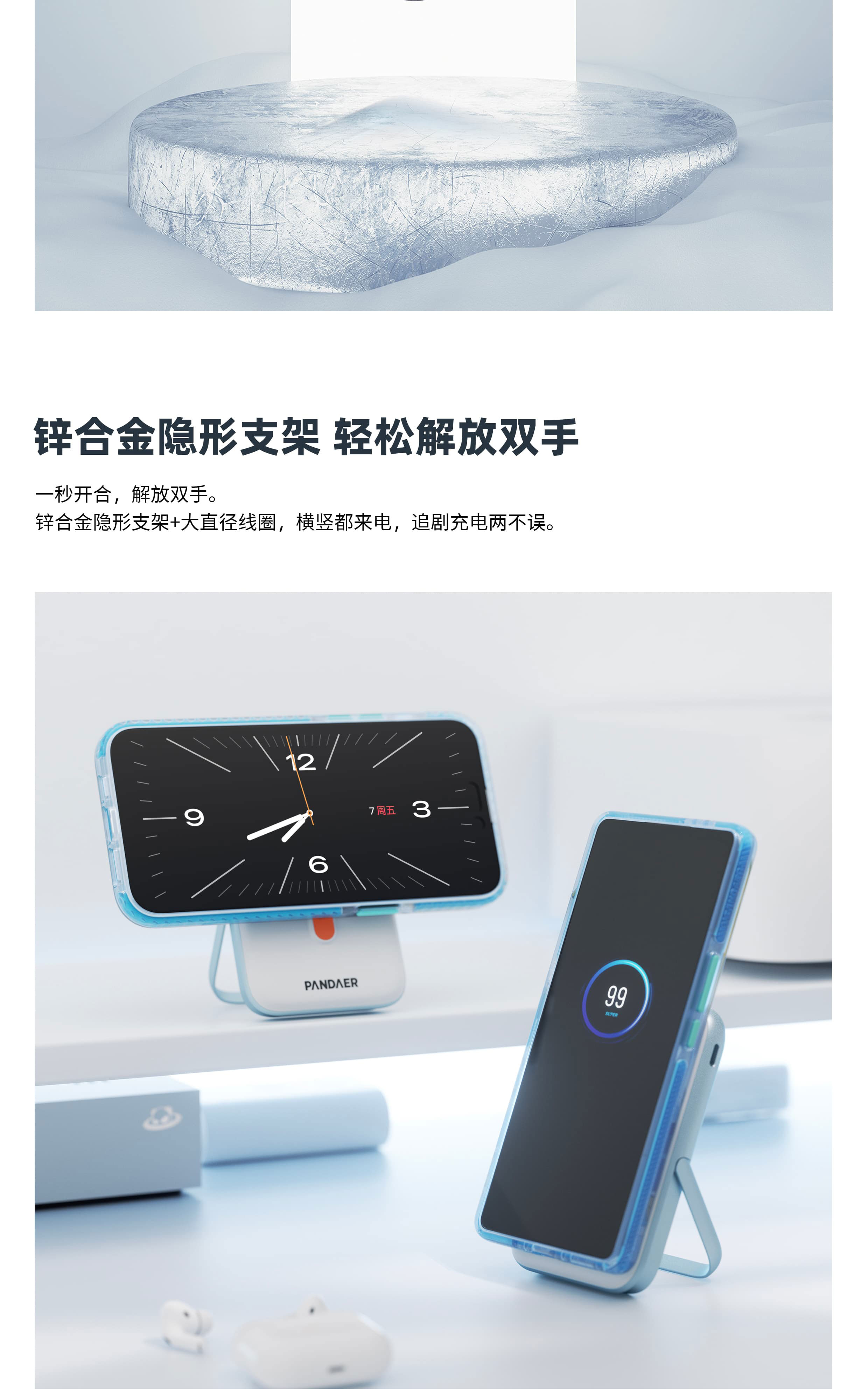 15W 无线充电 | 35W 有线快充 | 10000mAh 容量 | 数字电量显示 | 锌合金隐藏支架