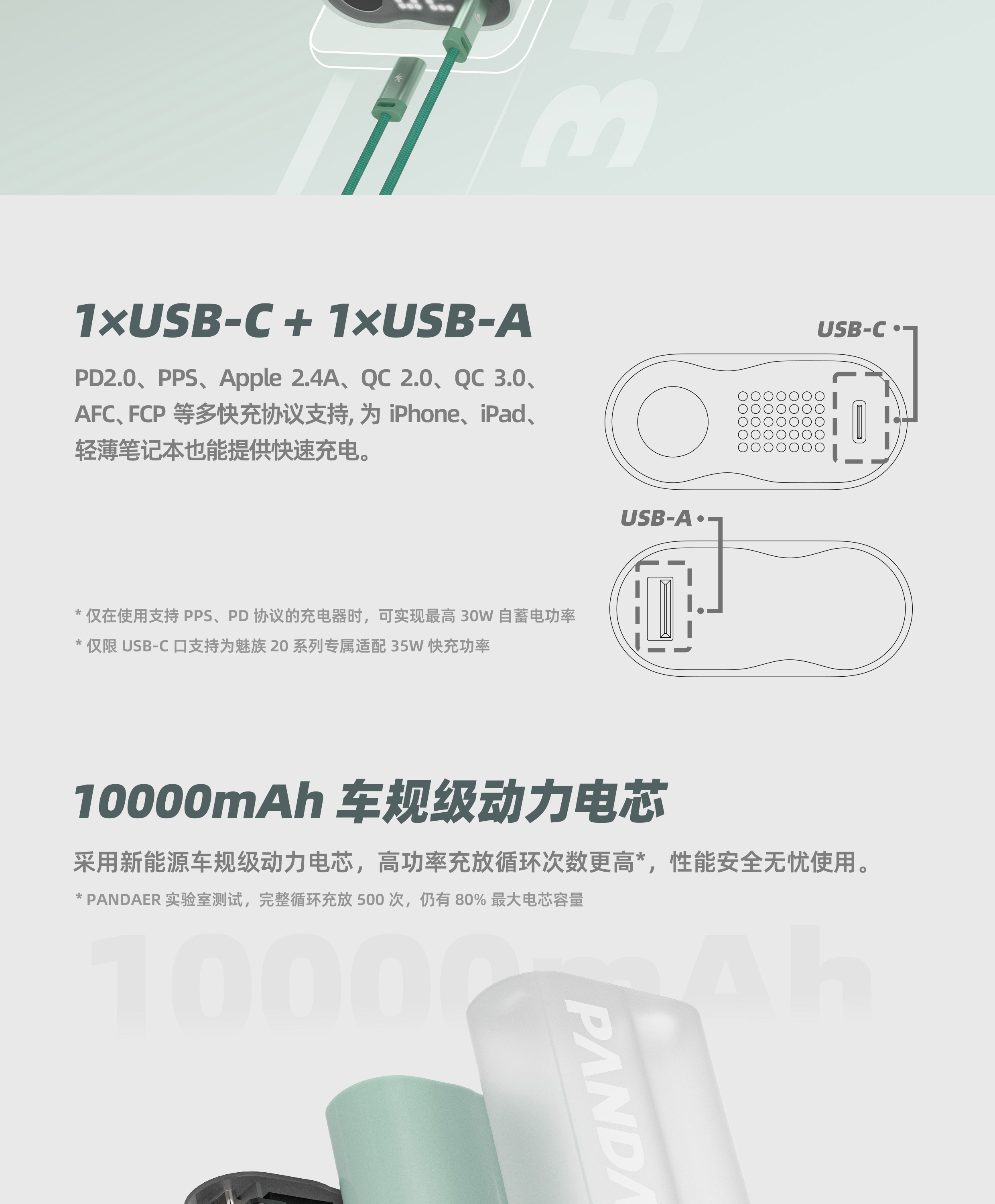 多协议双向快充 | 银行卡便携尺寸 | 车规级动力电芯 | 情感数码显示屏