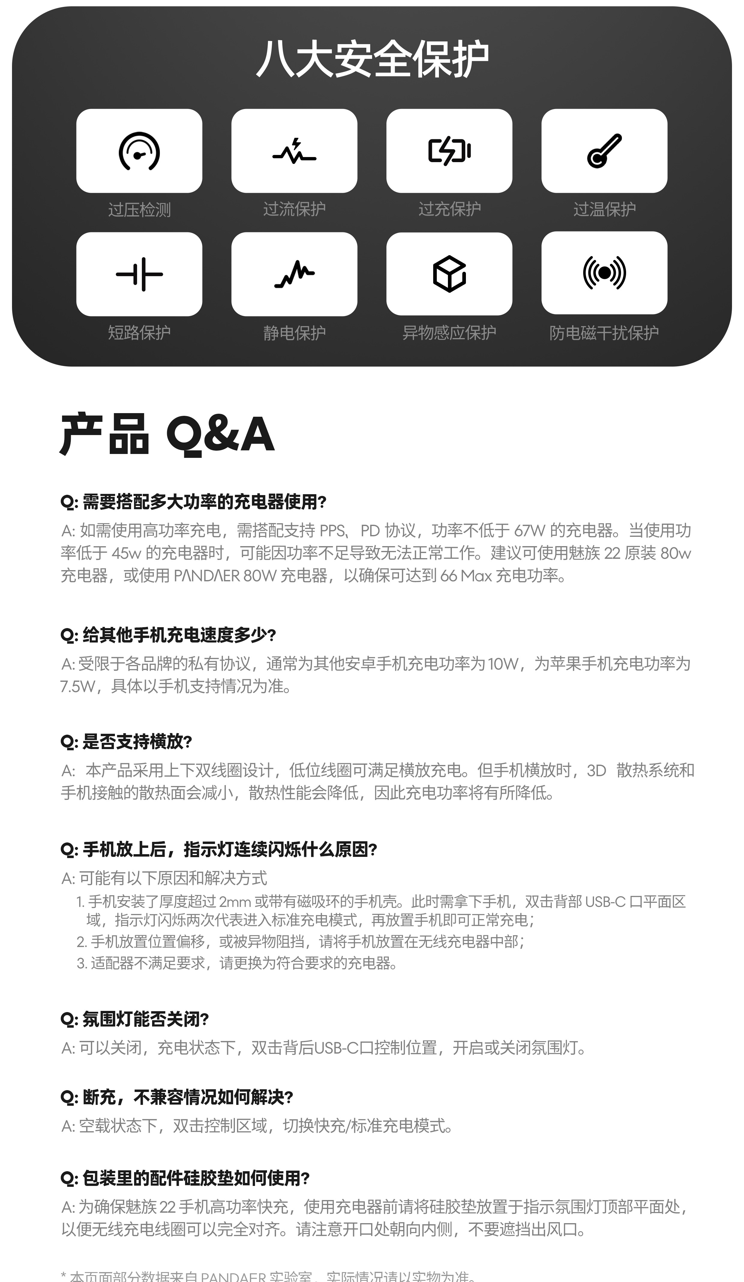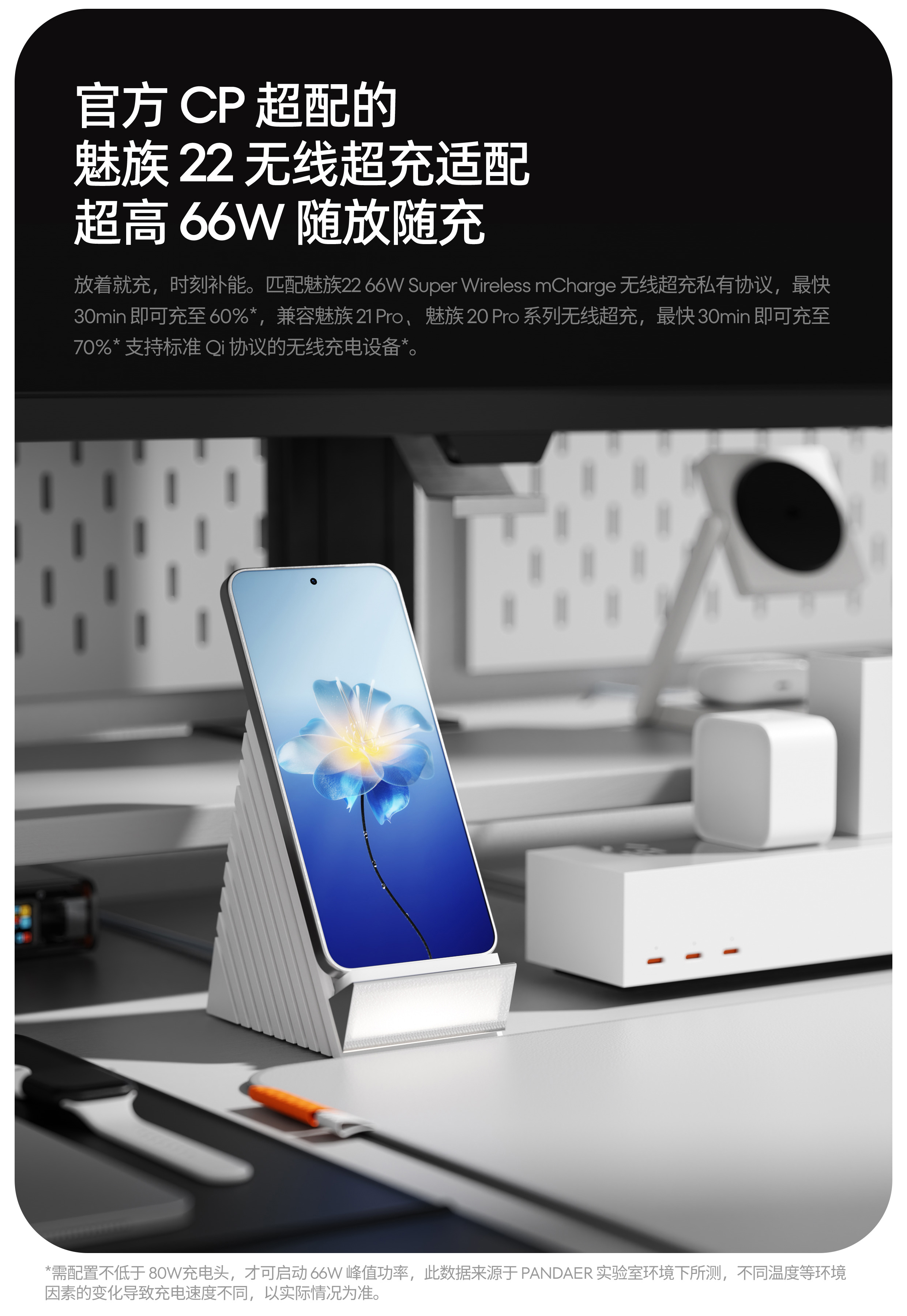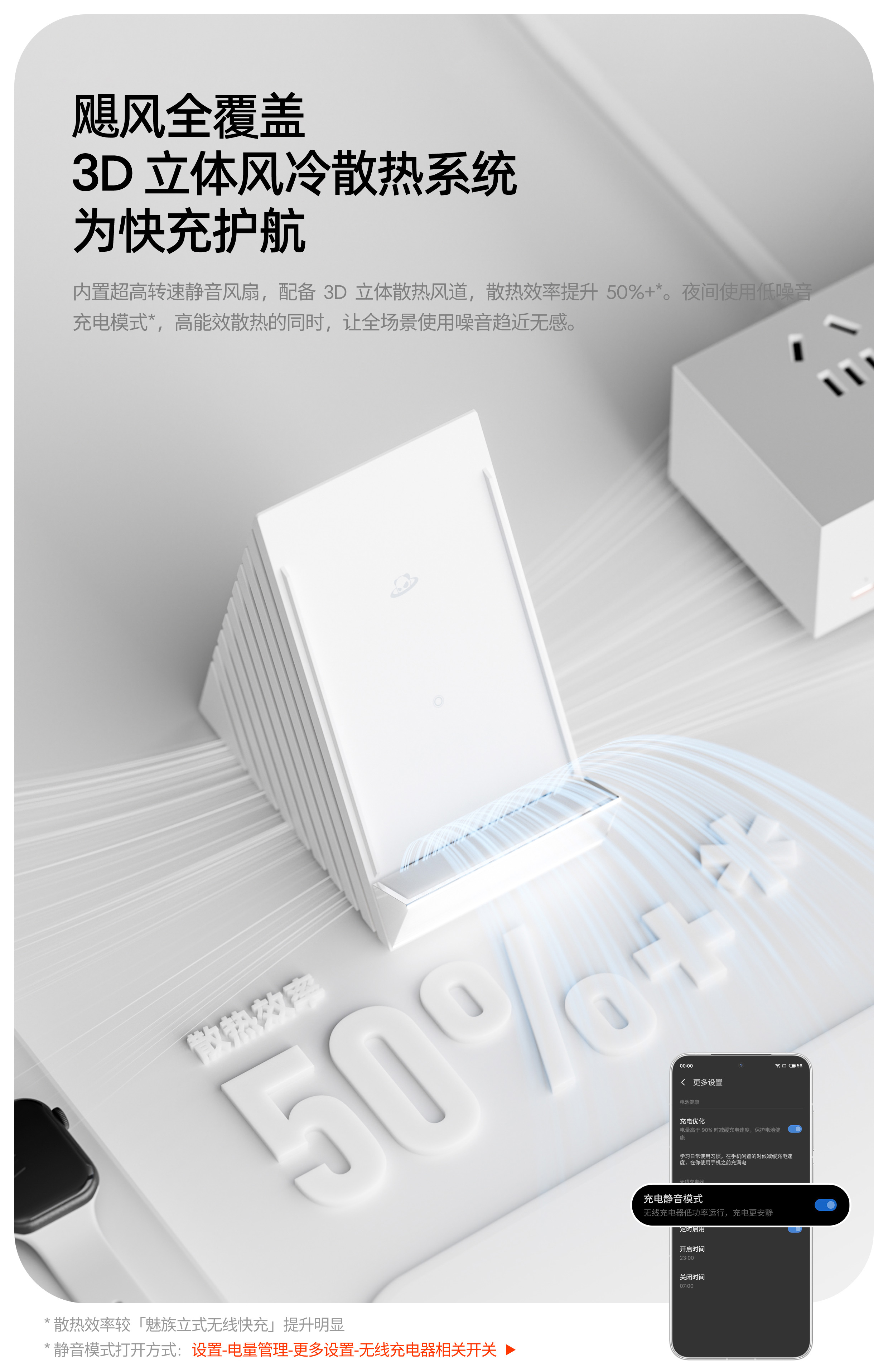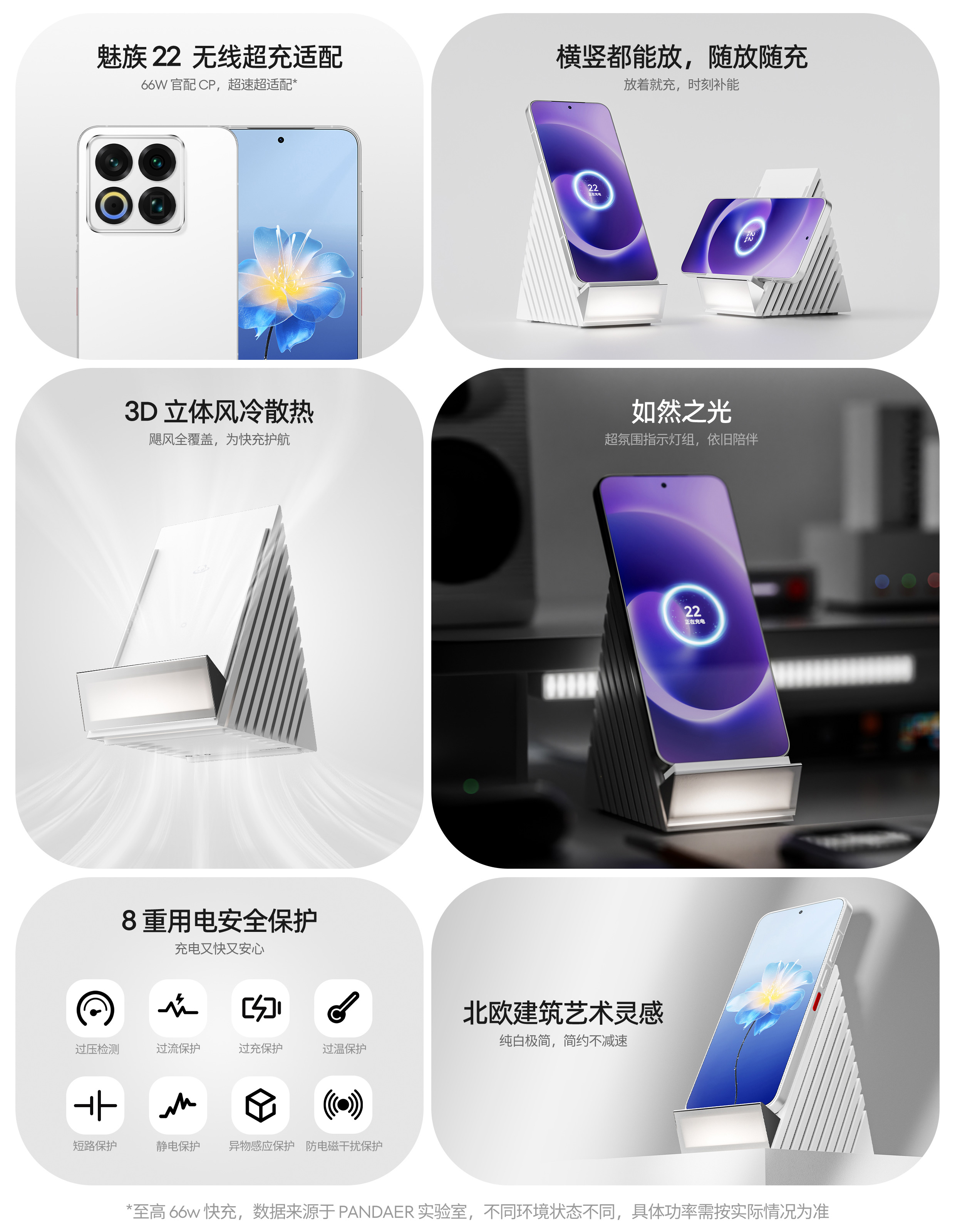 魅族 22 无线超充适配|3D 立体风冷散热|8 重用电安全保护