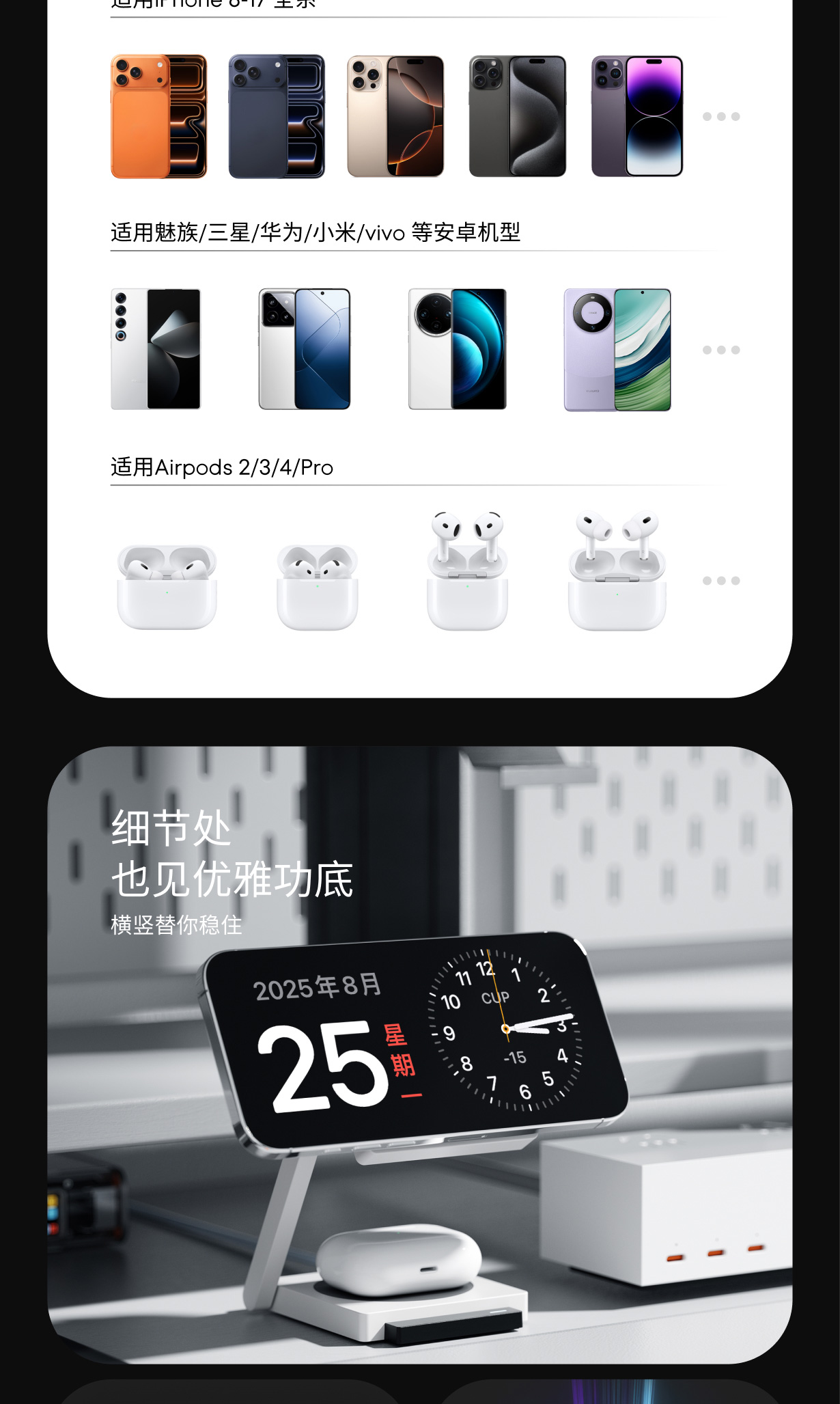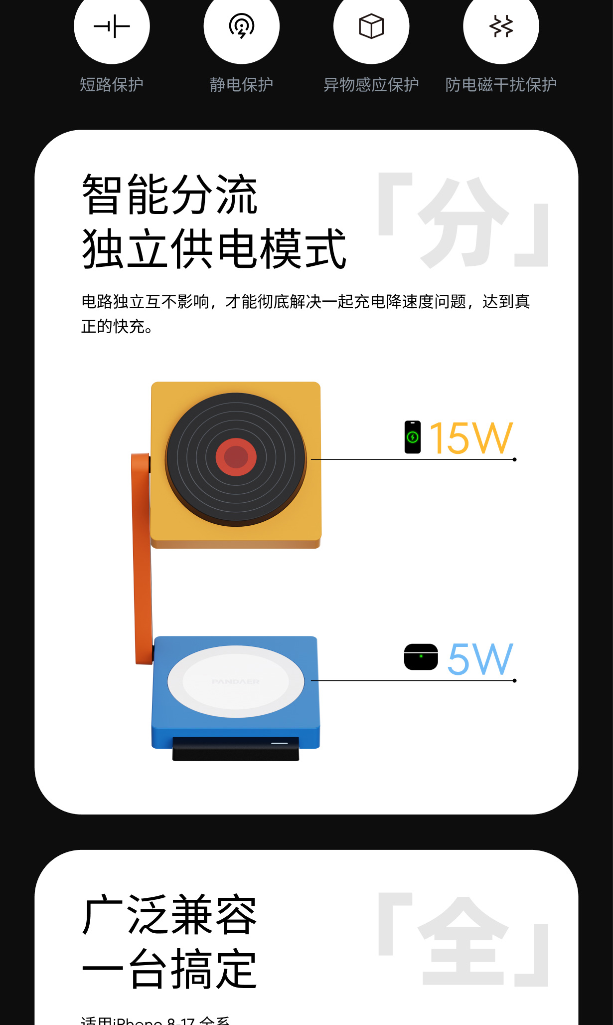 15W MAX 无线双充|智能分流,独立供电|便携折叠