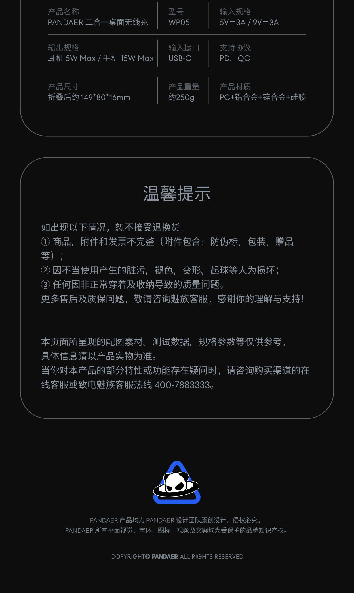 PΛNDΛER 二合一桌面无线充