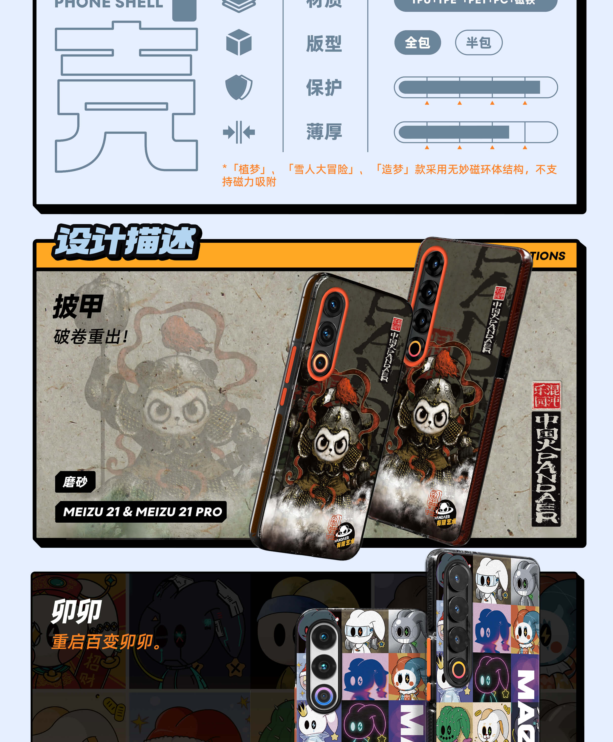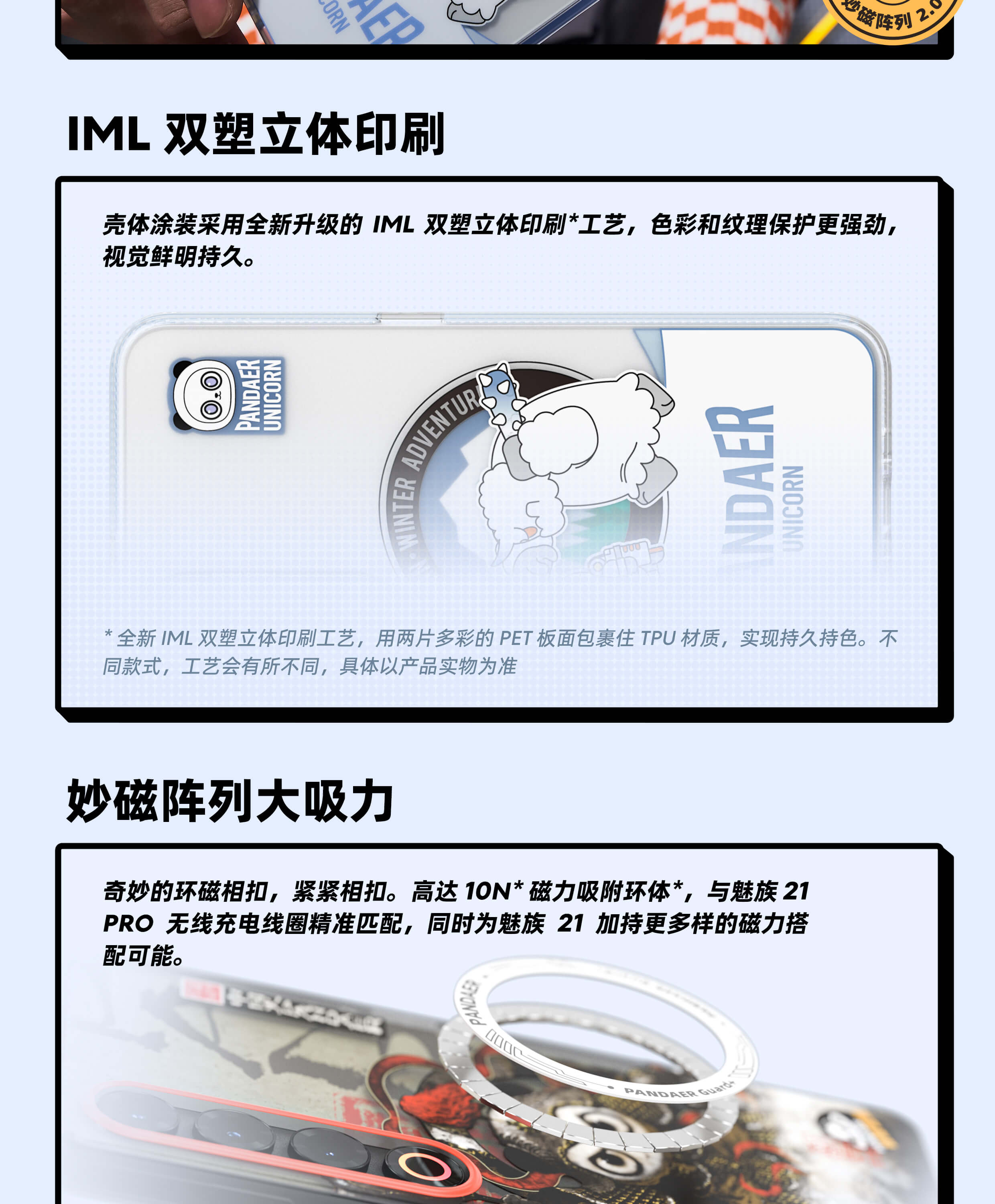 魅族 21 PRO / 魅族 21 适用 | IML 双塑立体印刷 | 妙磁阵列大吸力 | Click 按键模组 | TPE 防撞条 | 全包结构