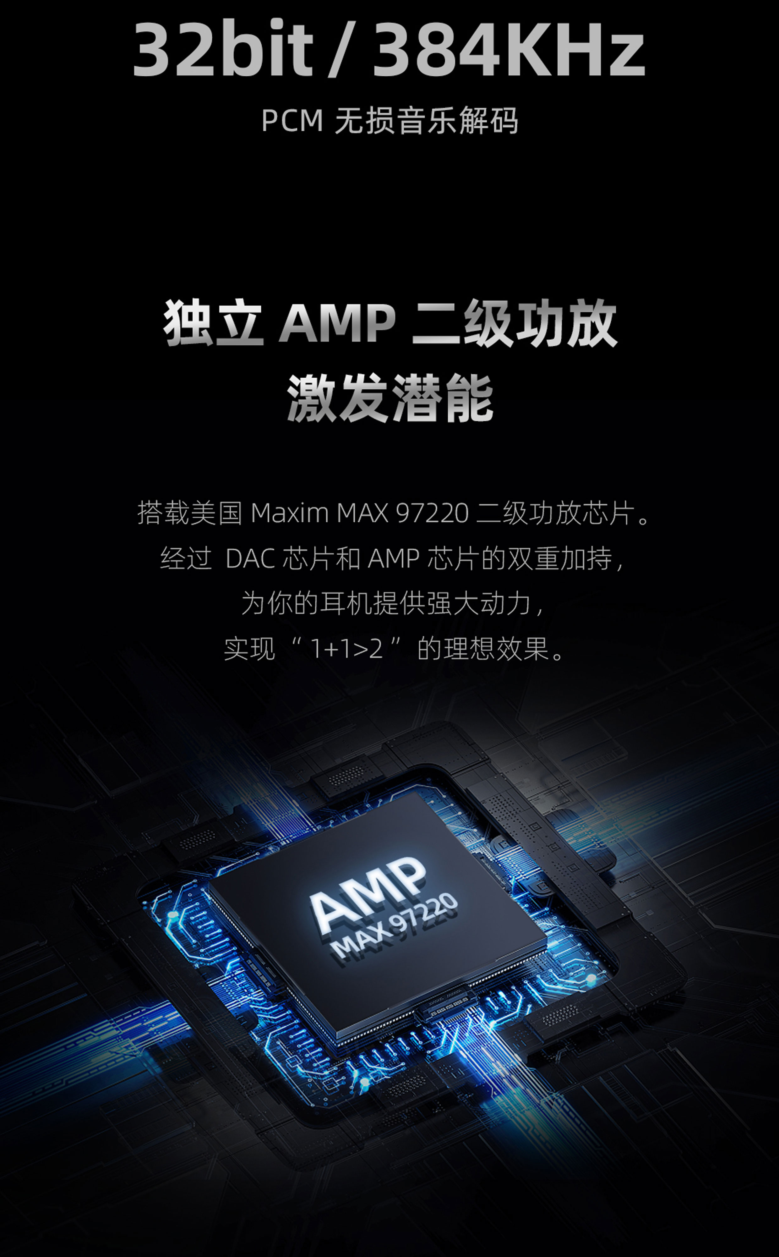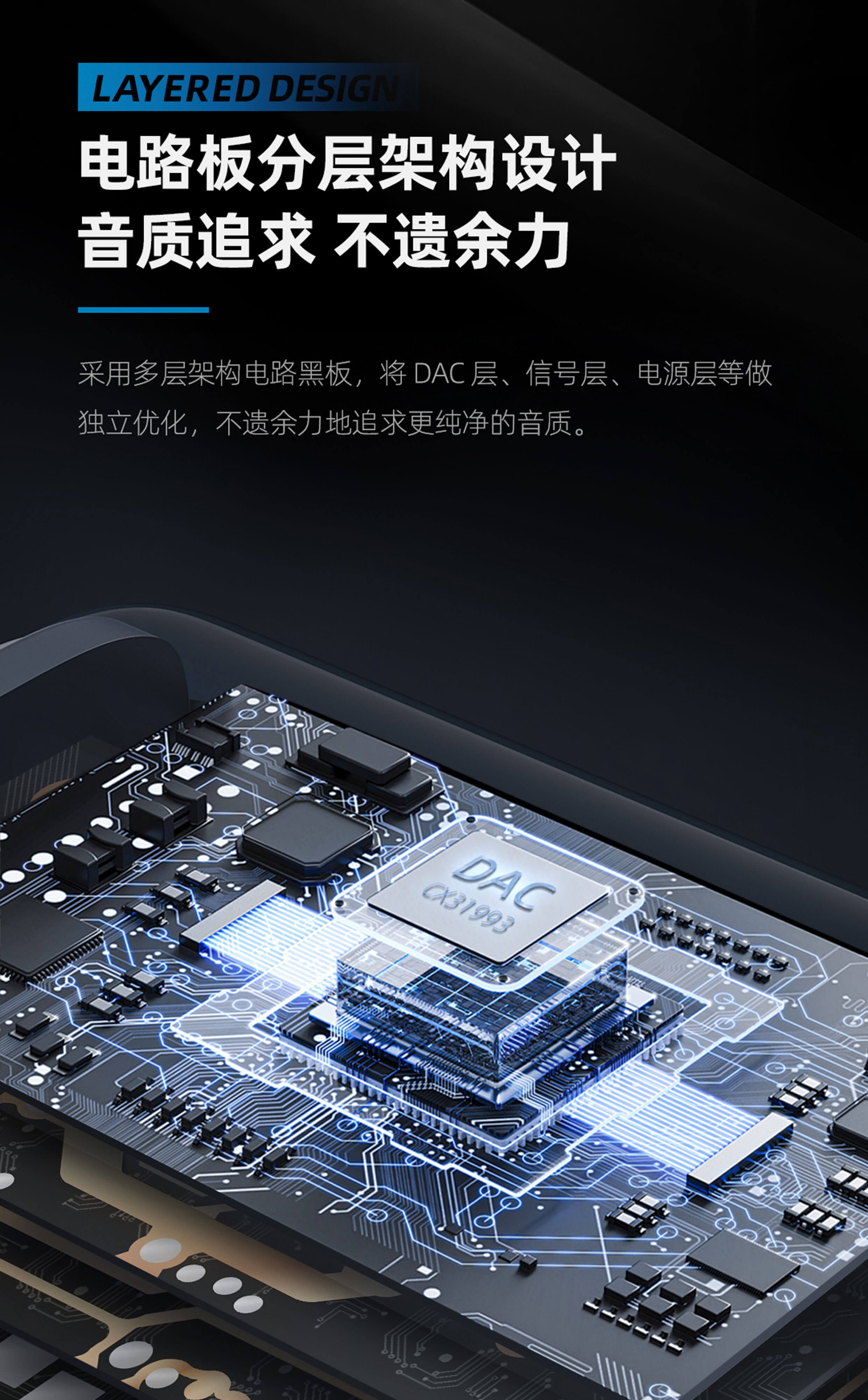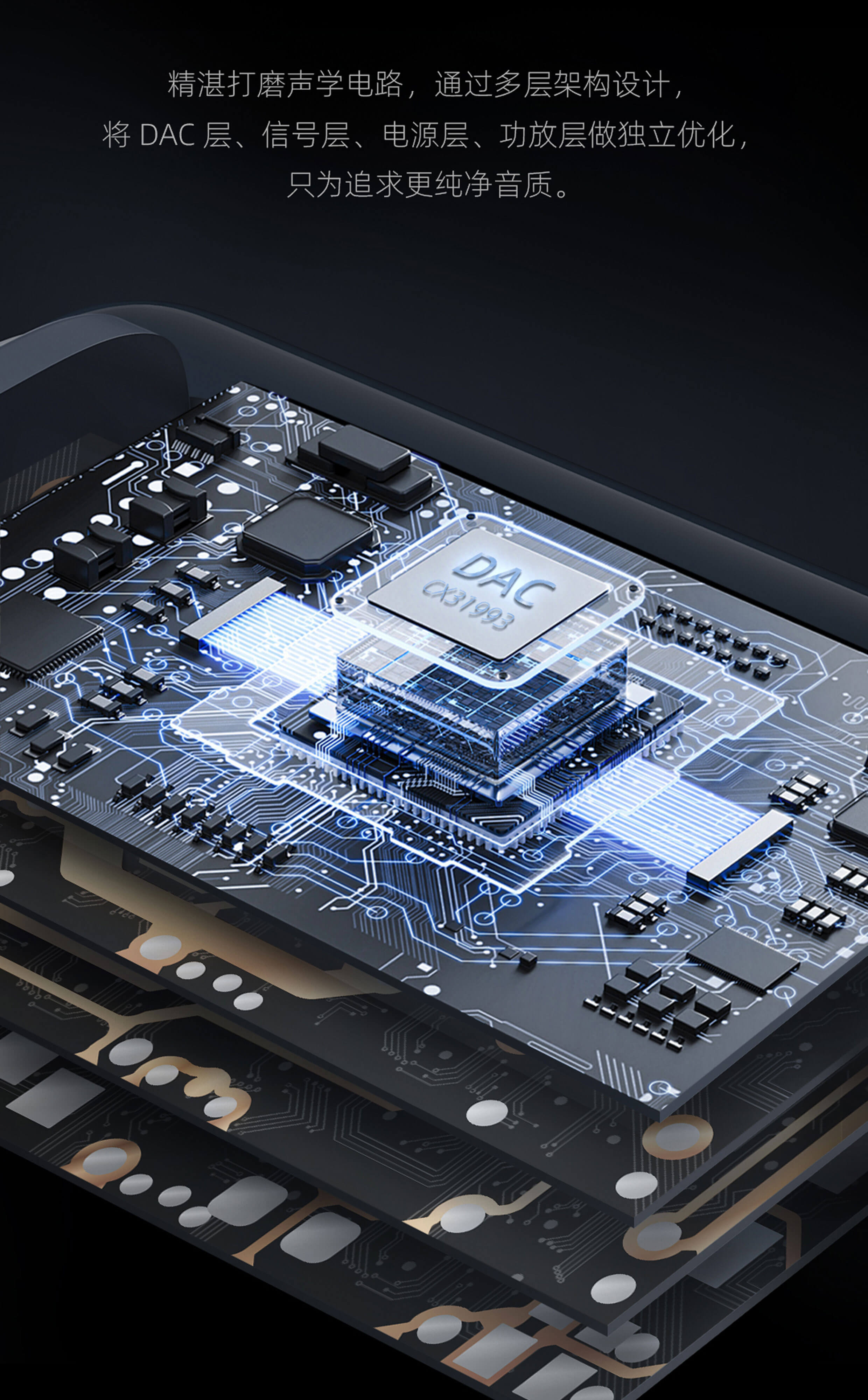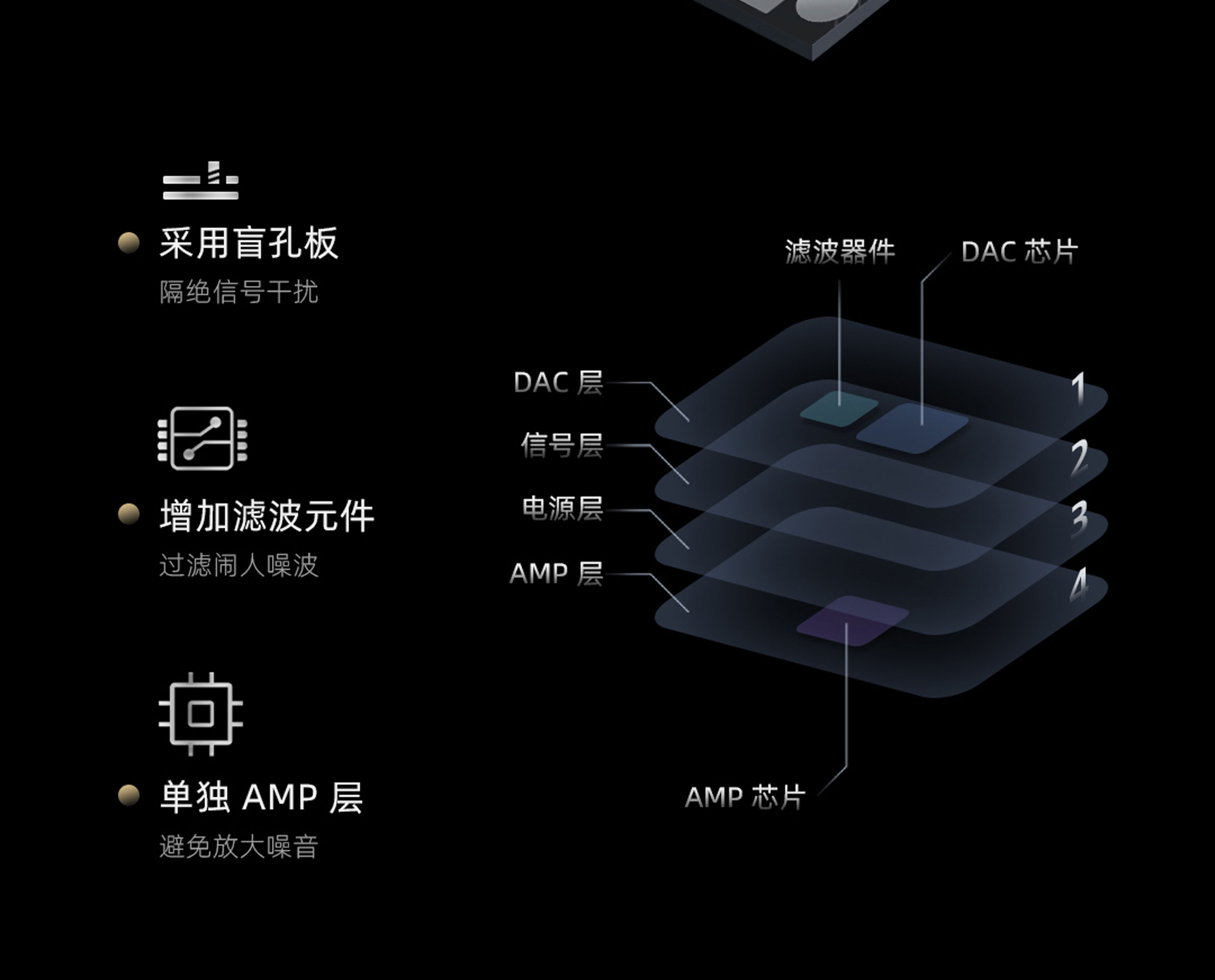 专利新架构 | 高性能 DAC 解码芯片 | Hi-Res 金标认证 | 经典环形灯显