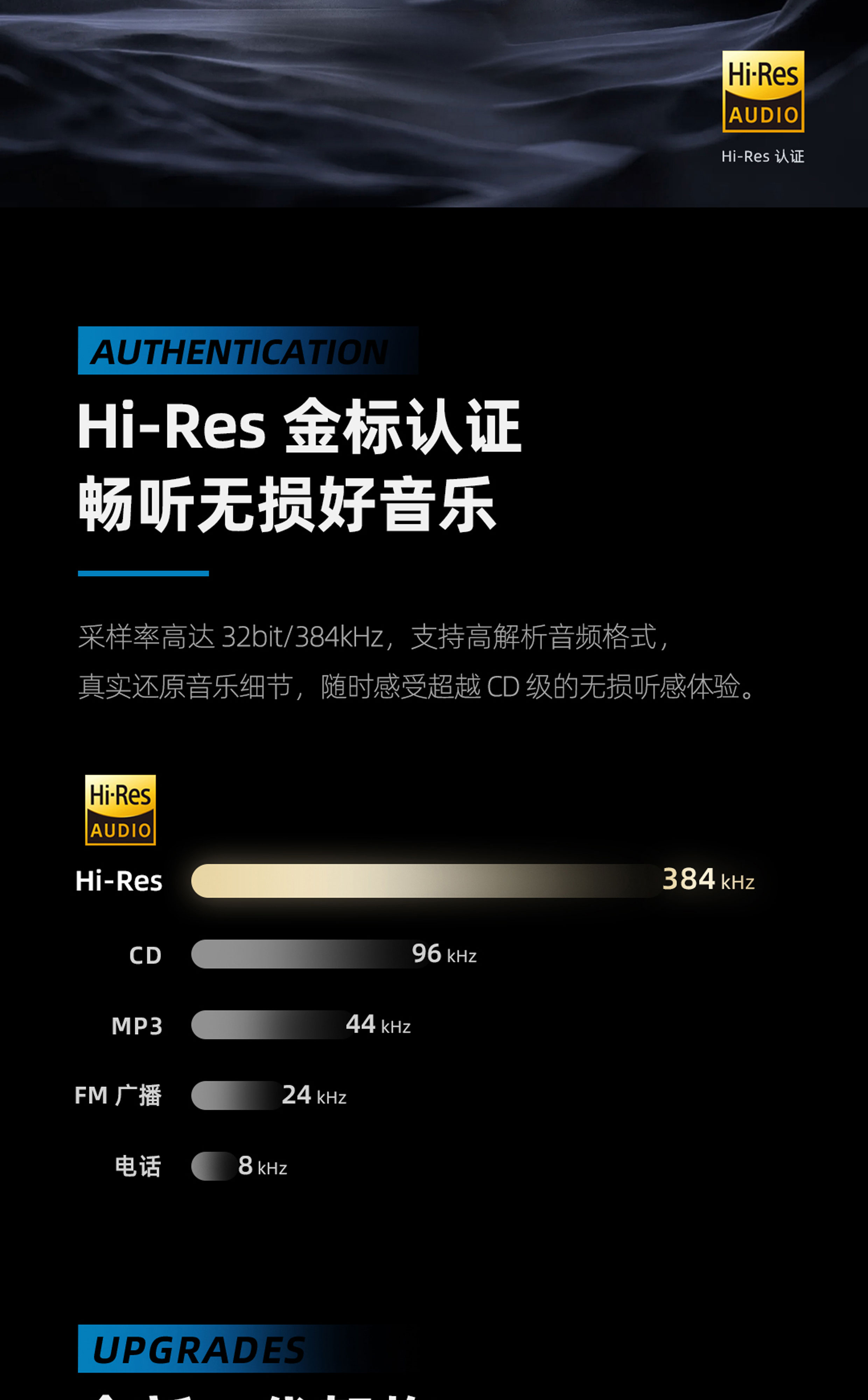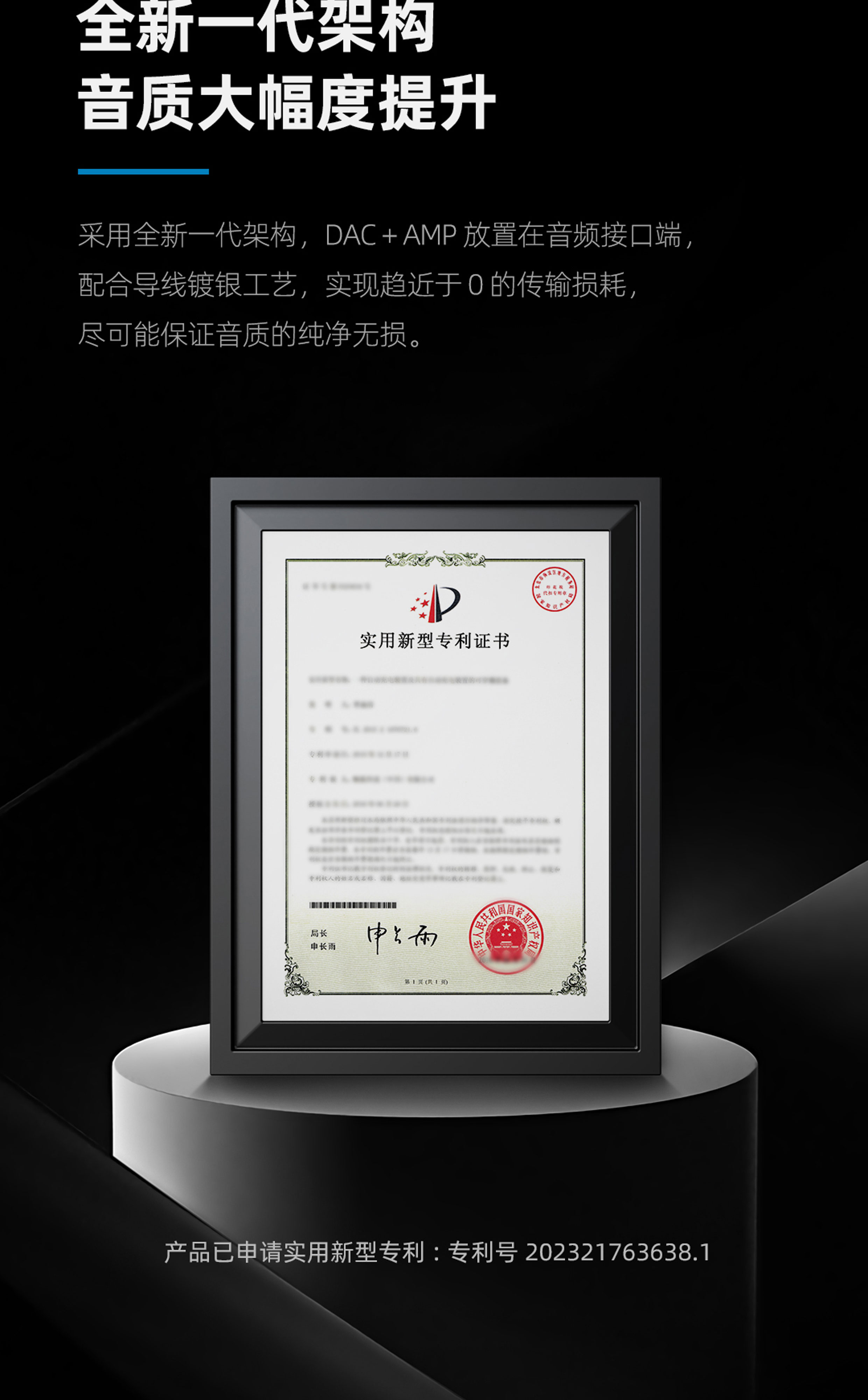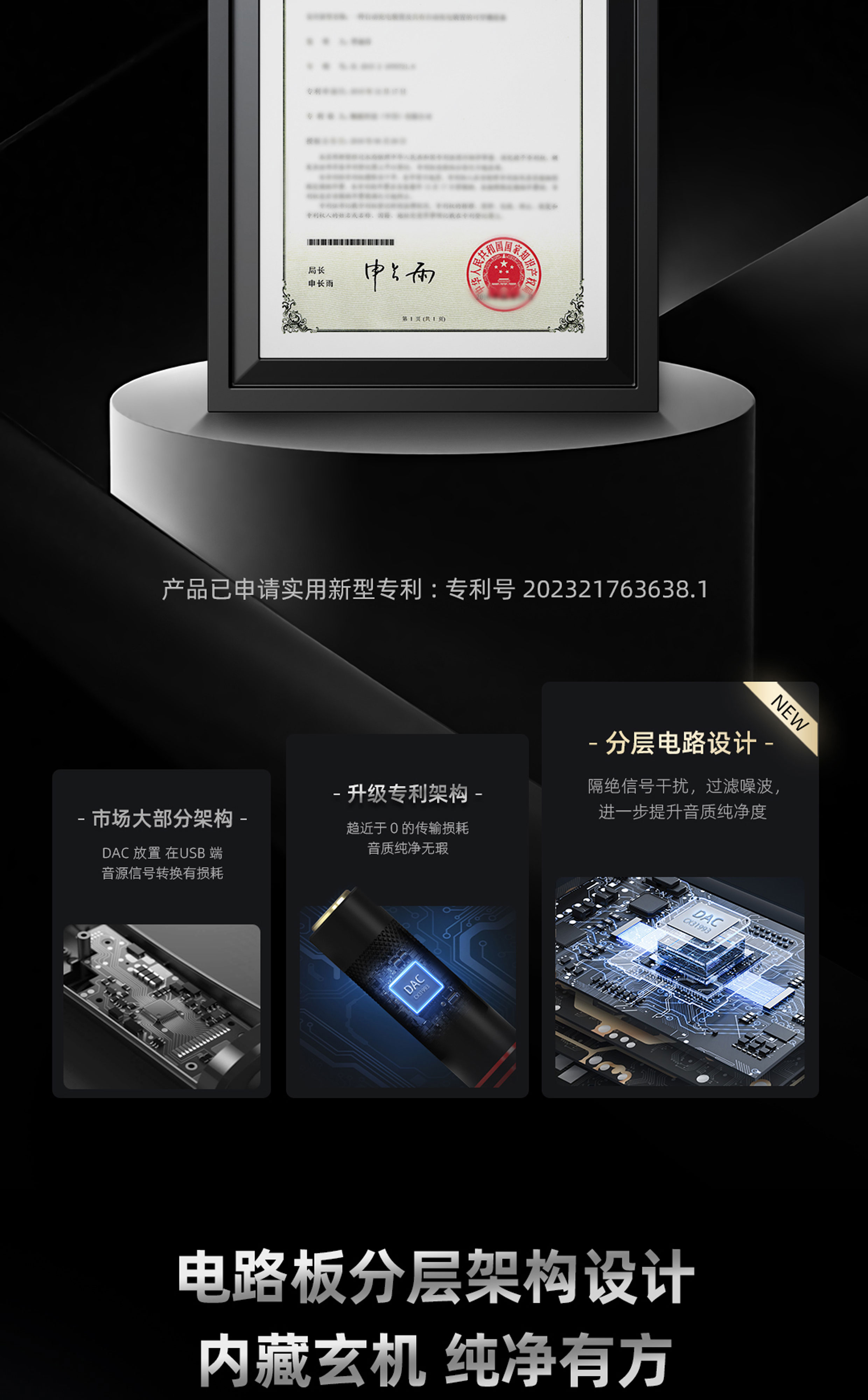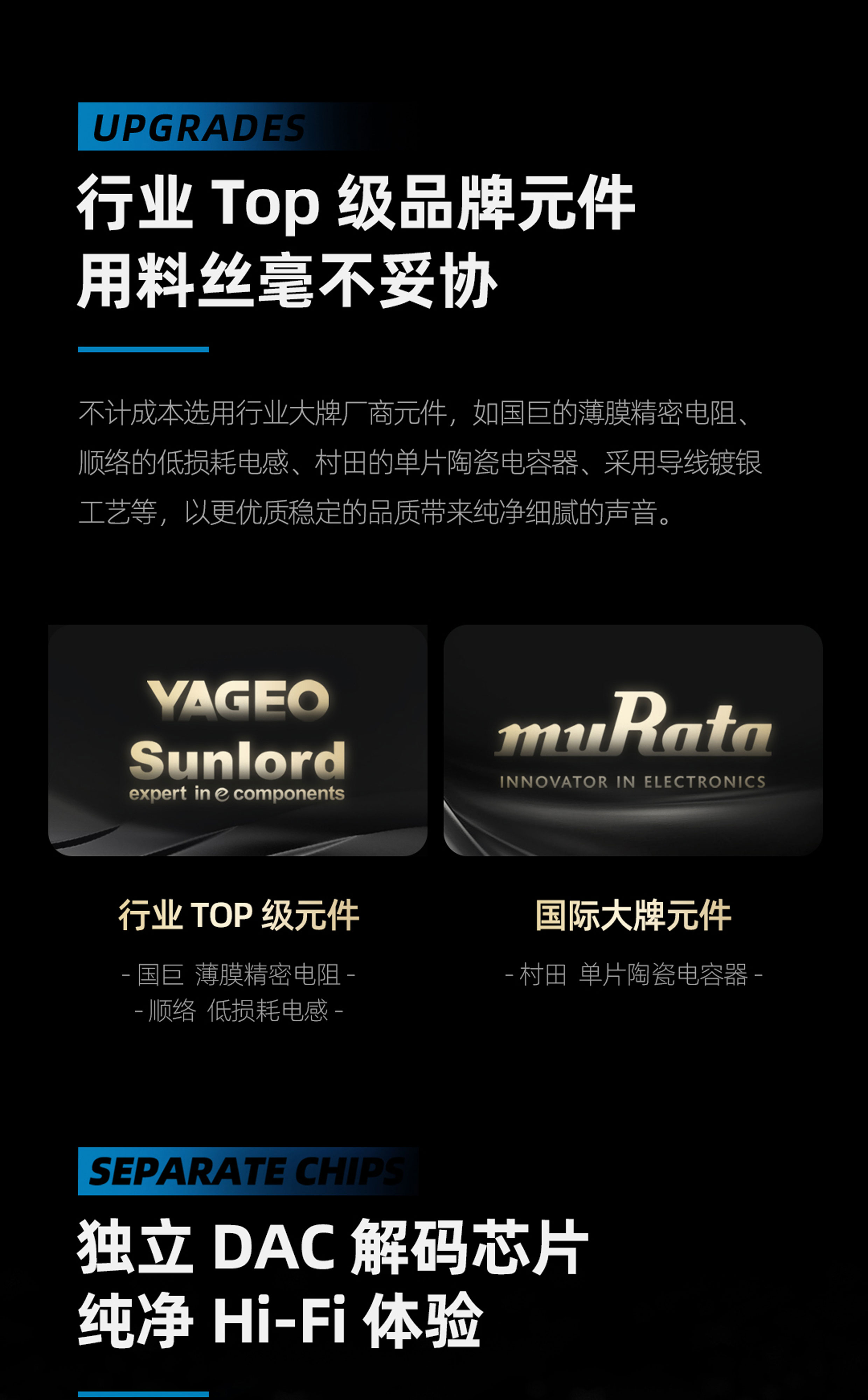 专利新架构 | 高性能 DAC 解码芯片 | Hi-Res 金标认证 | 经典环形灯显