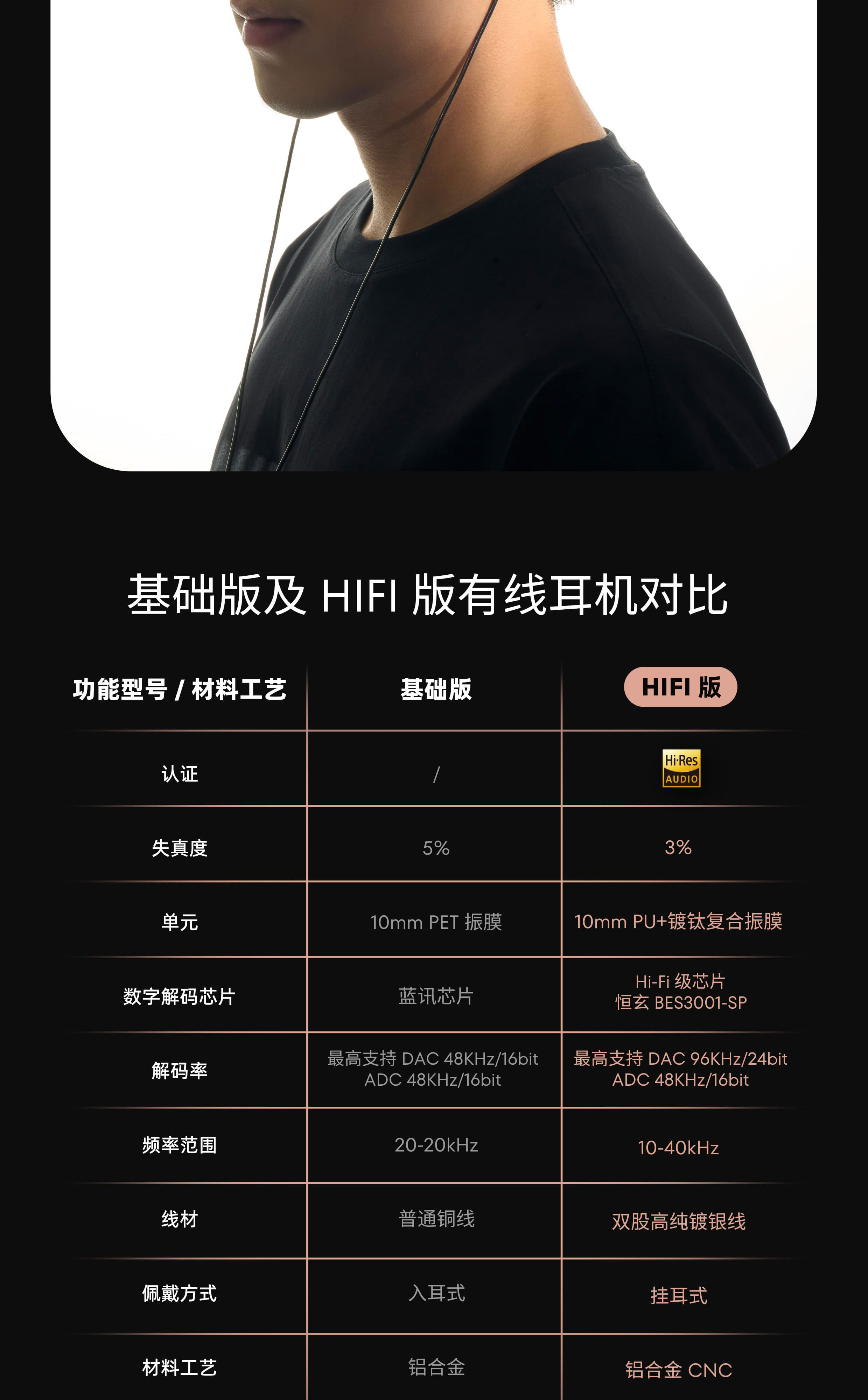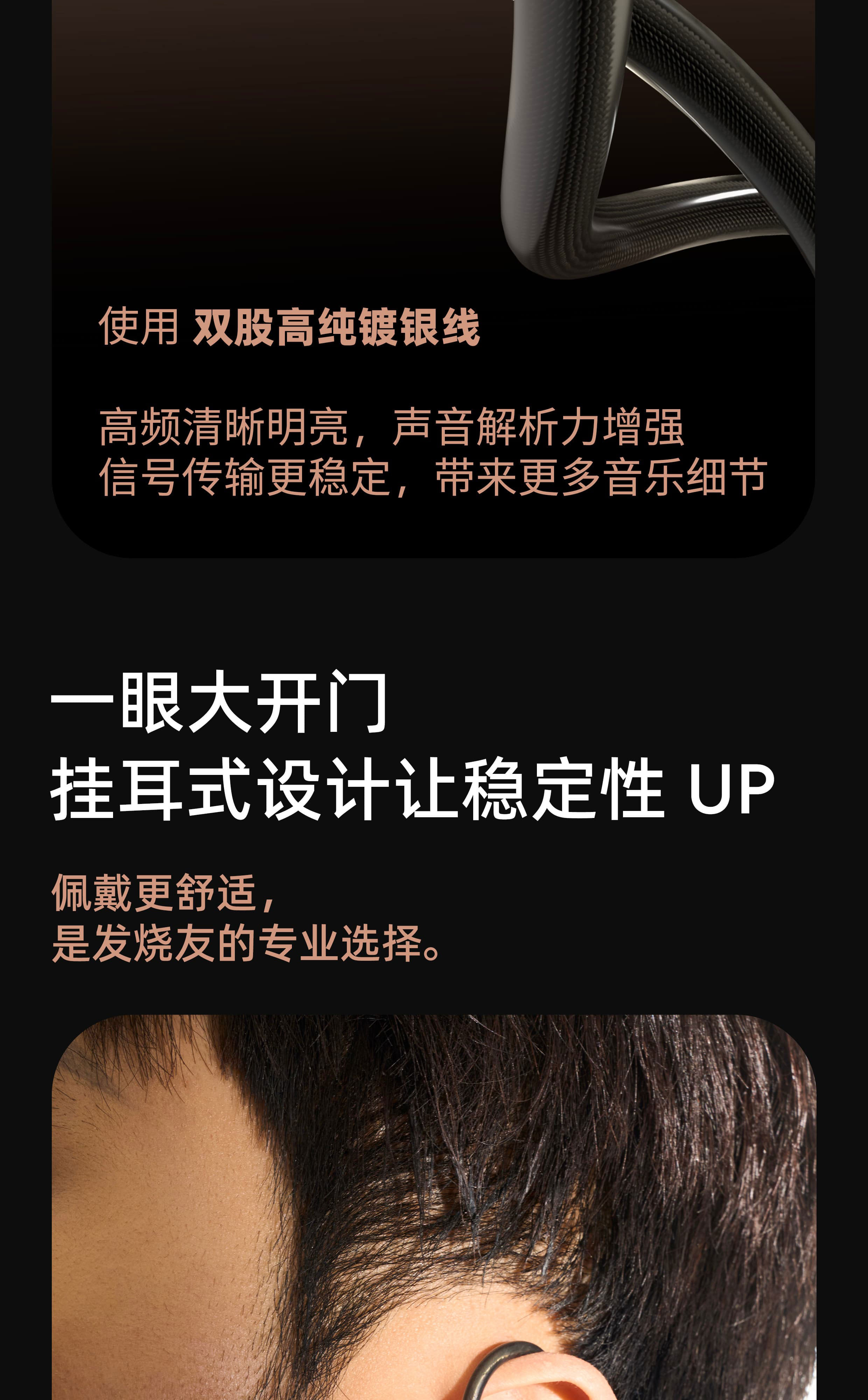 Hi-Fi 级解码芯片 | 聚能双腔体设计 | 10mm 超大动圈 | 专业挂耳式设计 | 双股镀银线