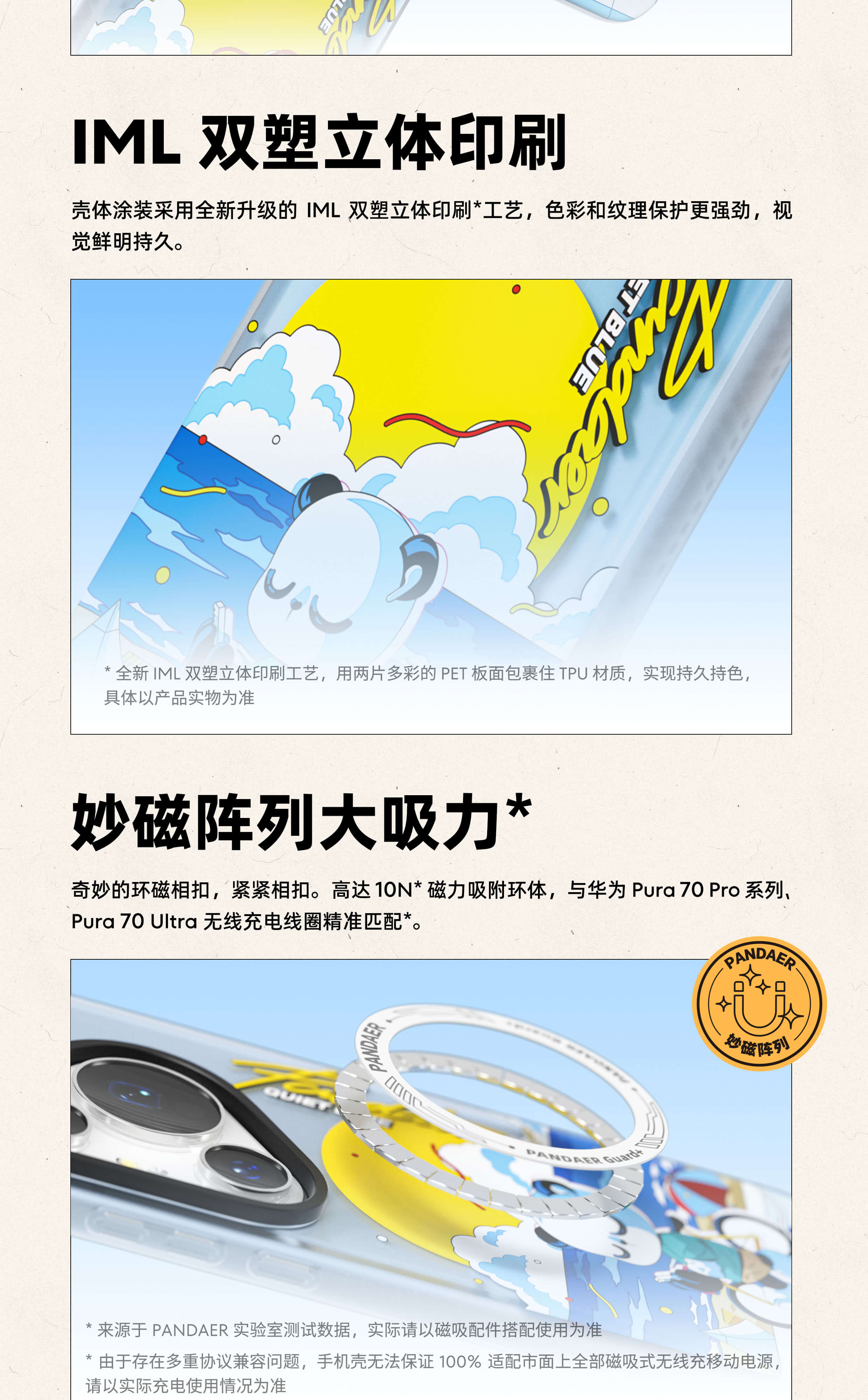 华为 Pura 70 系列适配 | IML 双塑立体印刷 | 妙磁阵列大吸力 | 全包结构 | PΛNDΛER Guard+ 抗菌工艺