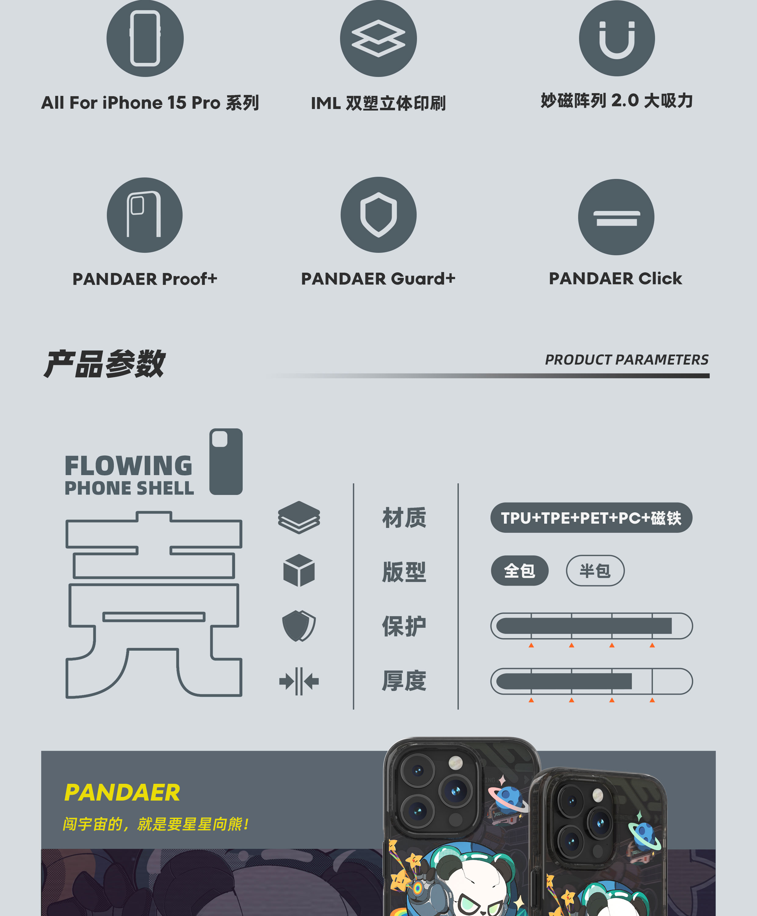 iPhone 15 Pro 系列适用 | 妙磁阵列 2.0 大吸力 | PANDAER Click | IML 双塑立体印刷 | TPE 防撞条