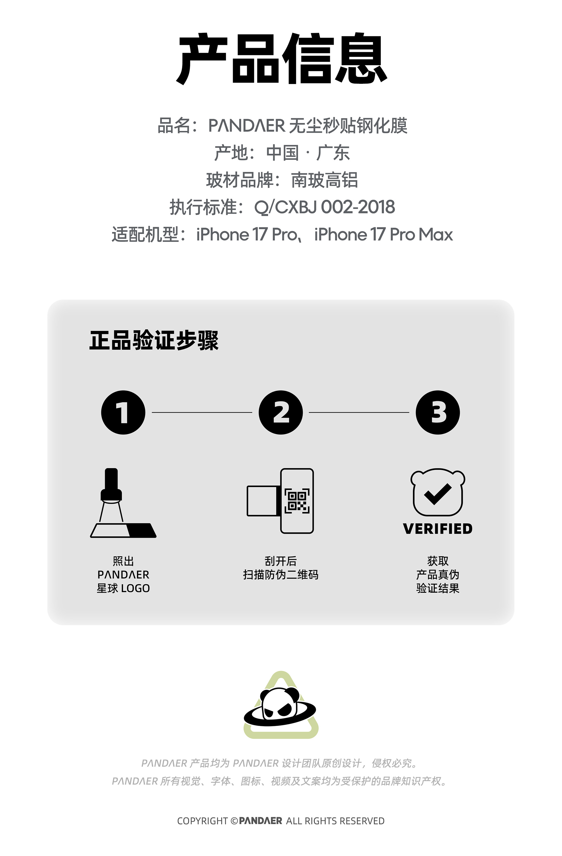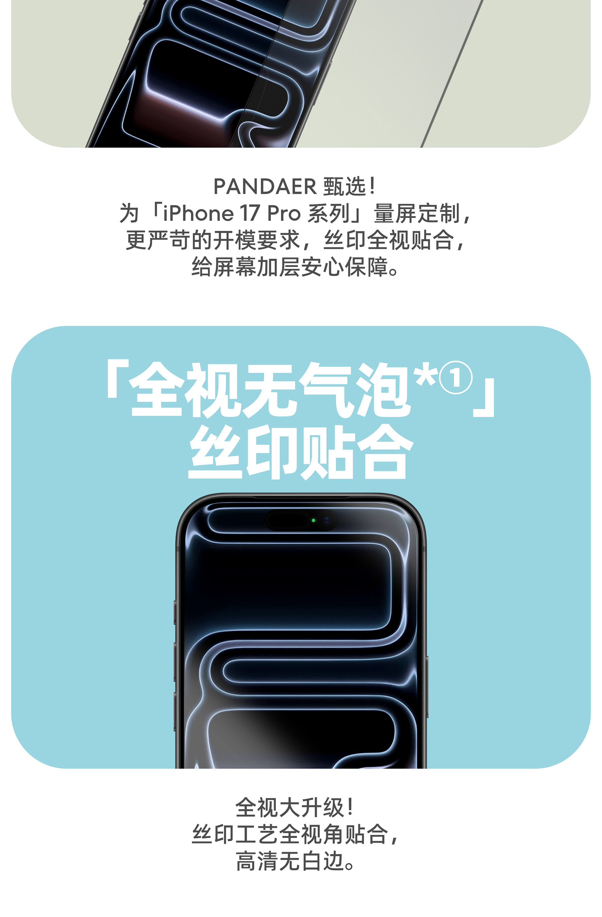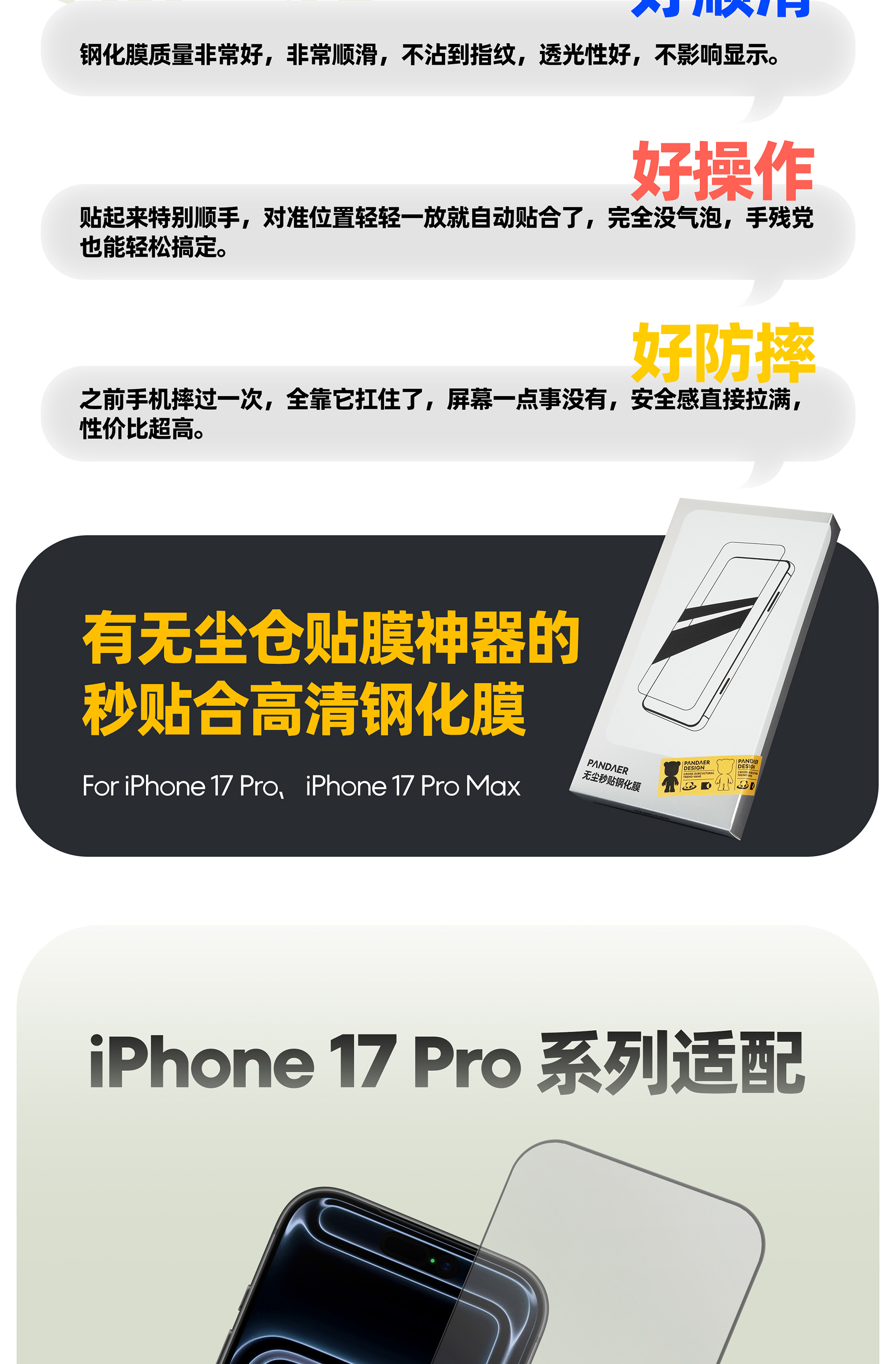 iPhone 17 系列 PΛNDΛER 无尘秒贴钢化膜