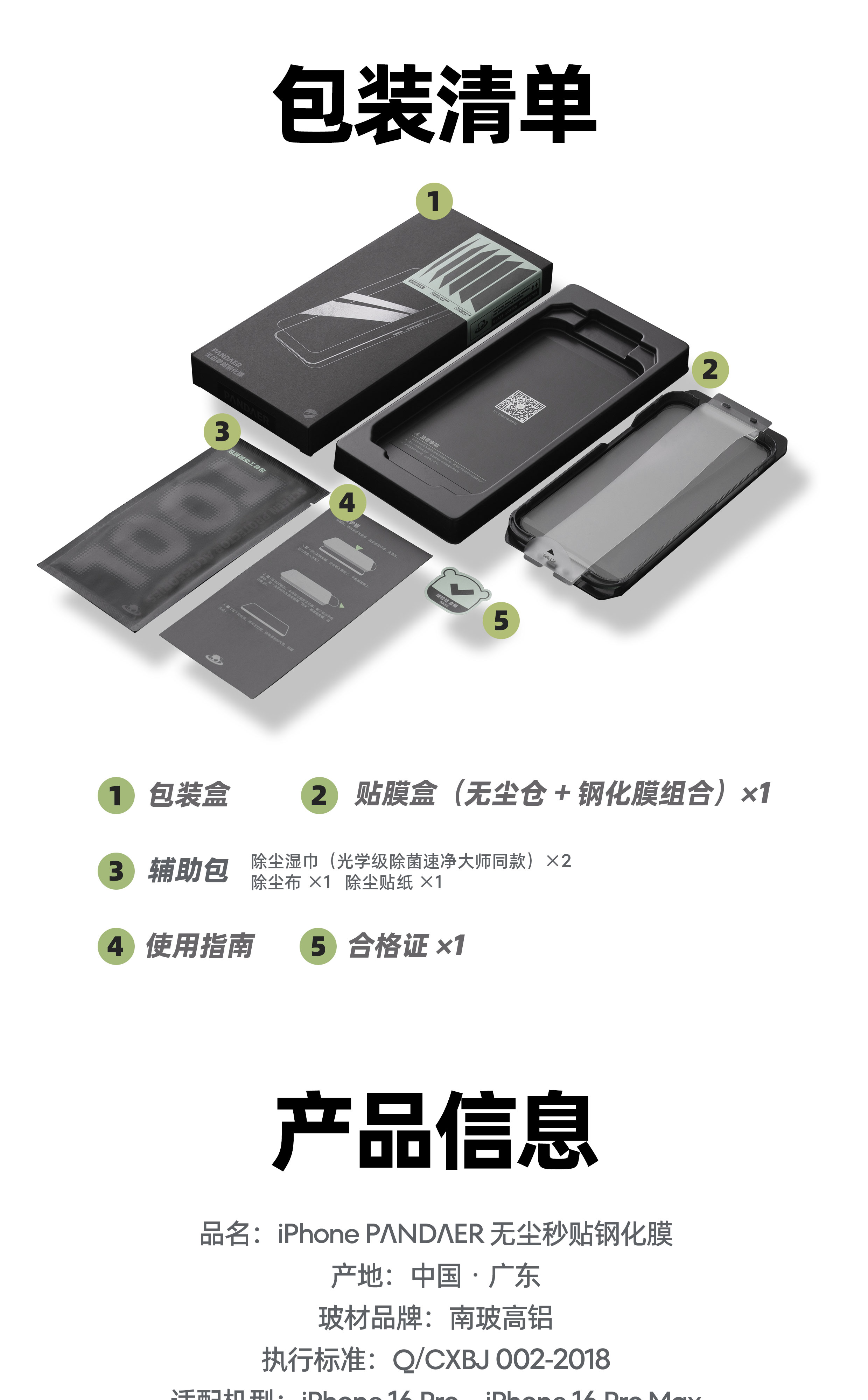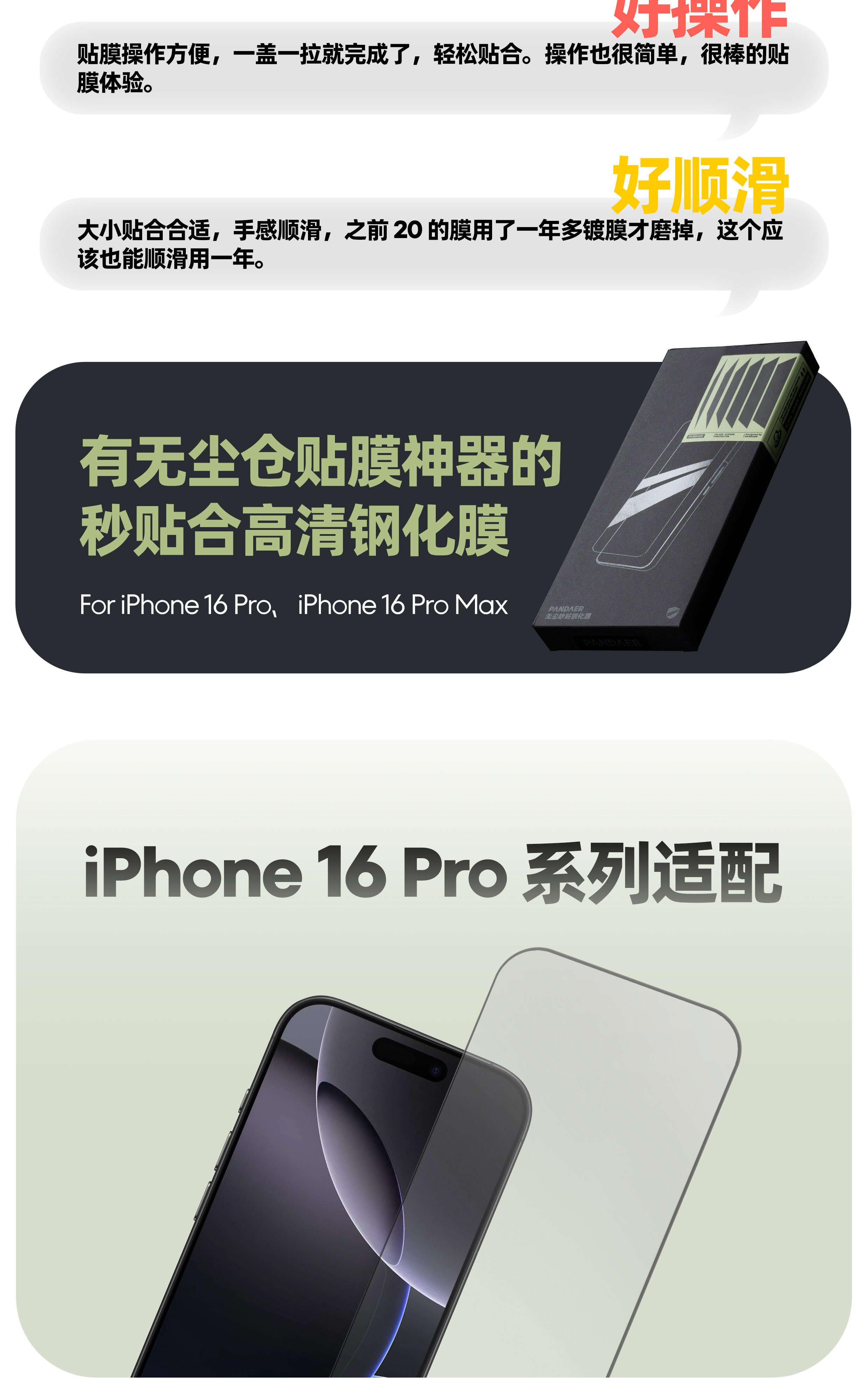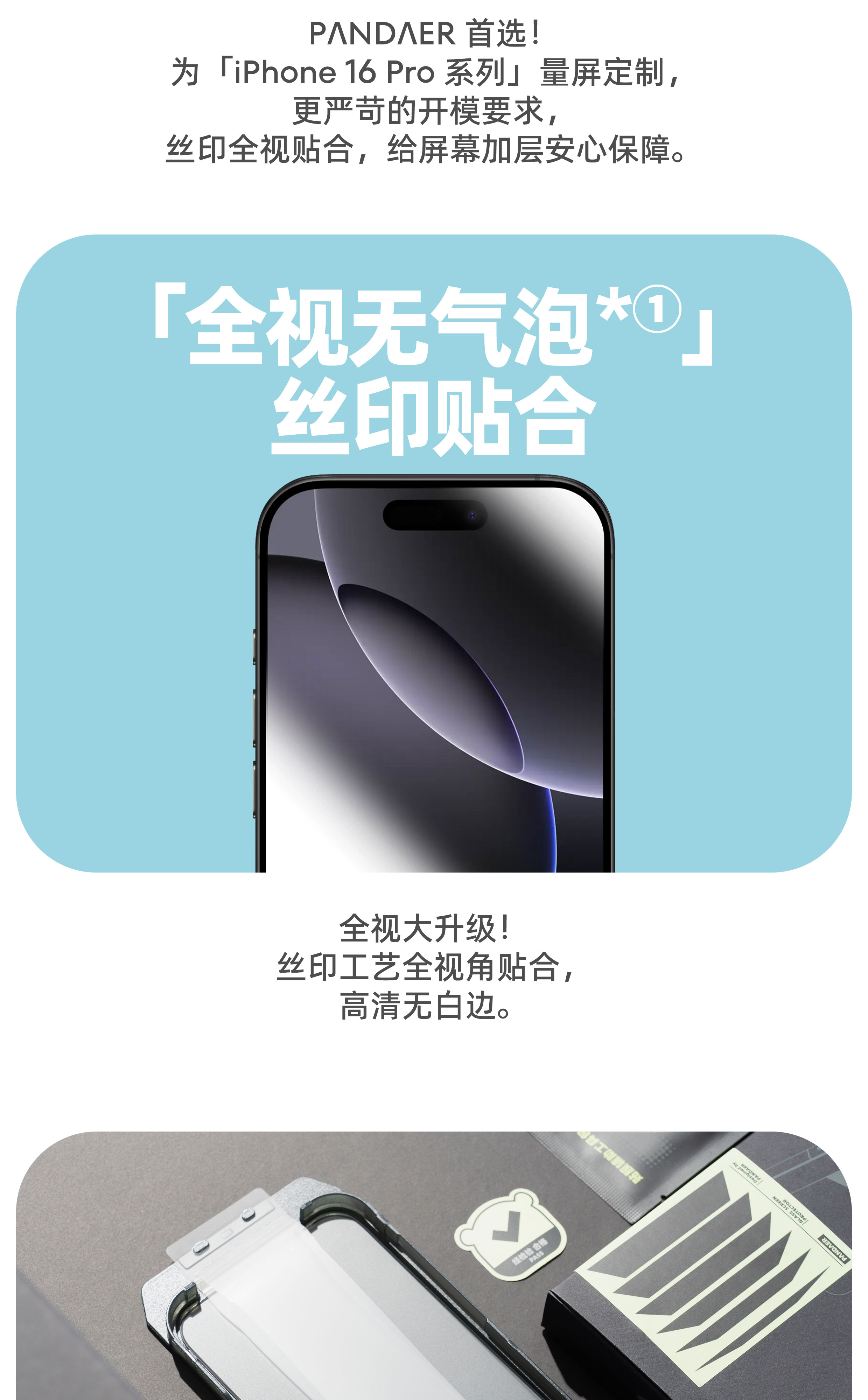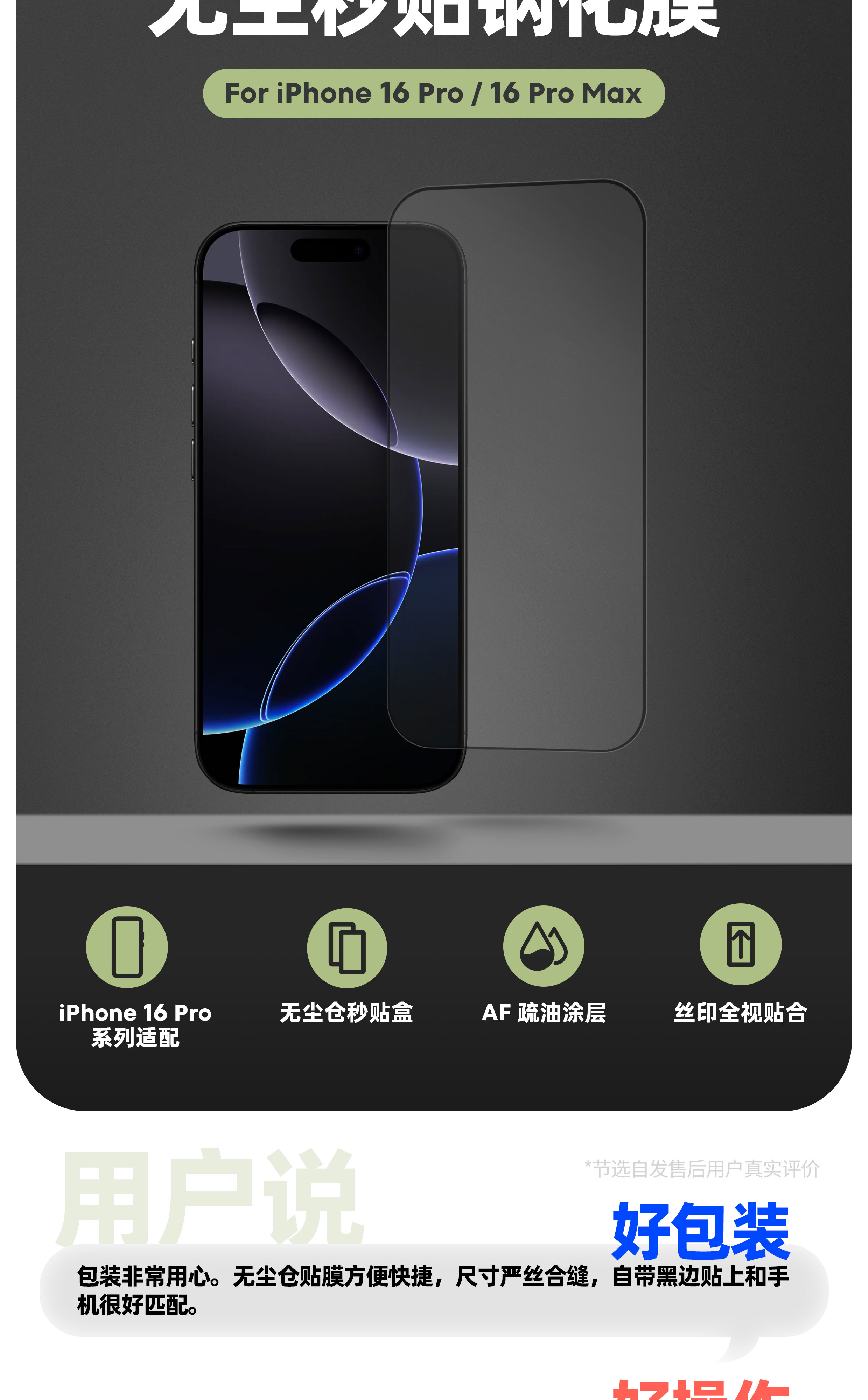 iPhone 16 Pro 系列适配 | 无尘仓贴膜神器 | AF 疏油涂层 | 丝印全视贴合