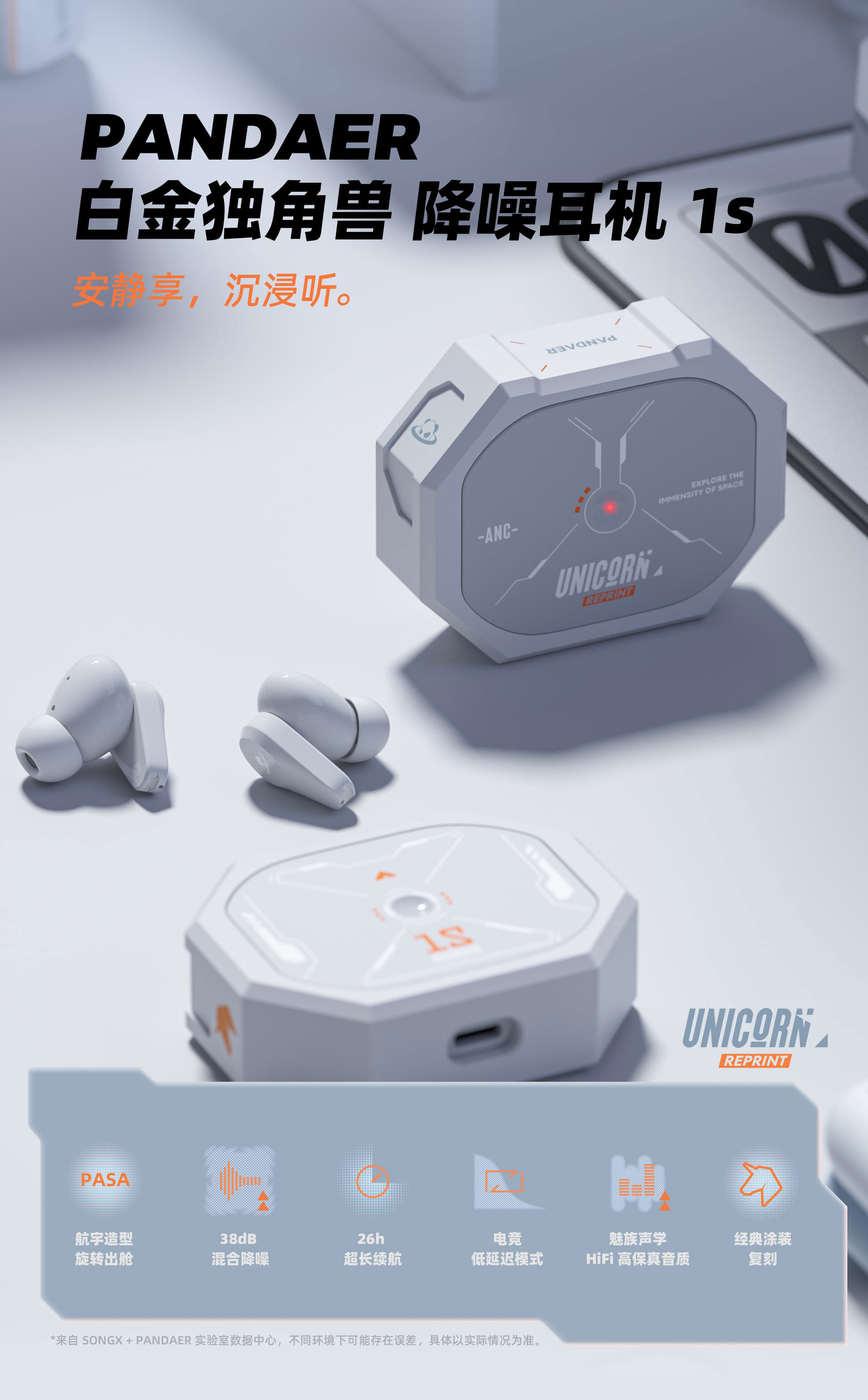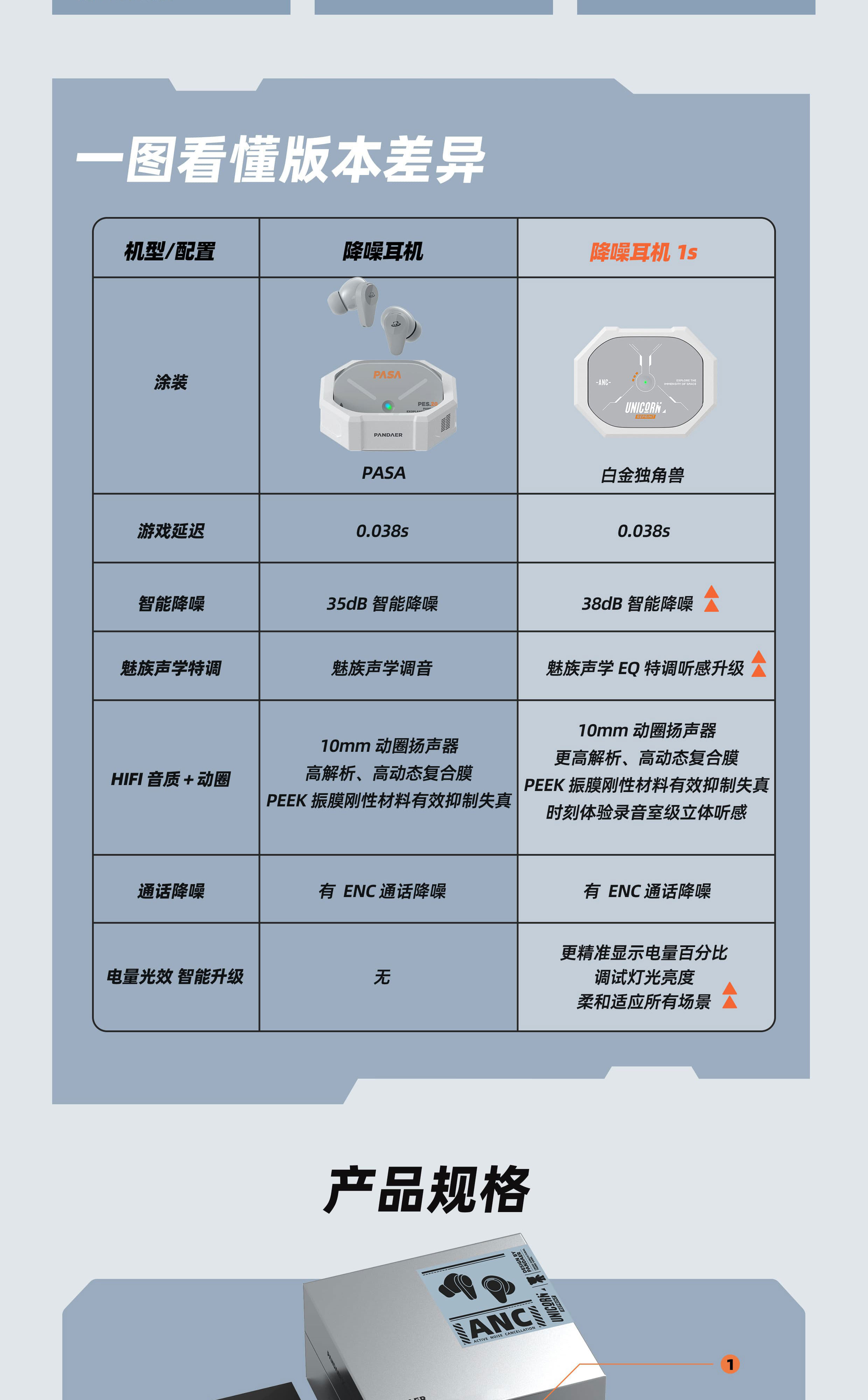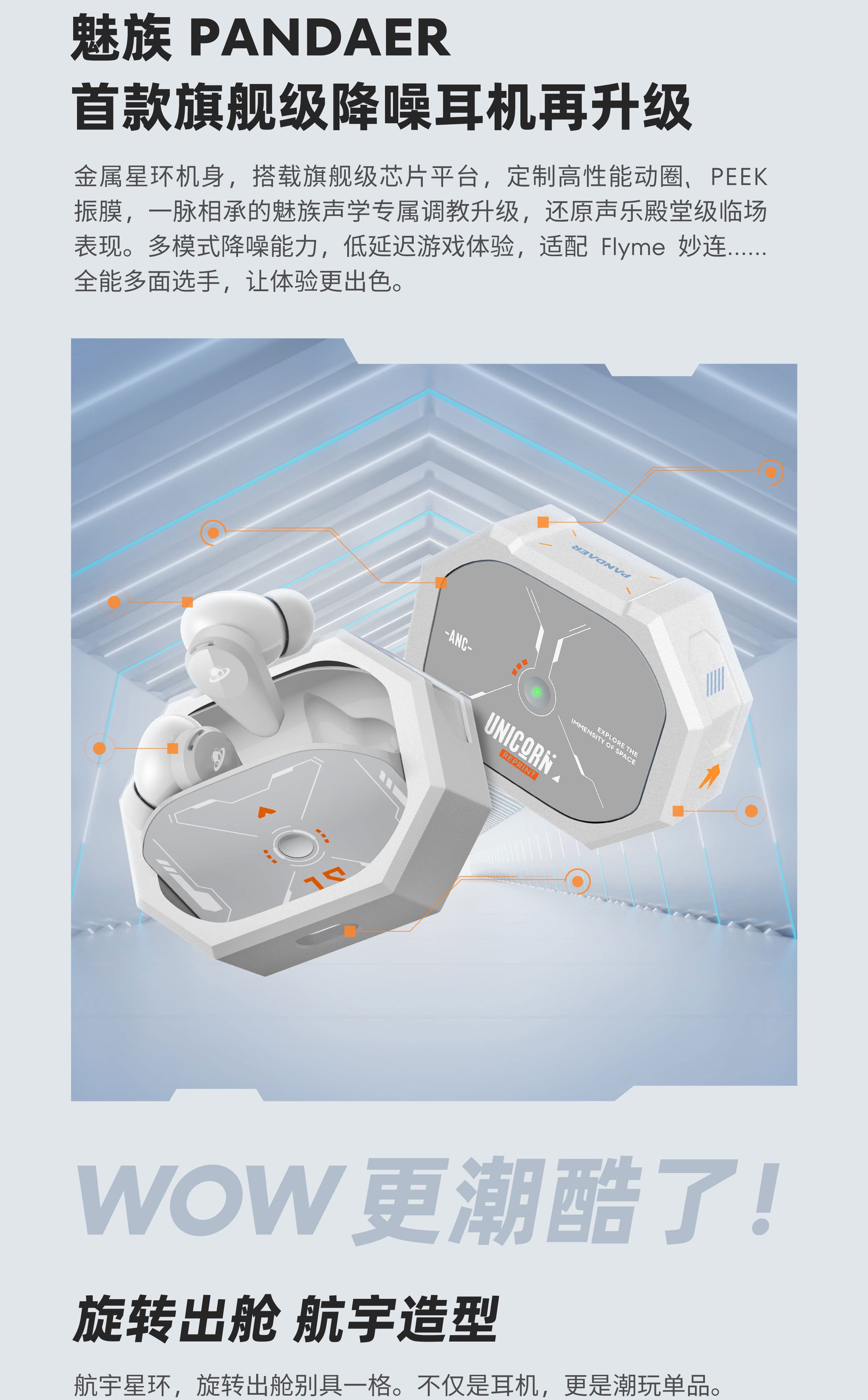 宇航造型旋转出舱 | 38dB 混合降噪 | 26h 超长续航 | 电竞低延迟模式 | 魅族声学 HiFi 高保真音质 | 经典涂装复刻