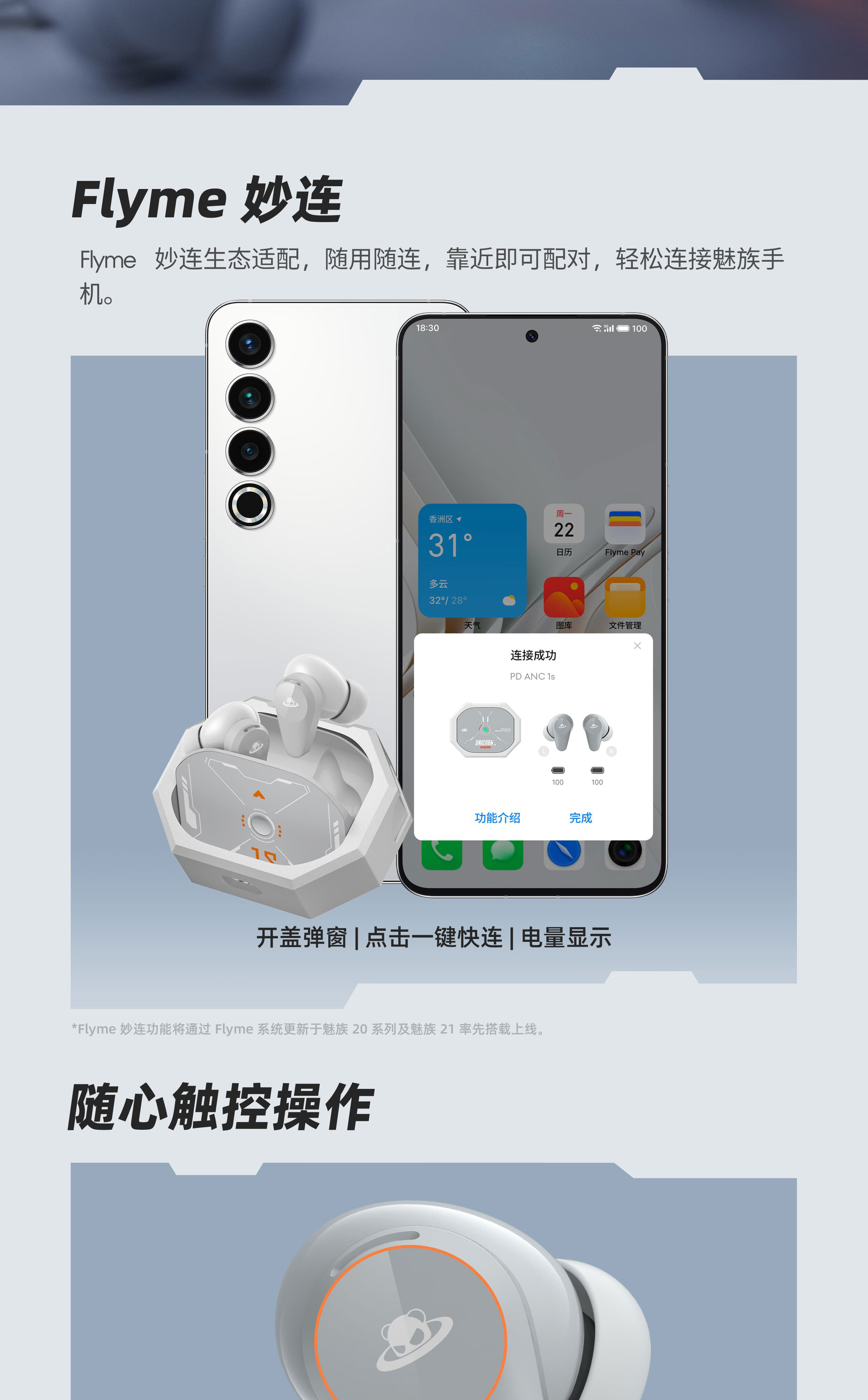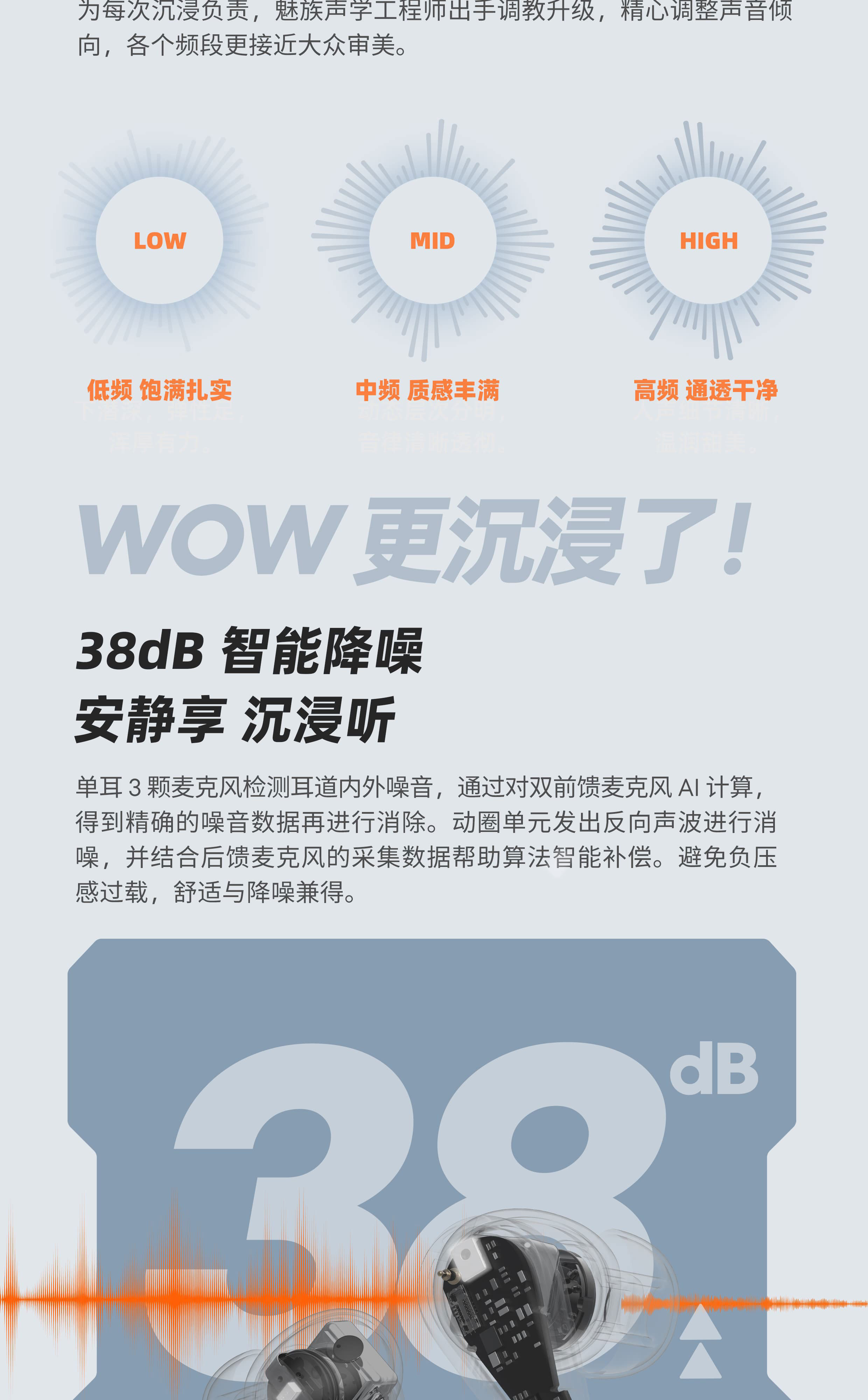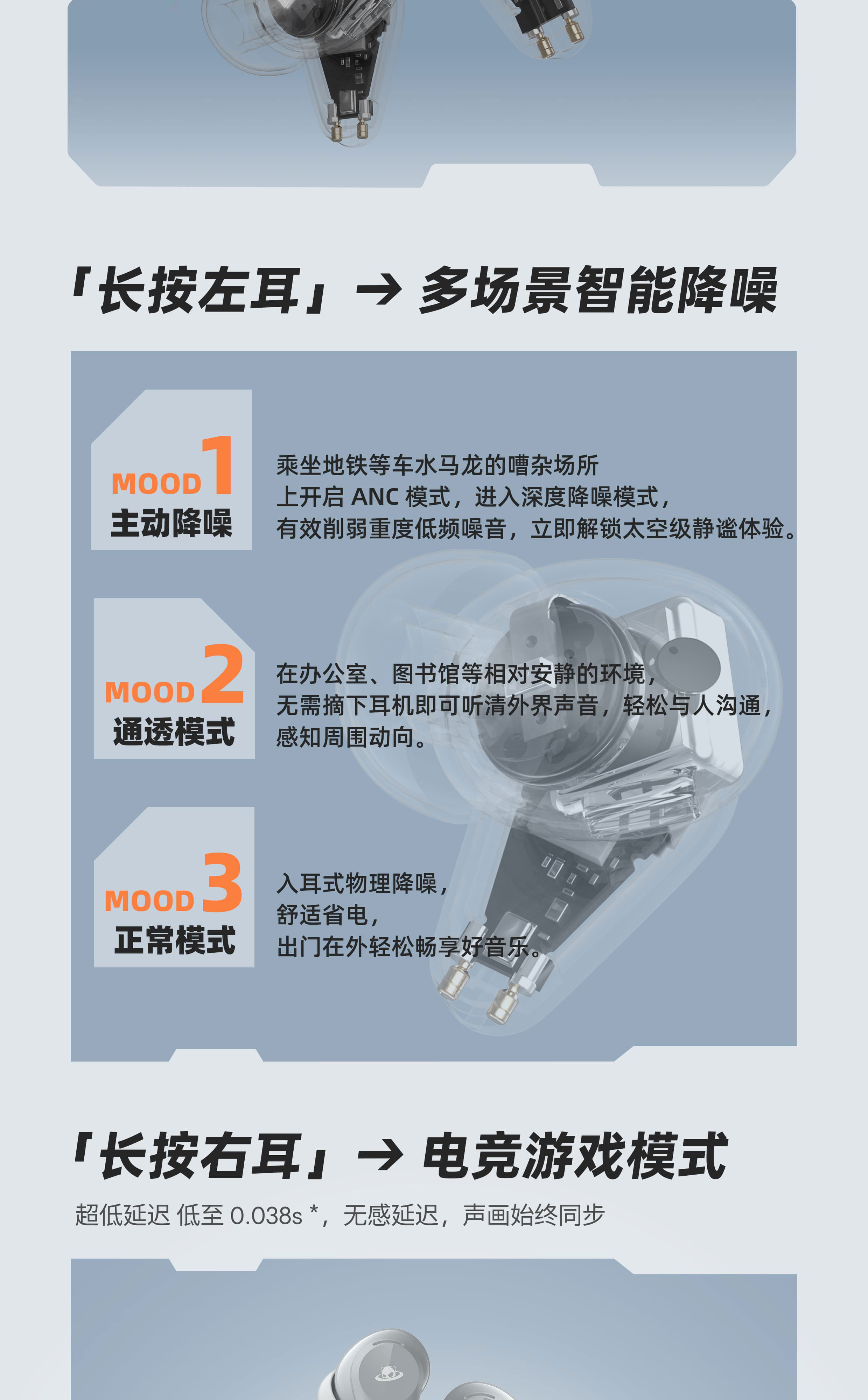 宇航造型旋转出舱 | 38dB 混合降噪 | 26h 超长续航 | 电竞低延迟模式 | 魅族声学 HiFi 高保真音质 | 经典涂装复刻