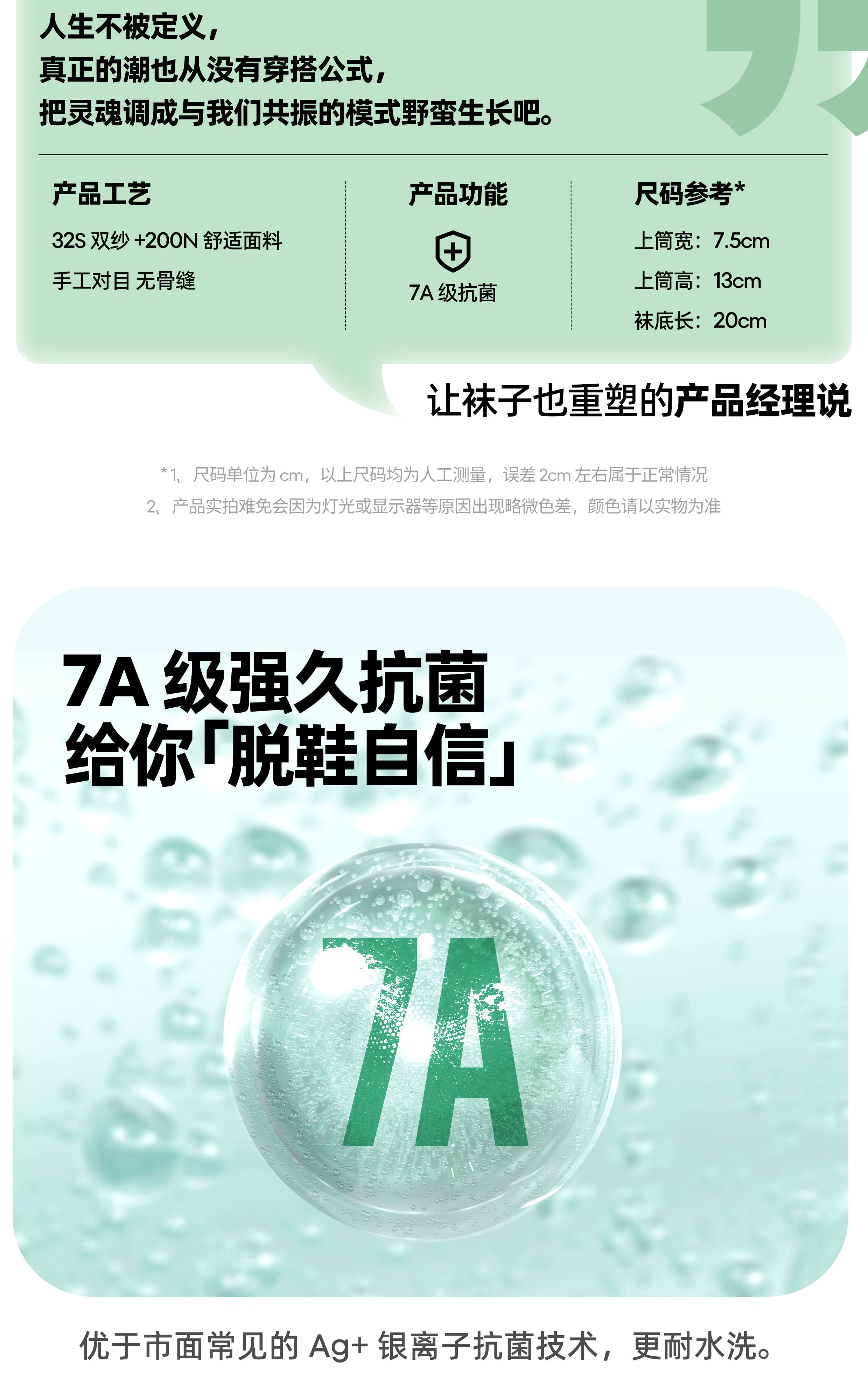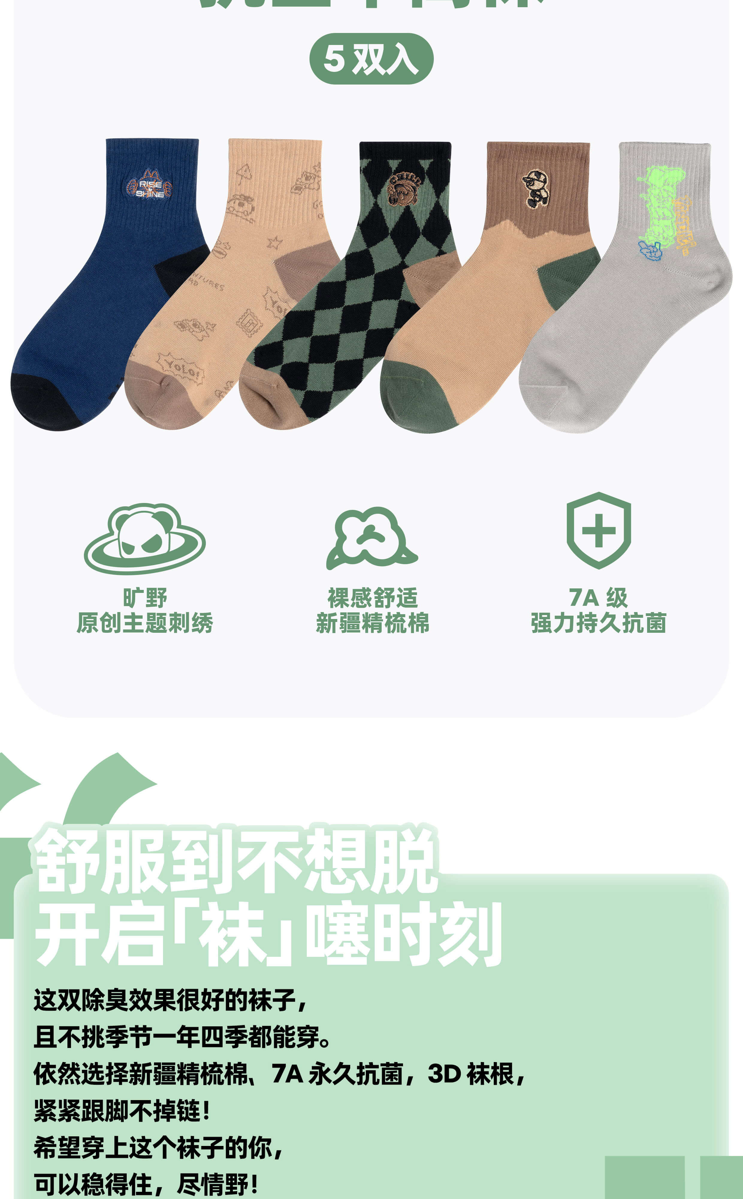 旷野原创主题刺绣 | 裸感舒适新疆精梳棉 | 7A级强力持久抗菌 | 32支高密度编织