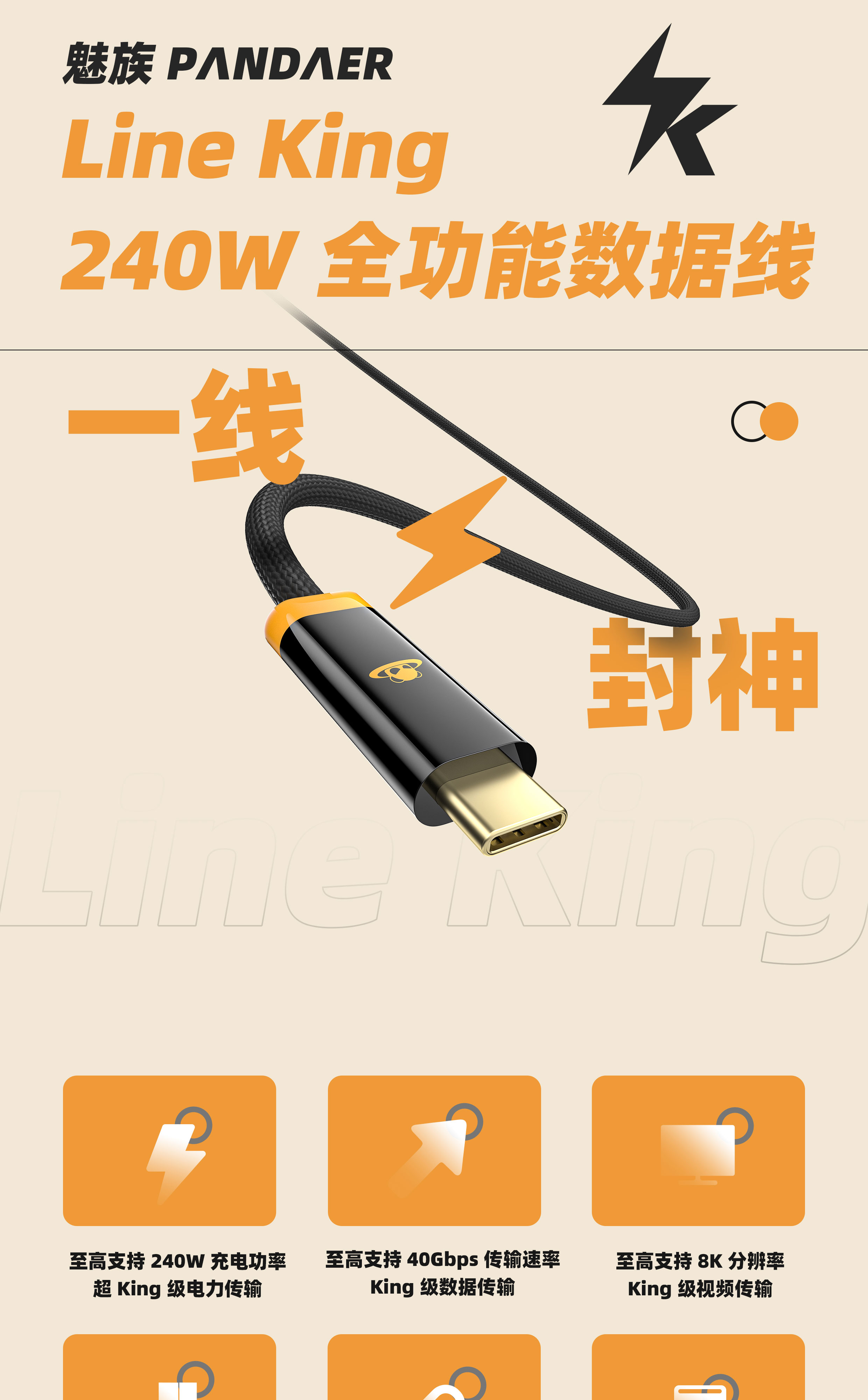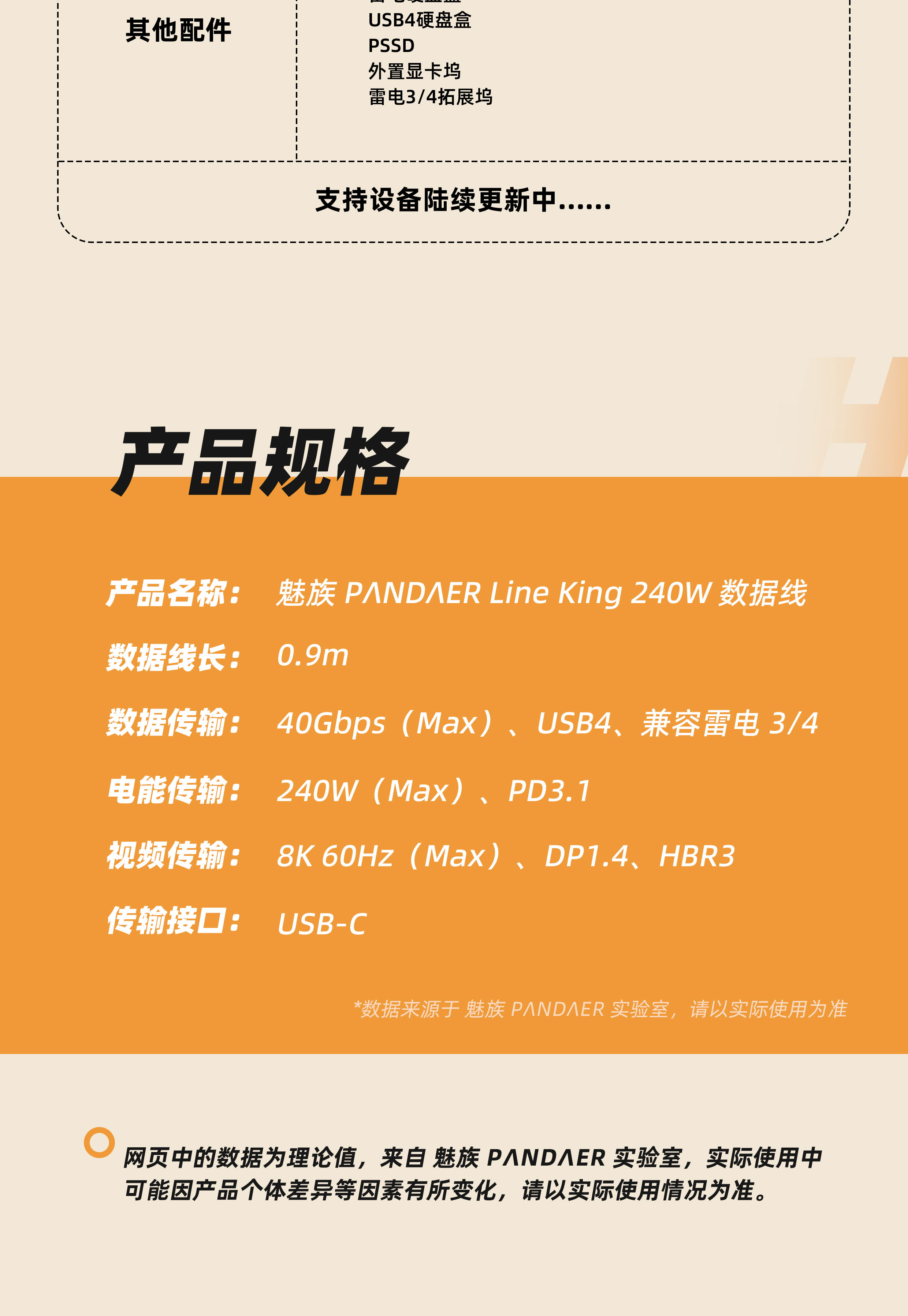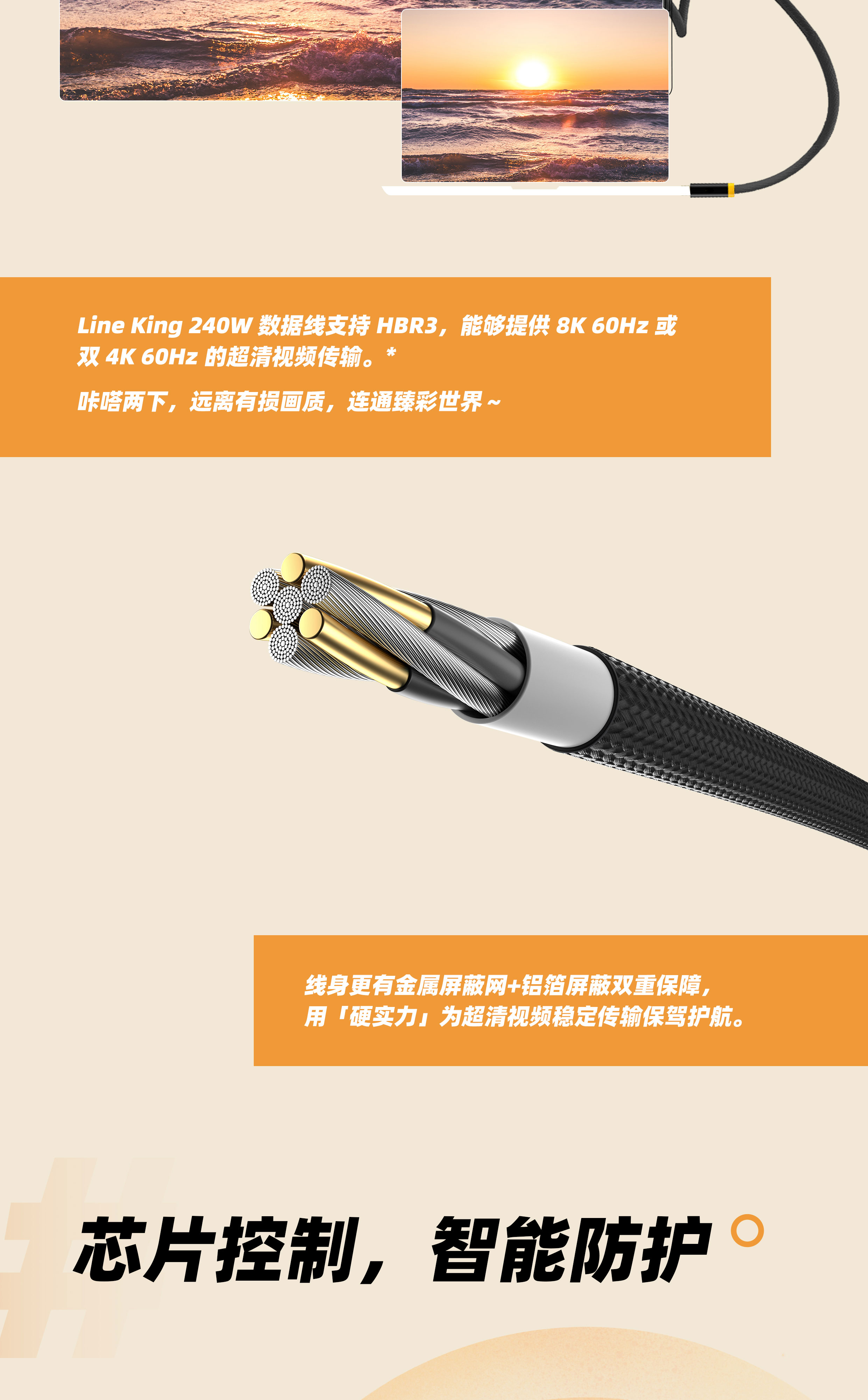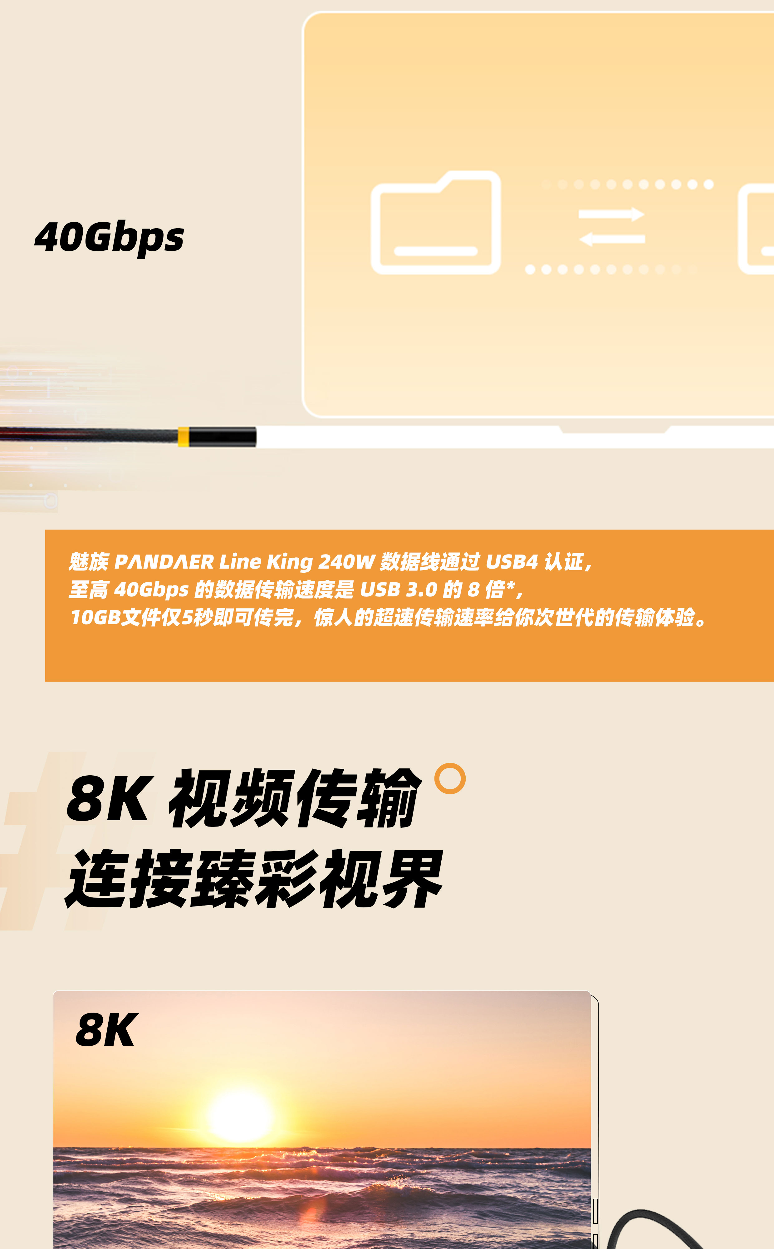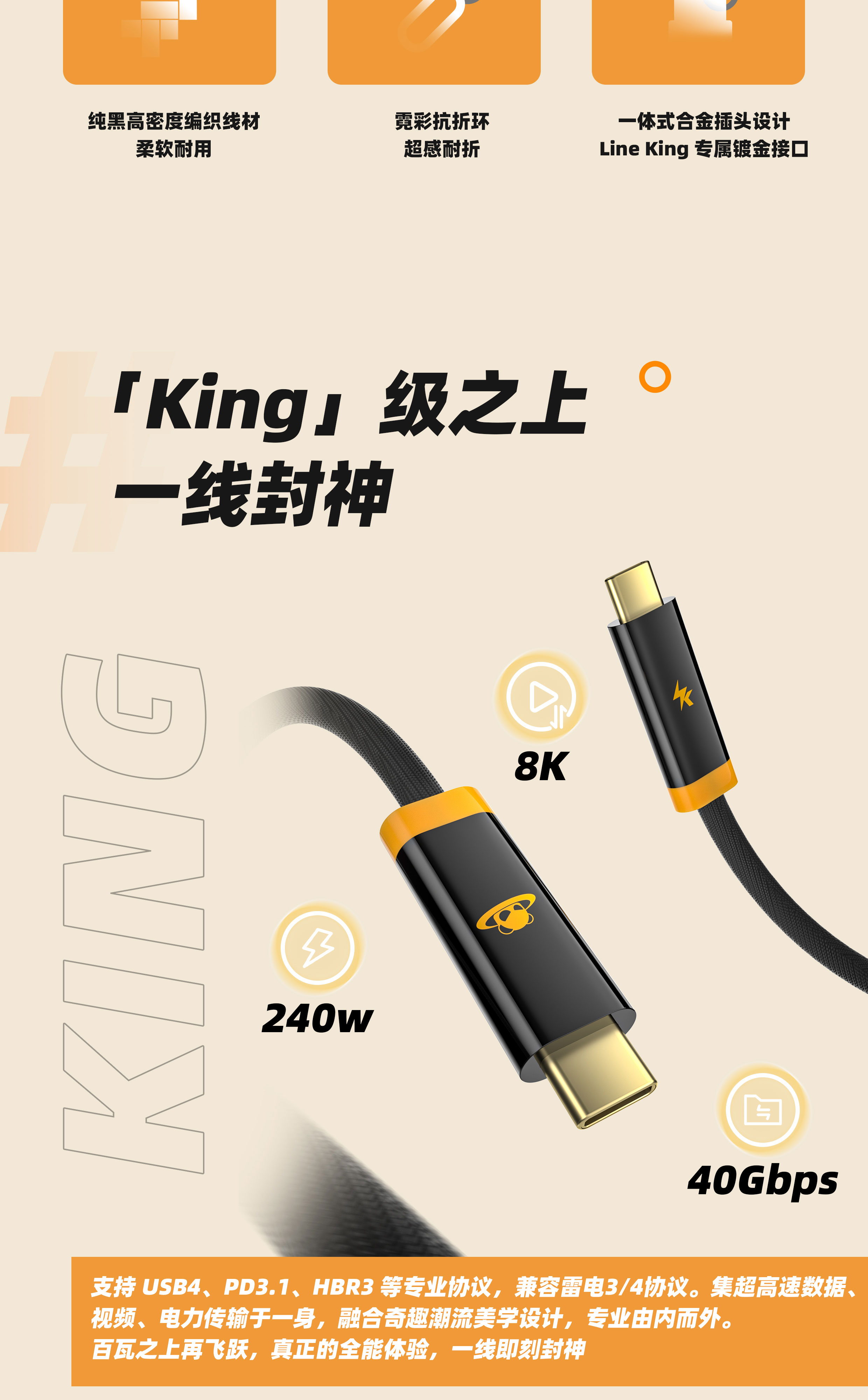 USB4 兼容雷电 3/4|40Gbps 传输速率|至高支持 8k 分辨率|一体式合金插头