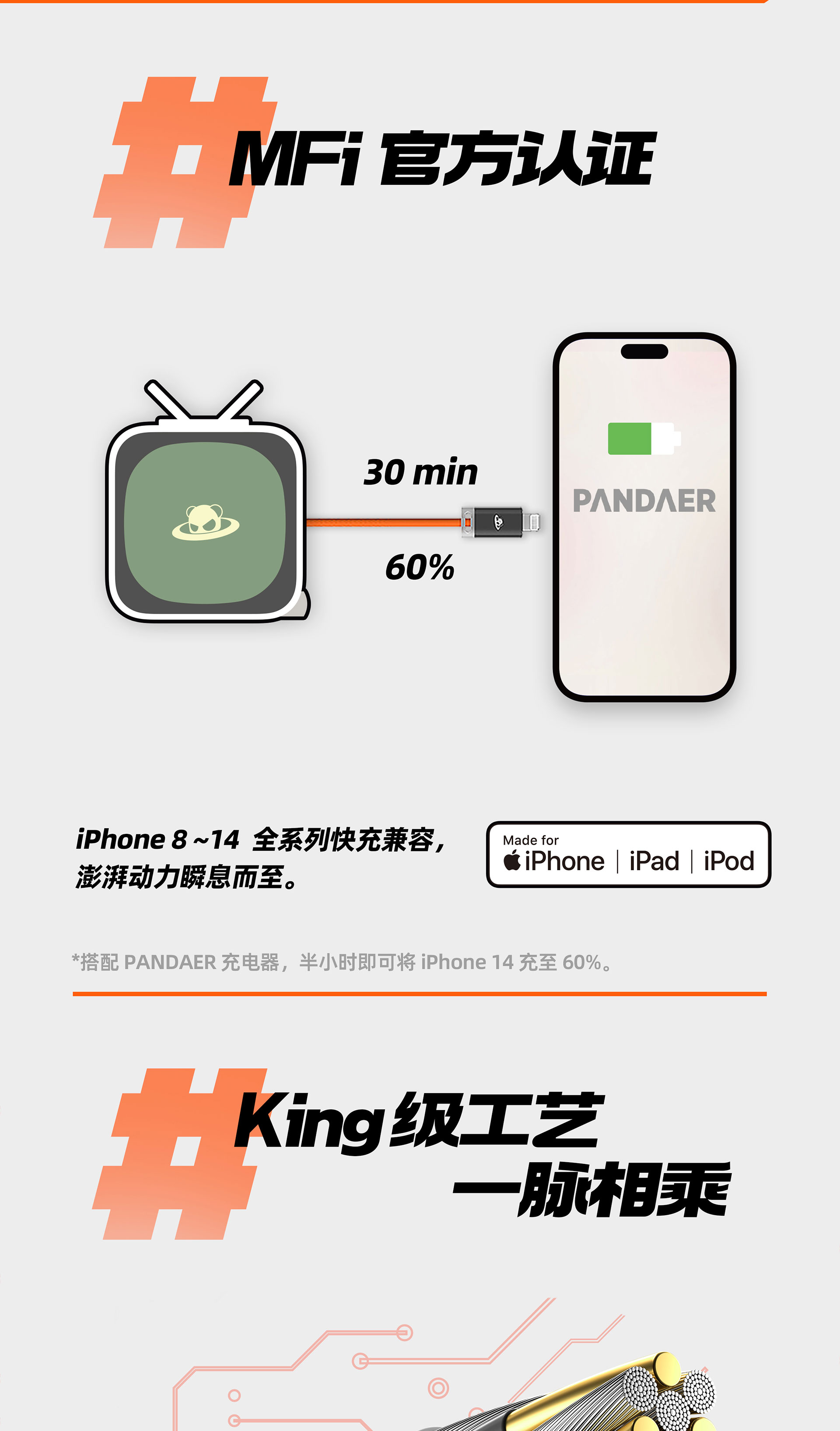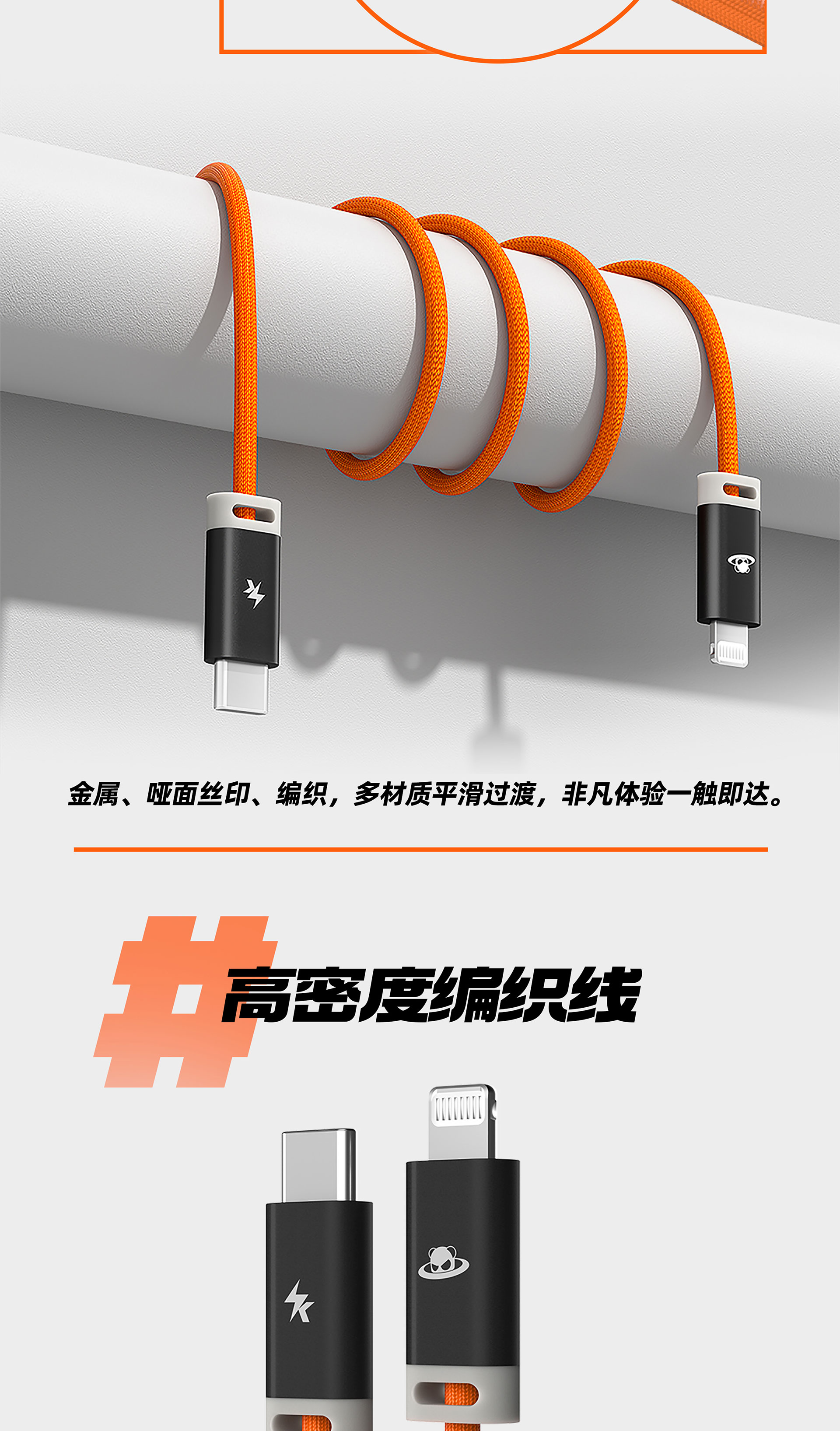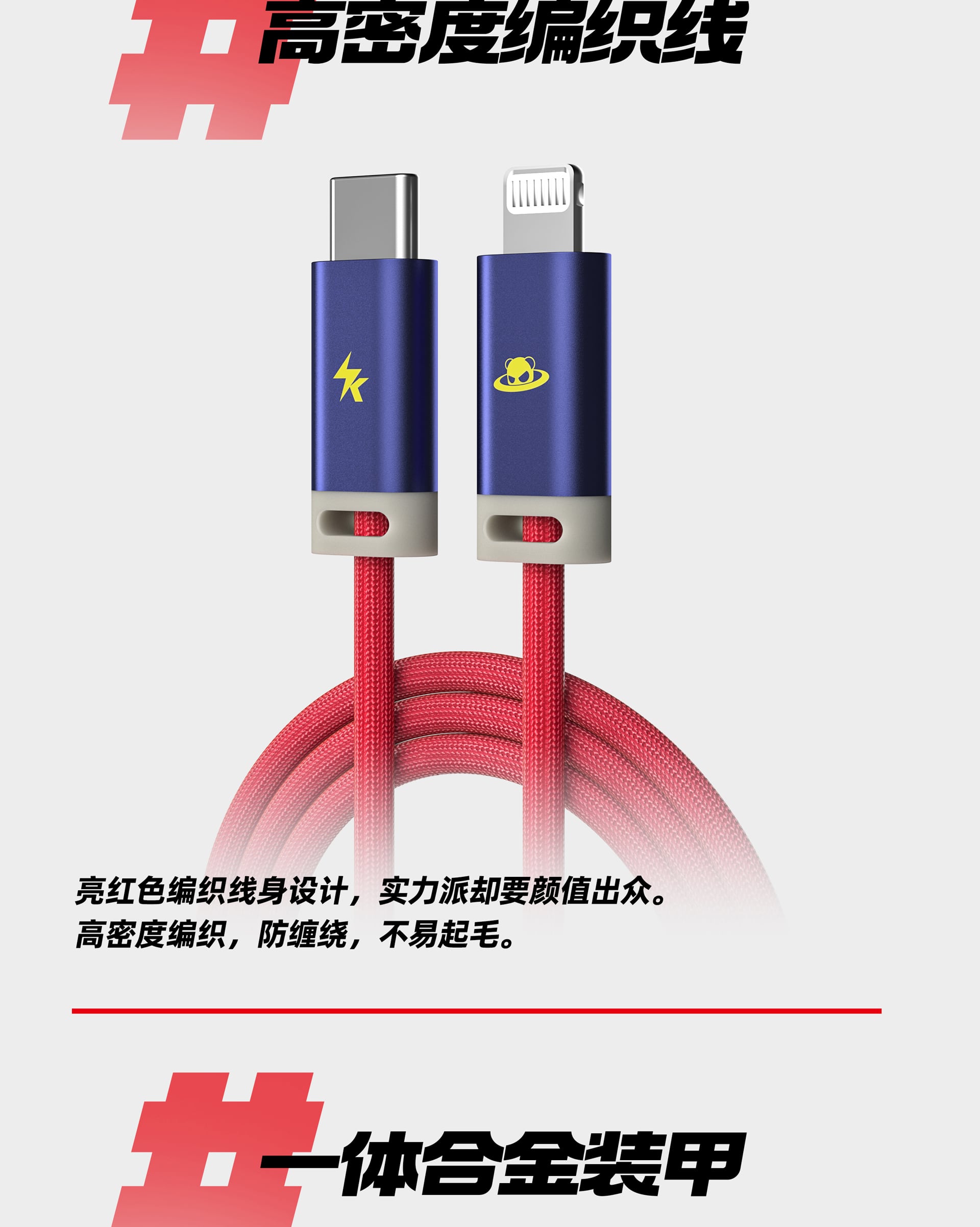MFi 官方认证|一体式合金插头|高密度编织|抗折霓彩拖尾 | 适用于iPhone iPad iPod