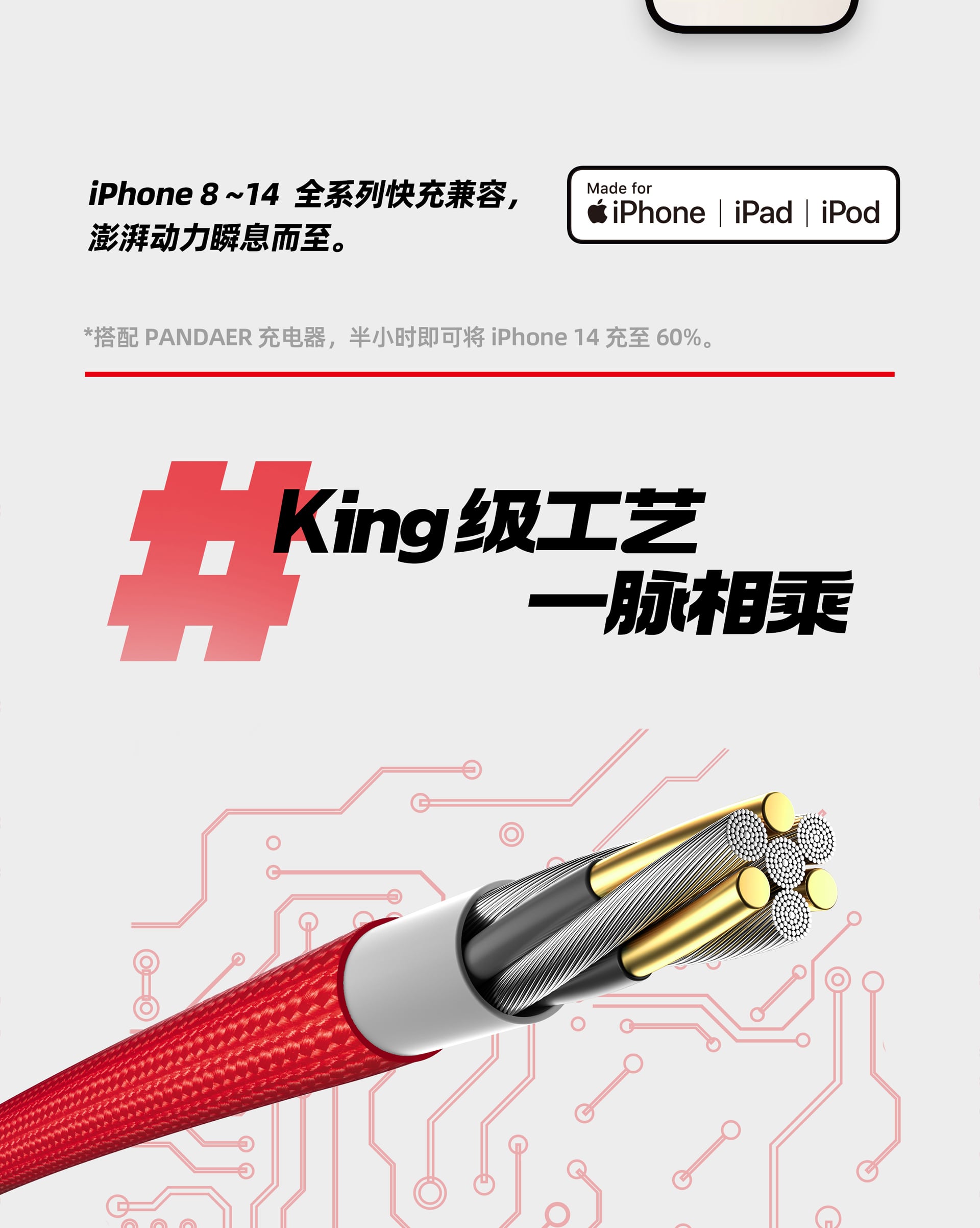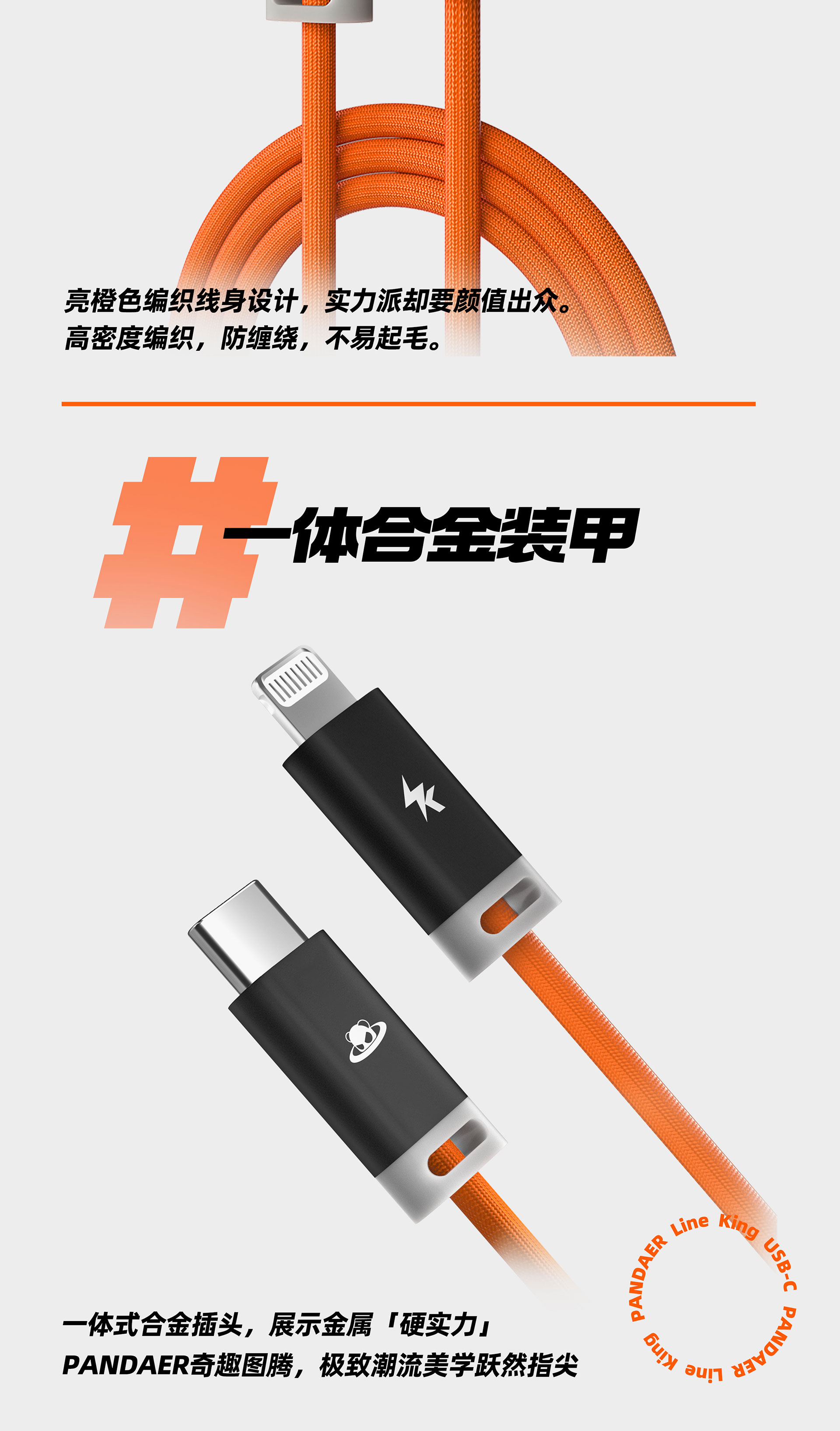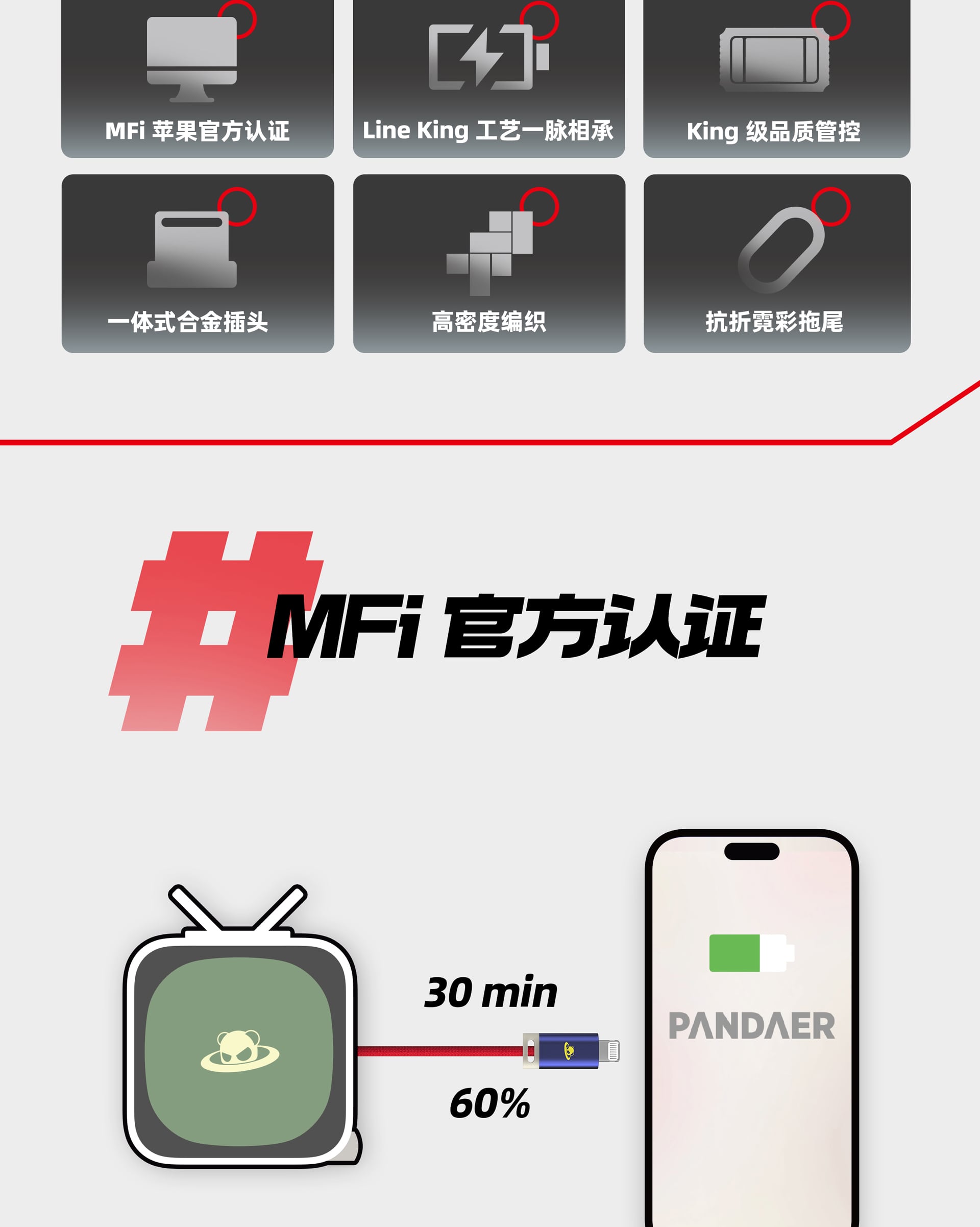 MFi 官方认证|一体式合金插头|高密度编织|抗折霓彩拖尾 | 适用于iPhone iPad iPod