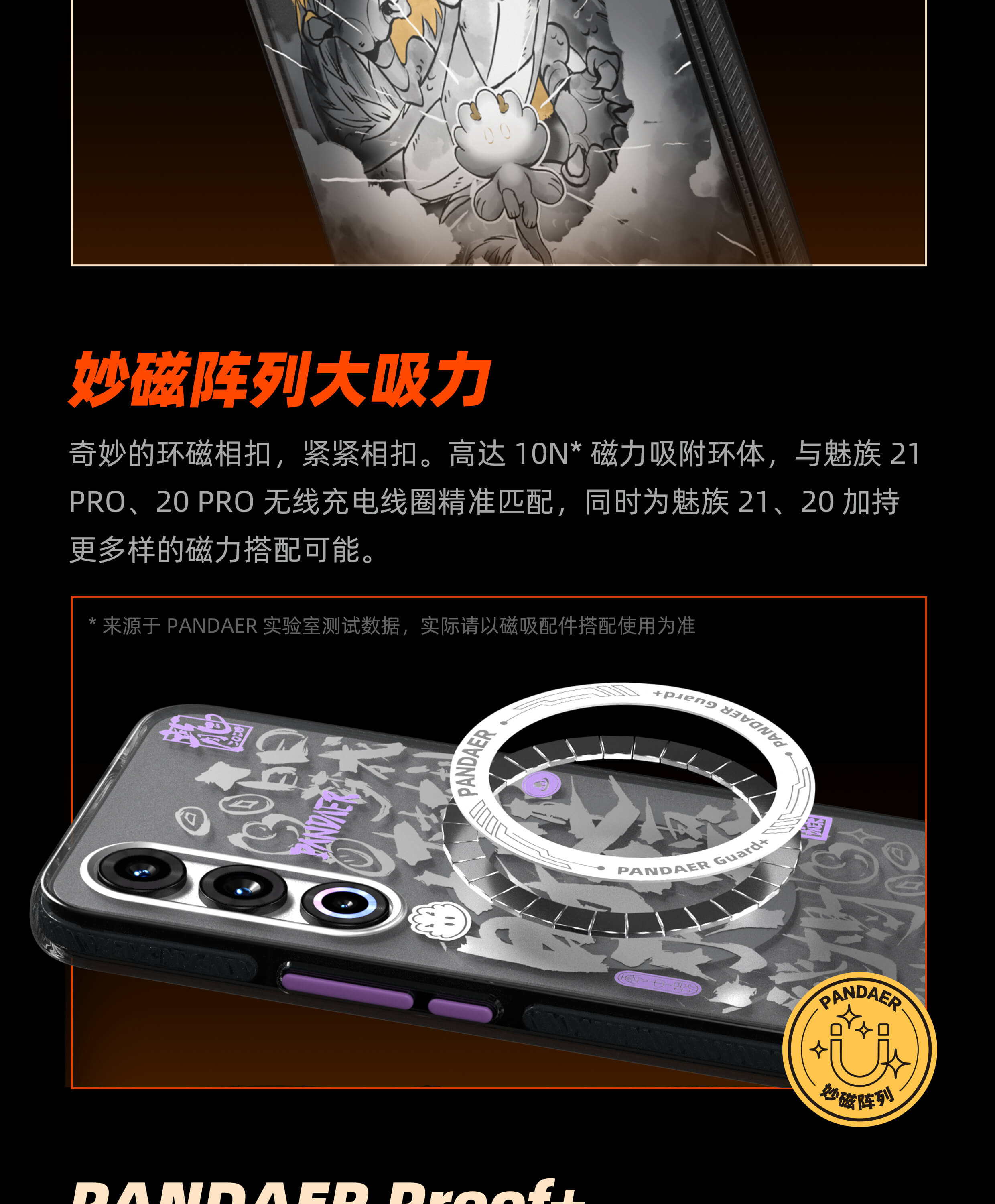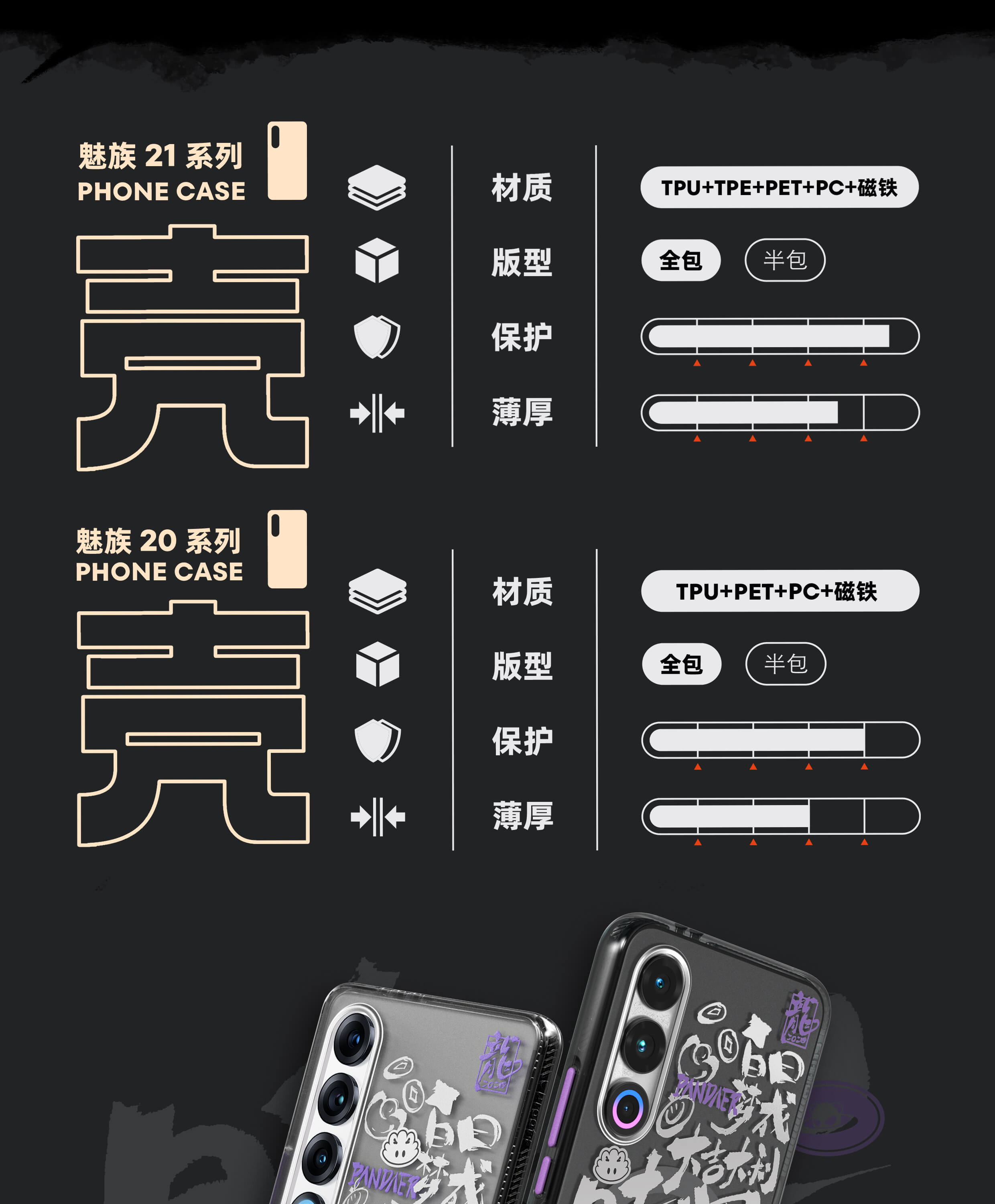 魅族 21 / 魅族 20 系列适用 | IML 双塑立体印刷 | 妙磁阵列大吸力 | Click 按键模组 | TPE 防撞条 | 全包结构
