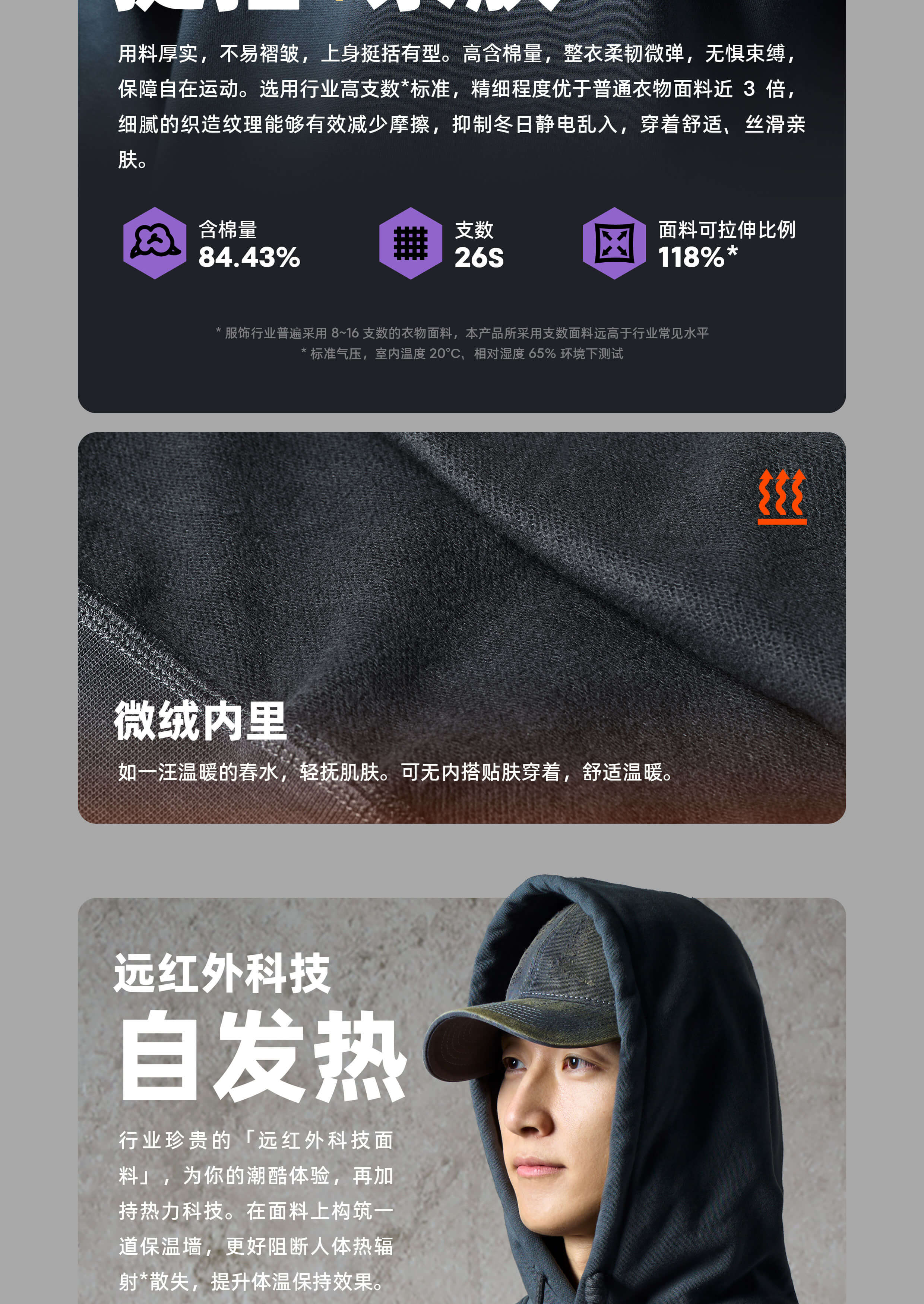 450g 重磅面料挺括亲肤 | 远红外科技自发热 | 抗缩水抗变形抗起球 | 耐穿耐洗