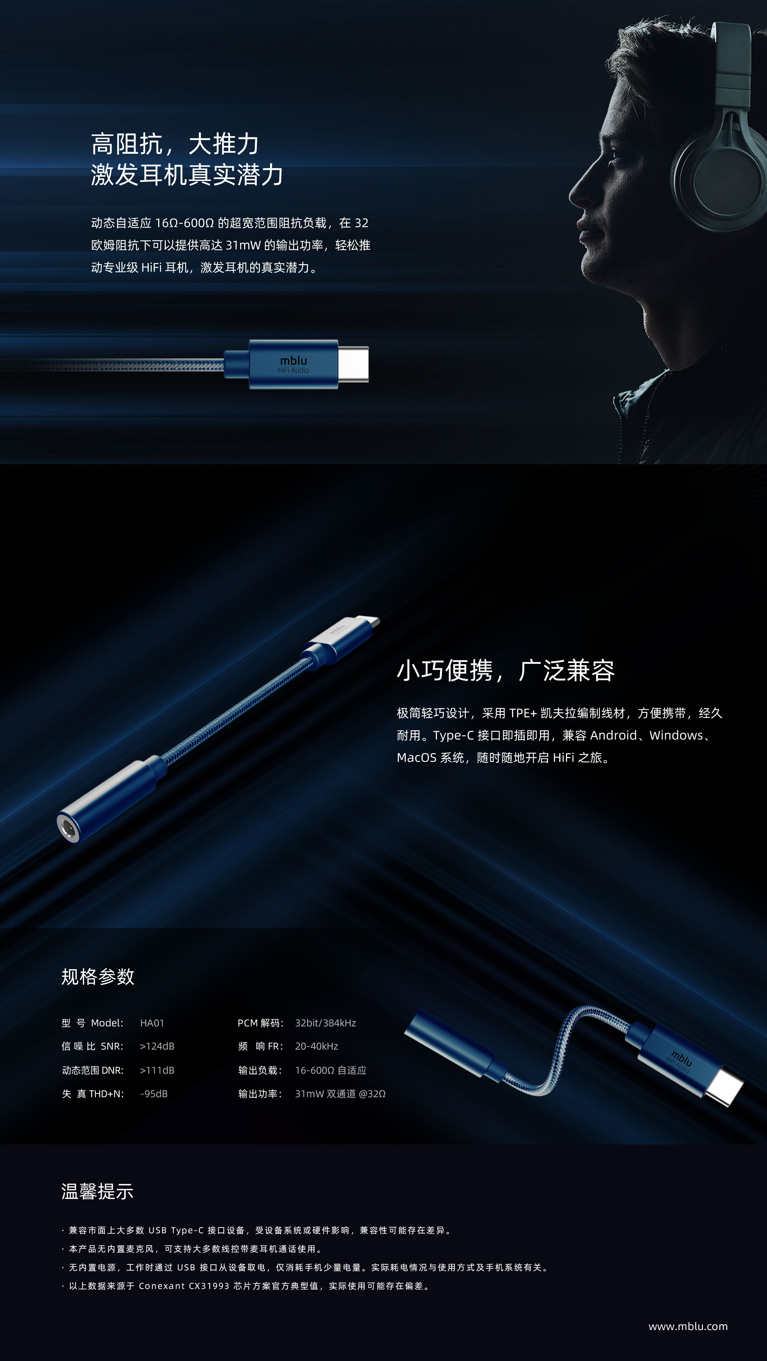 独立 DAC 解码芯片 | 600 欧姆高阻抗负载 | 31mW 大推力 | 小巧便携
