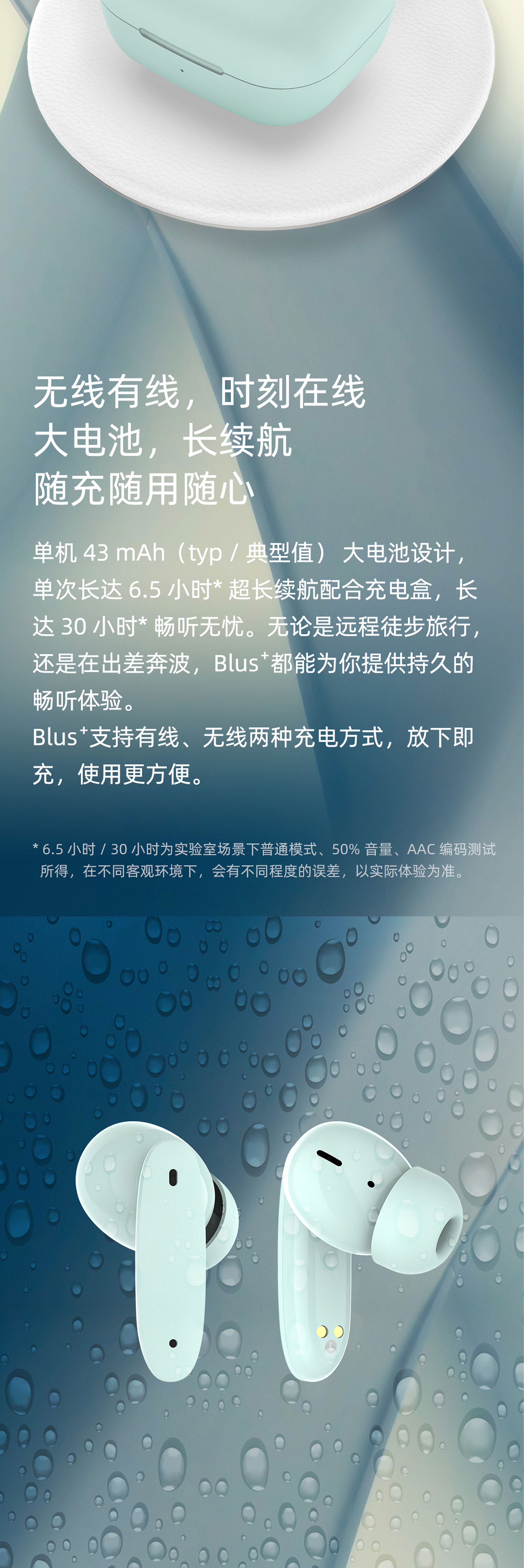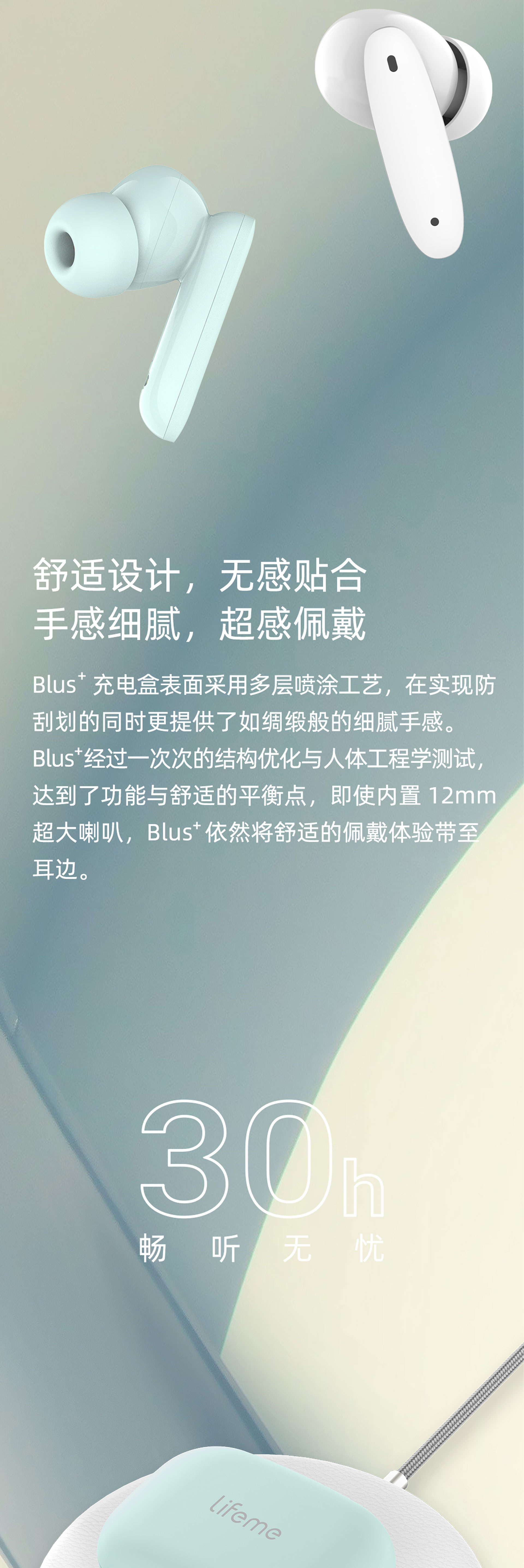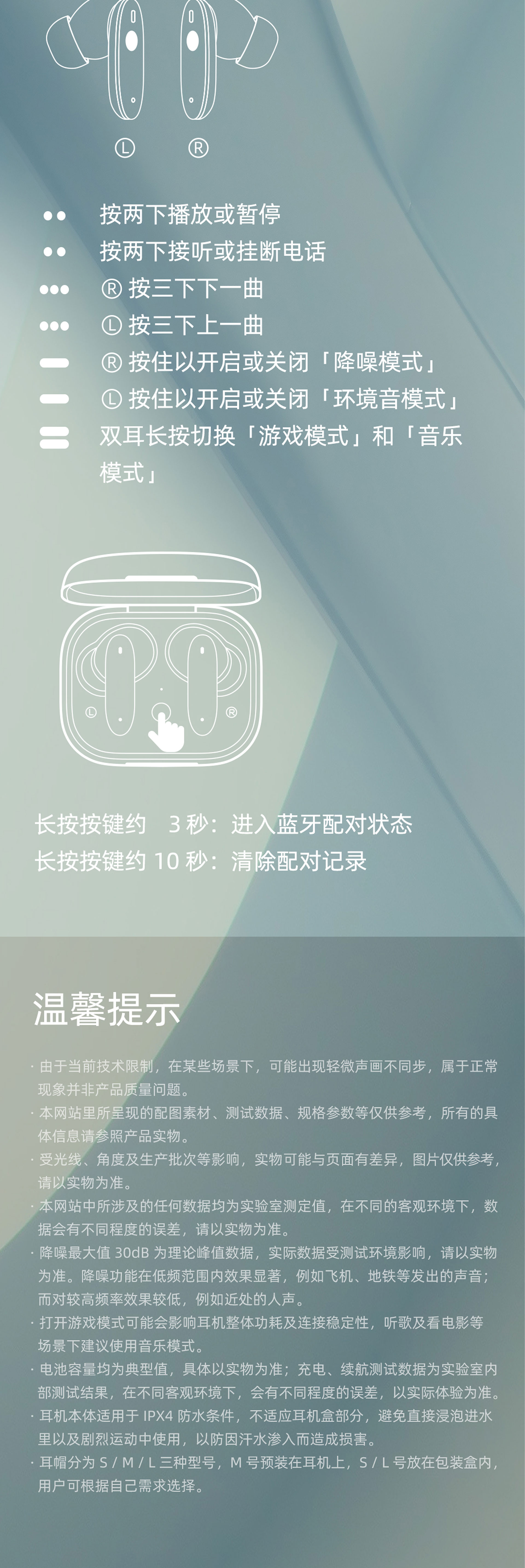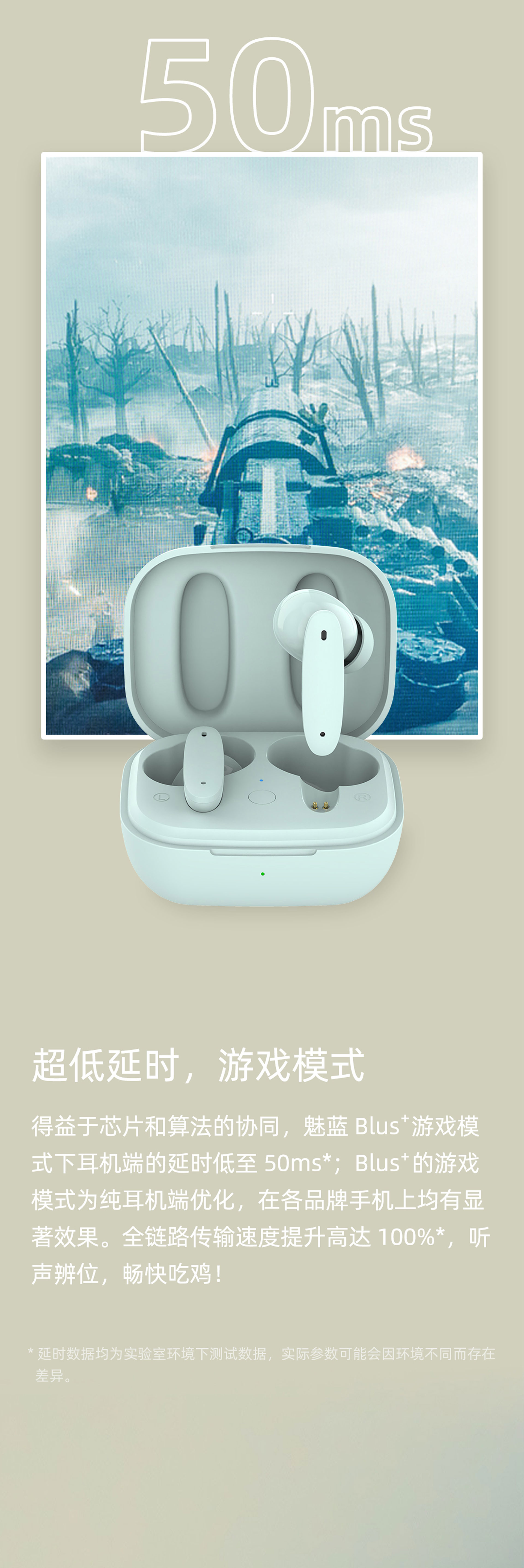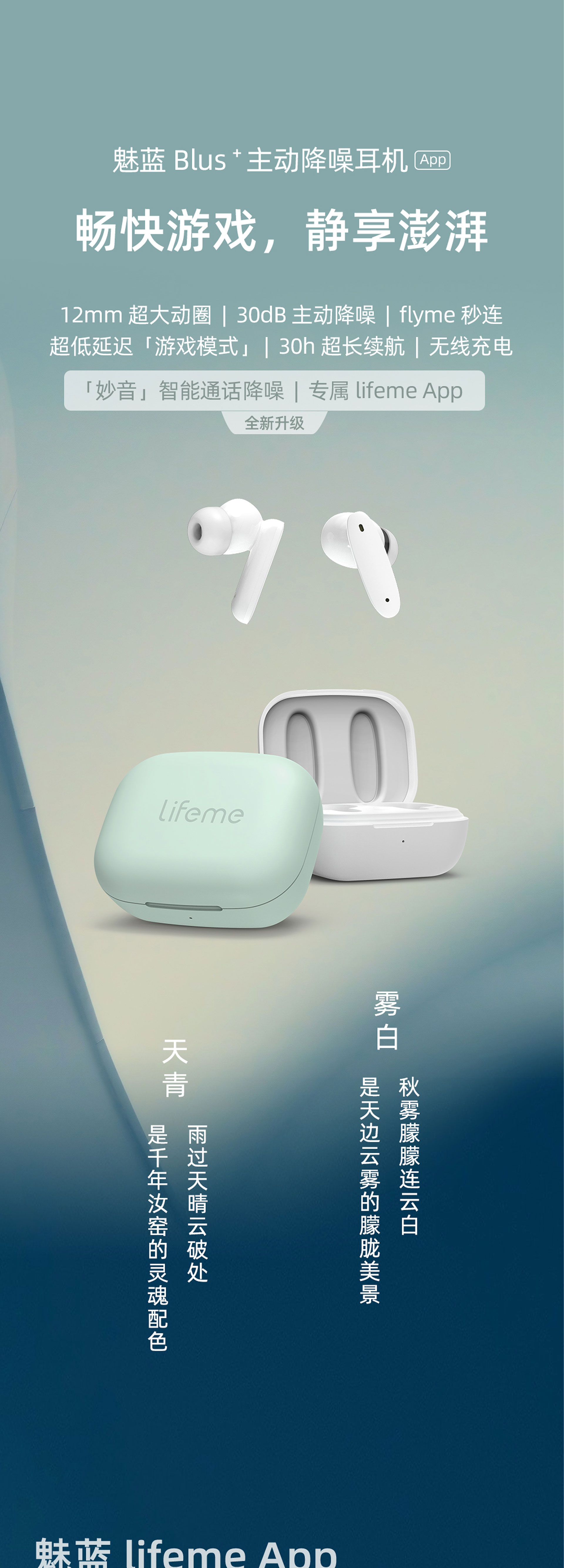 12mm 超大动圈 | 30db 主动降噪 | Flyme妙连 | 超低延迟「游戏模式」| 30h 超长续航 | 无线充电 | 「妙音」智能通话降噪 | 专属 lifeme App