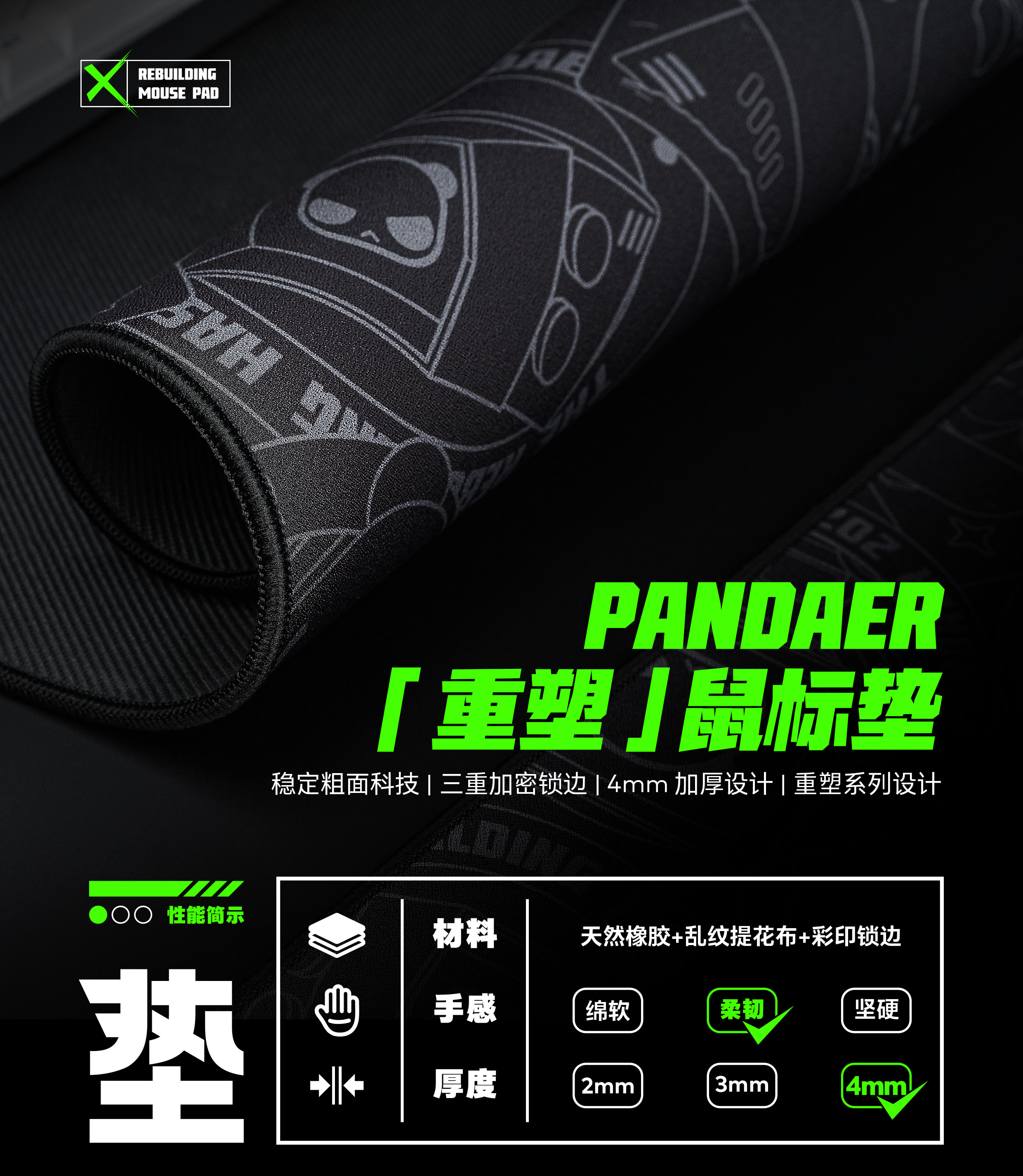 稳定粗面科技 | 三重加密锁边 | 4mm加厚设计 | 重塑系列设计