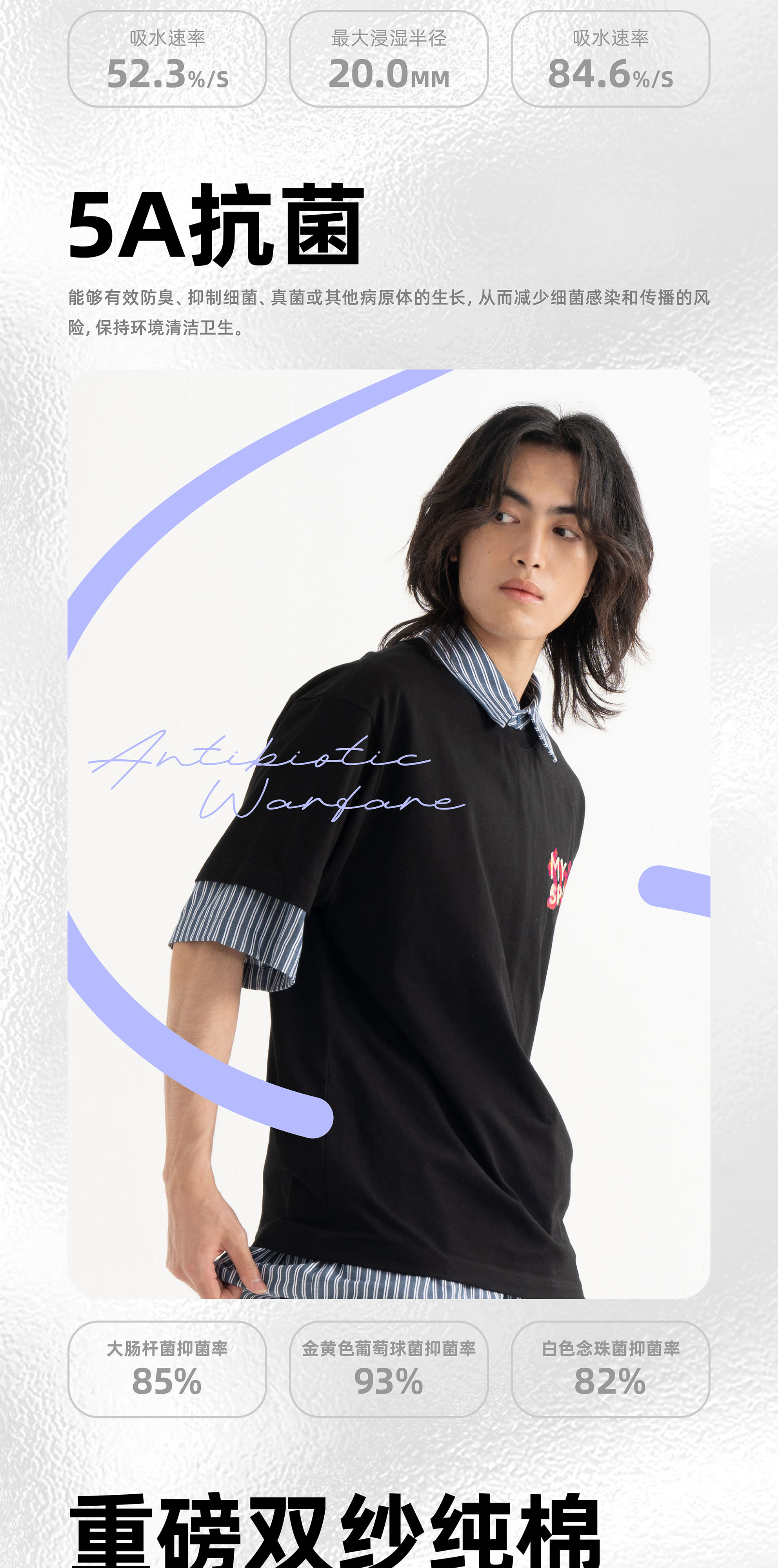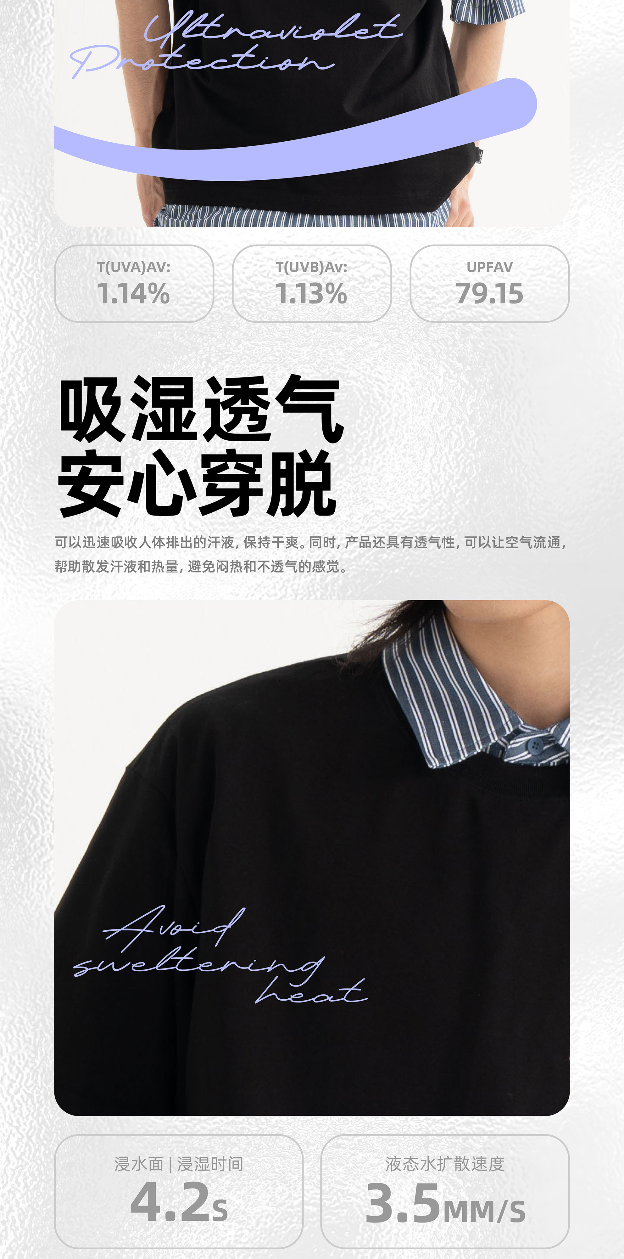 凉感科技 | UPF76防紫外线 | 吸水速率:84.6%/s | 5A抗菌 | 32S 支数 240g 重磅 | 优质新疆棉