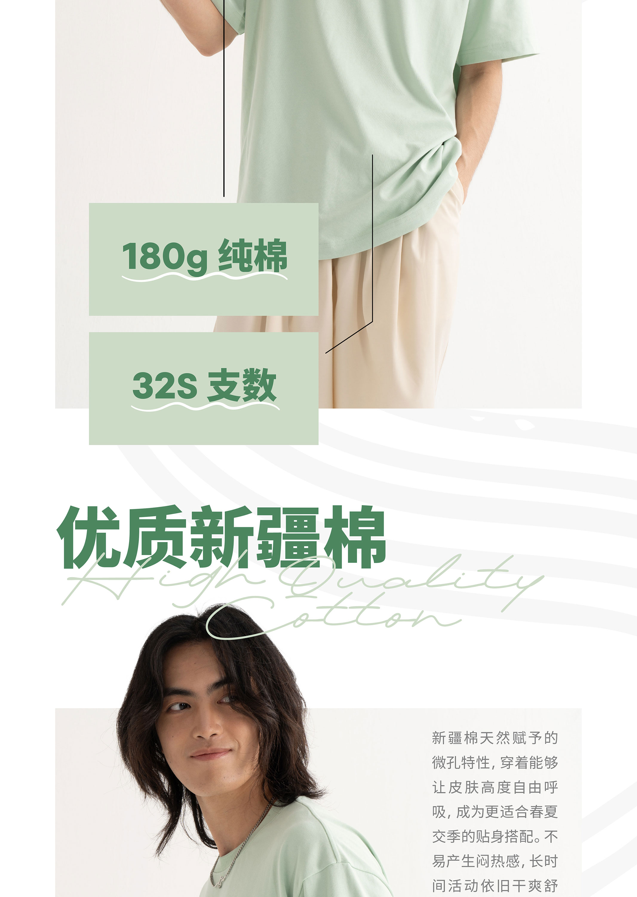 吸湿速干 | 网眼透气 | 32S 支数 180g 纯棉 | 优质新疆棉