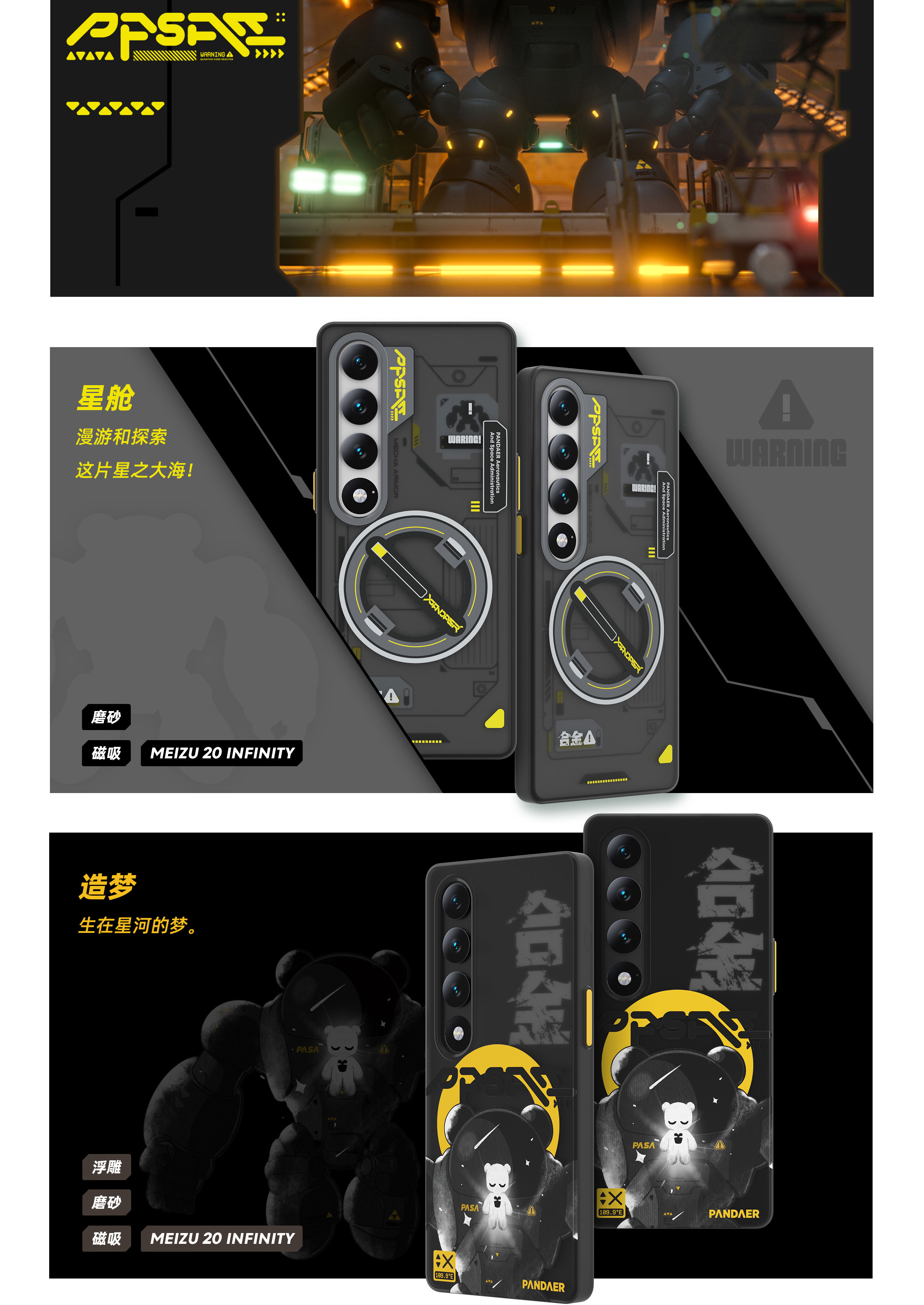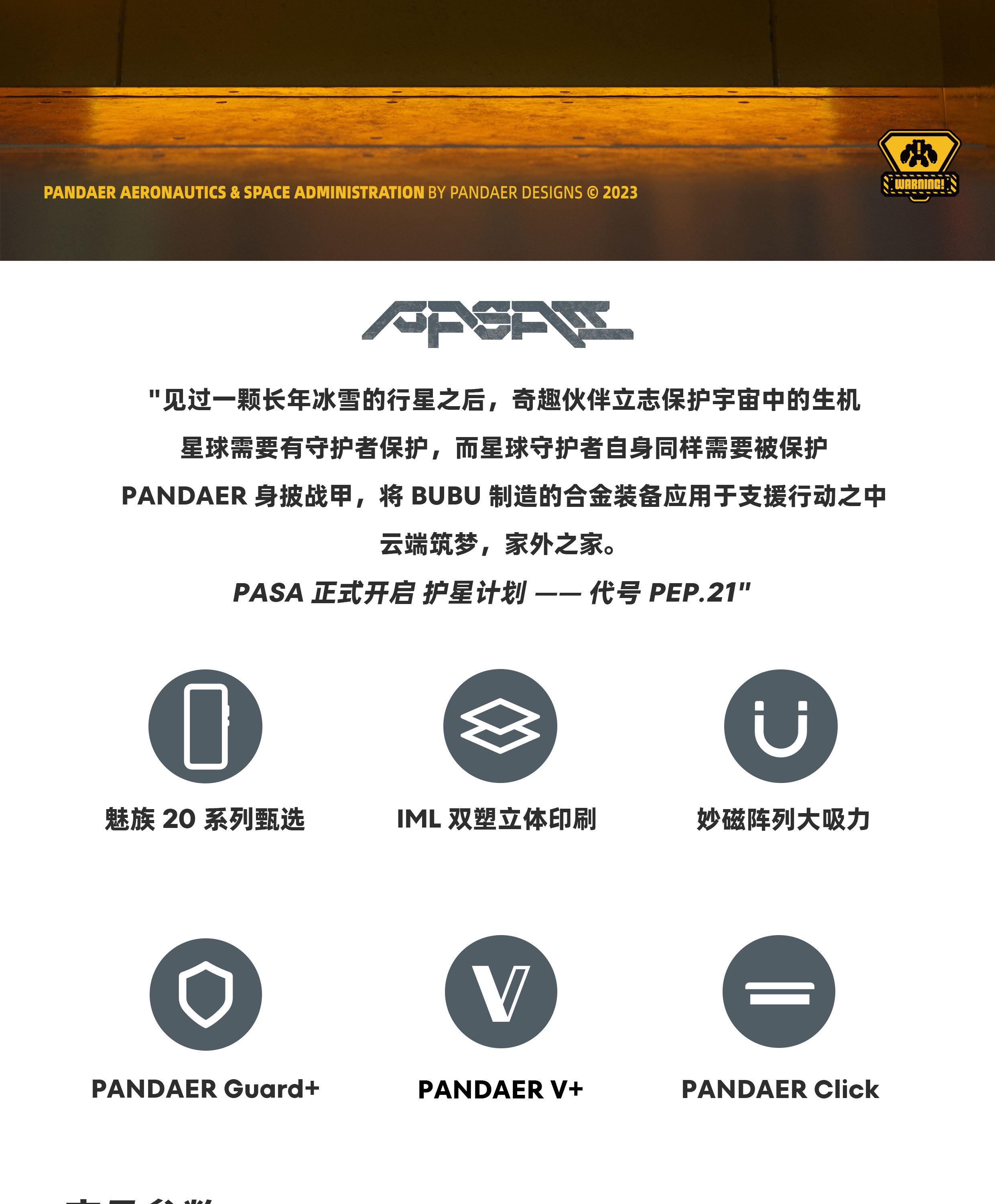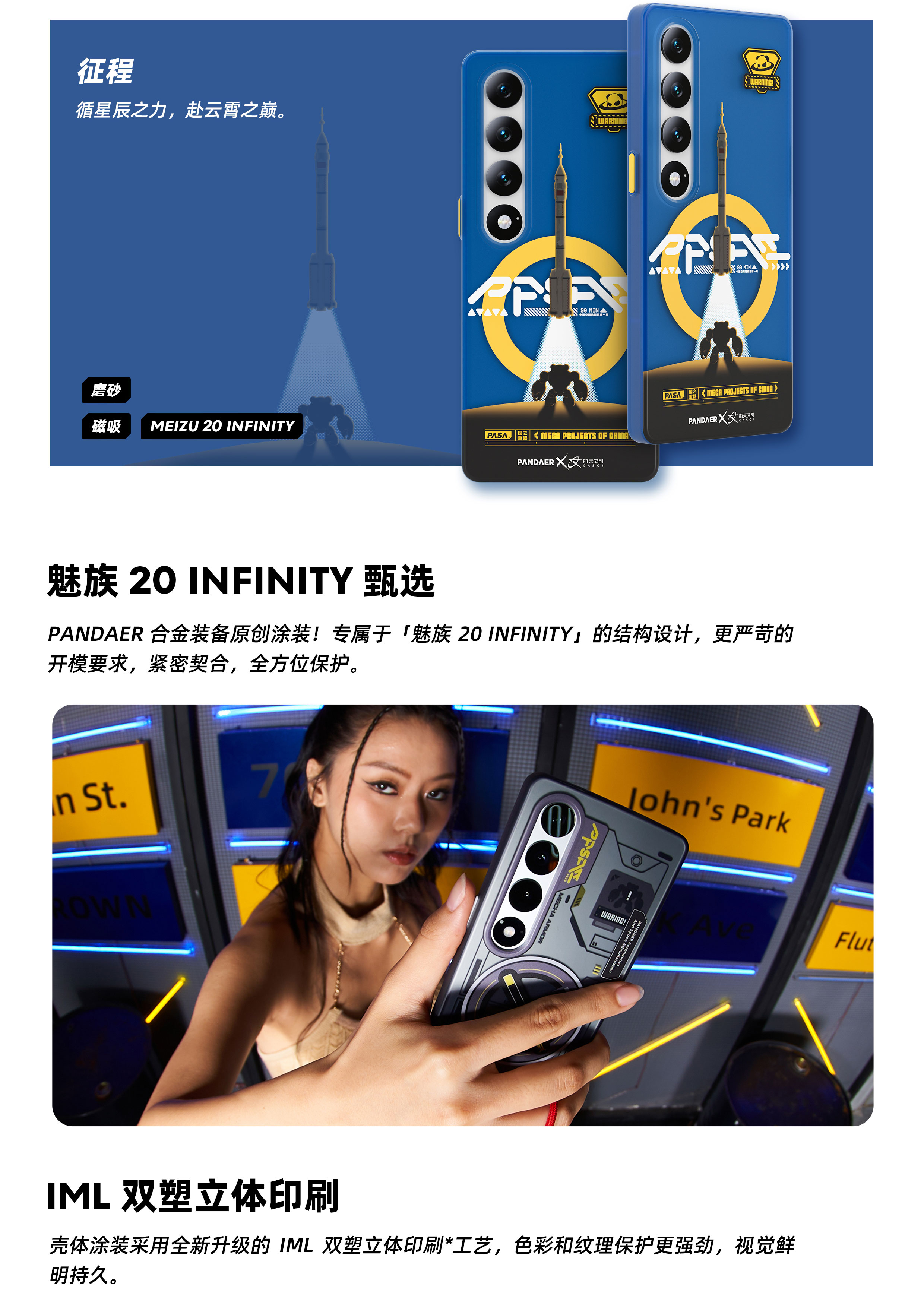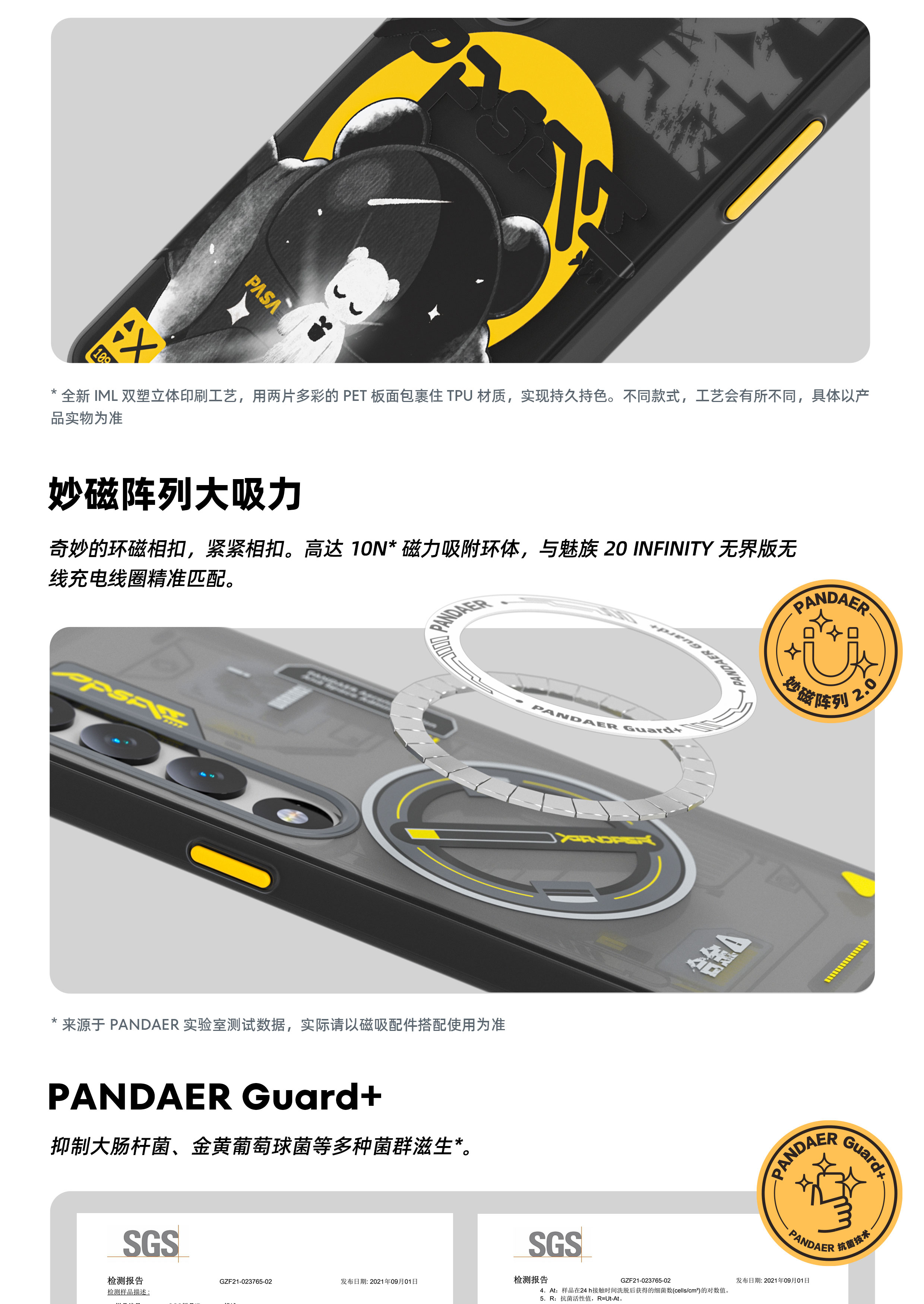 魅族 20系列适用 | IML 双塑立体印刷 | 妙磁阵列大吸力 | 可折叠 V 架 | Click 按键模组 | 全包结构