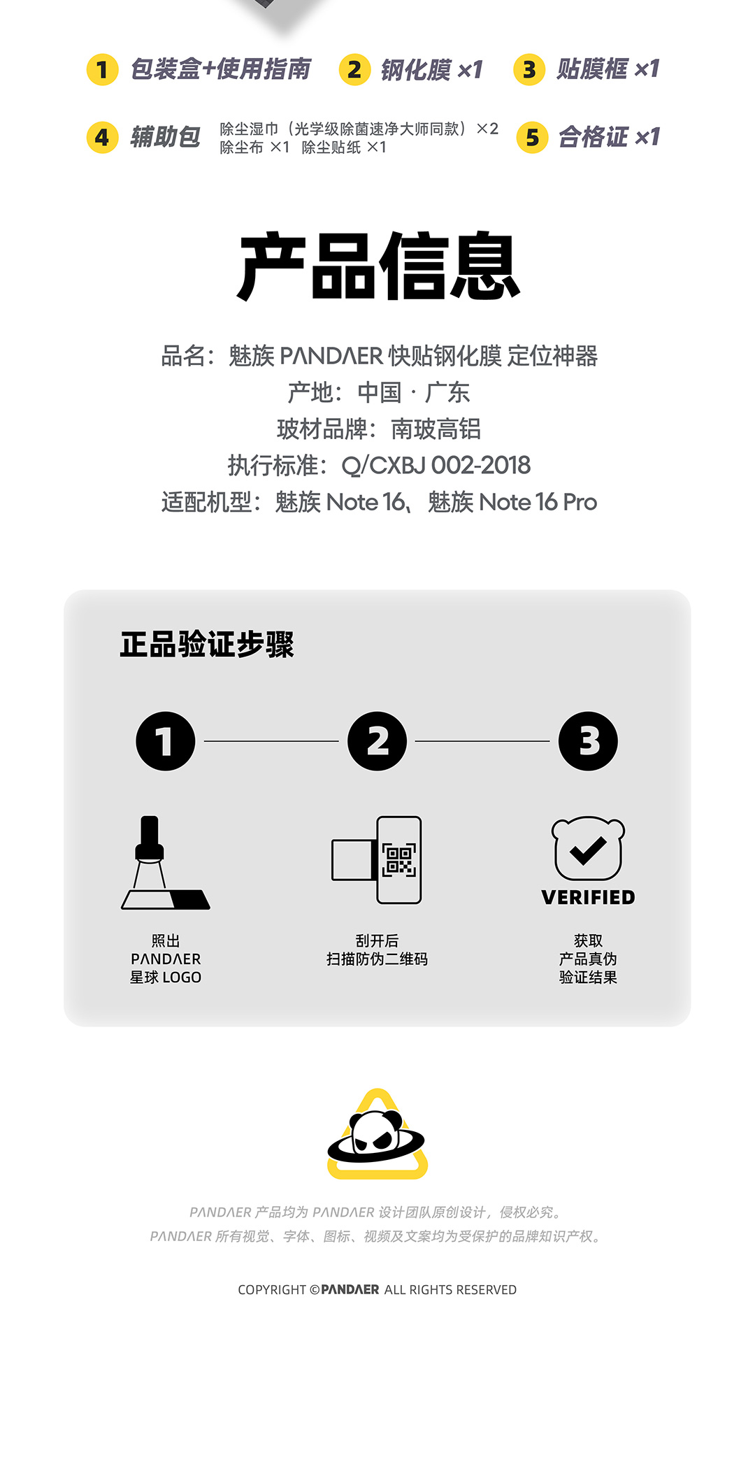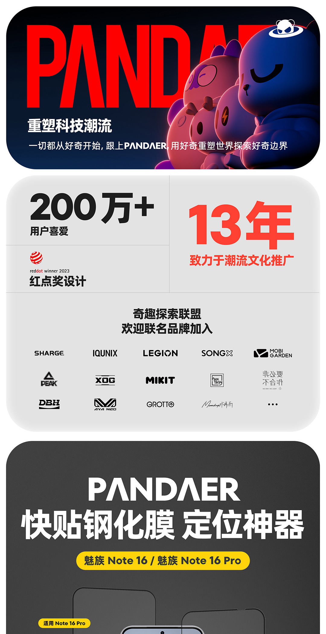 魅族 Note 16 系列 PΛNDΛER 快贴钢化膜