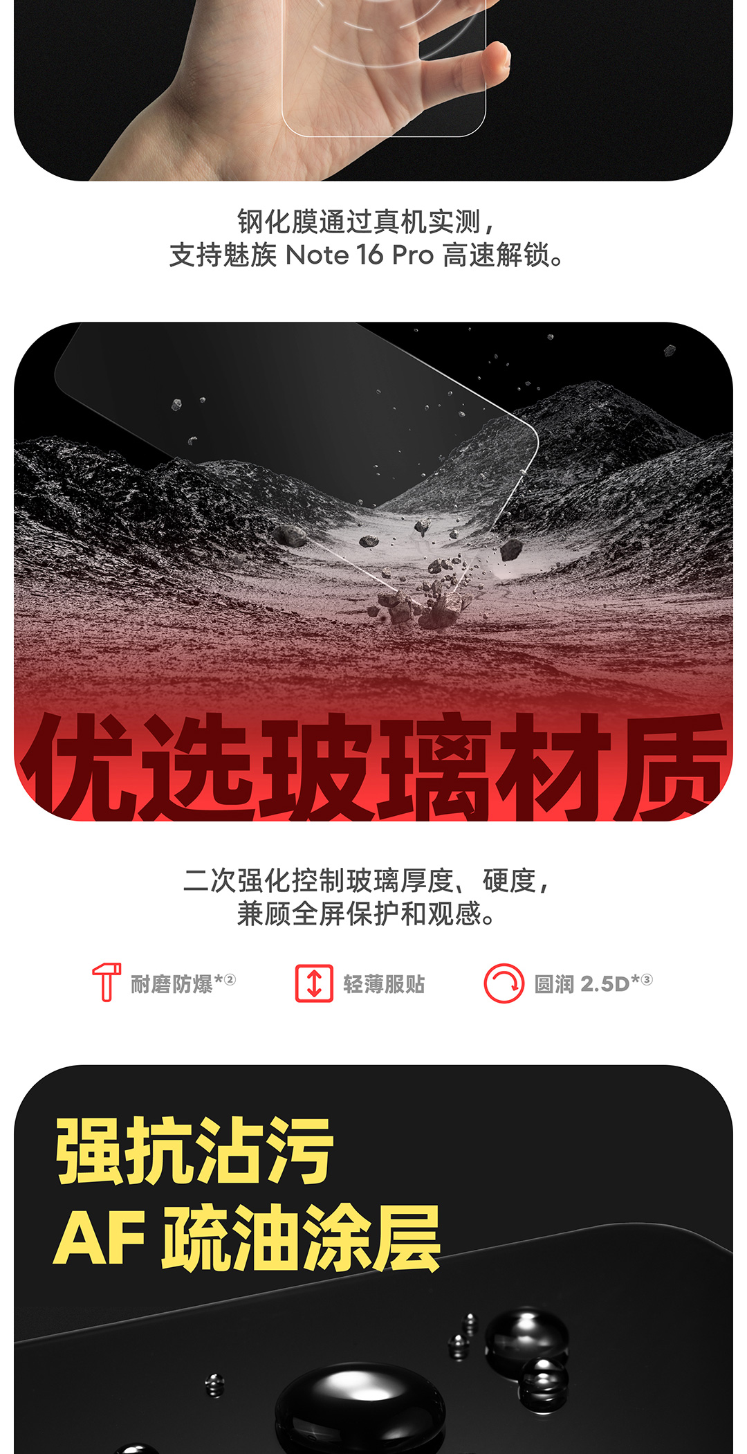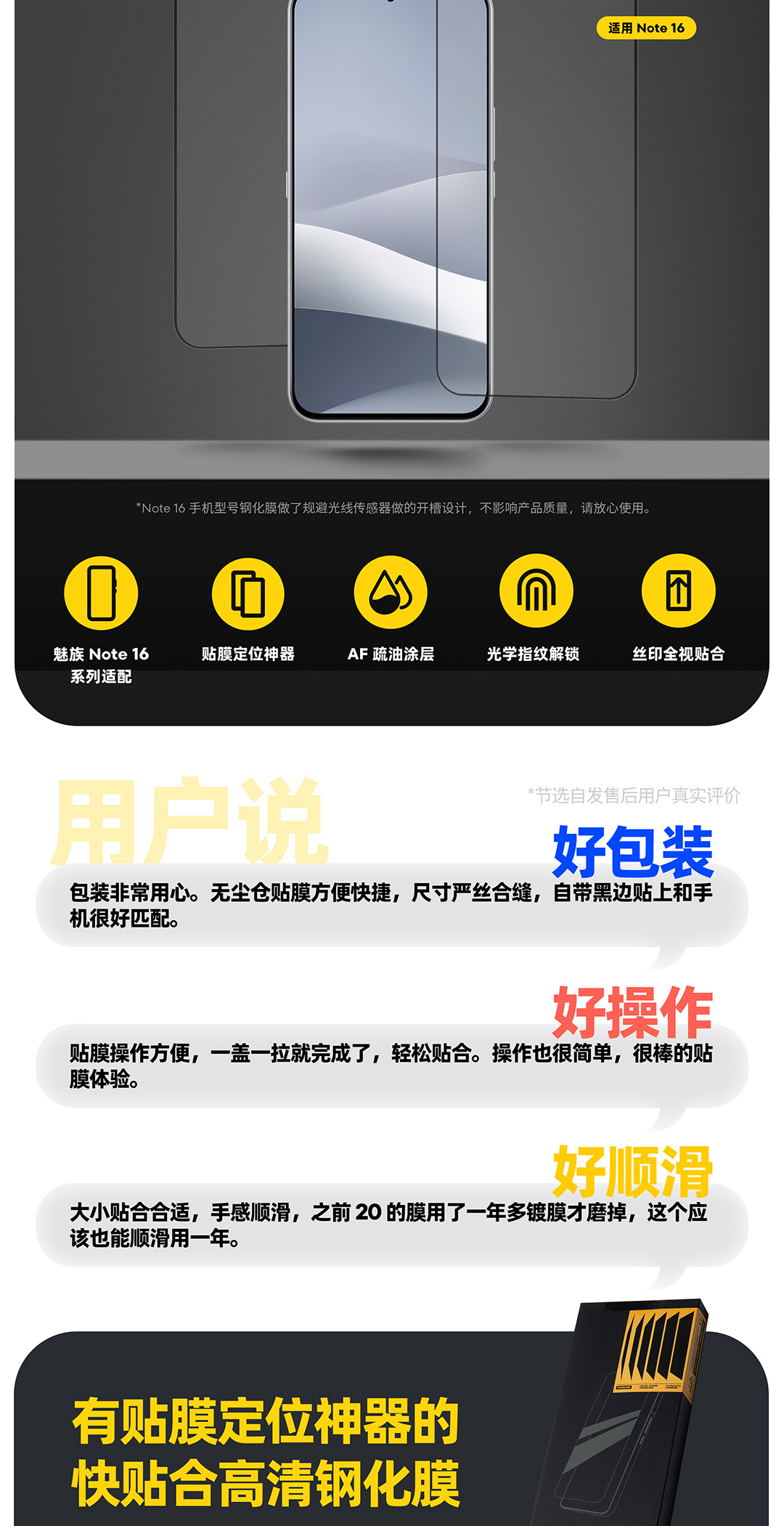 魅族 Note 16 系列适配 | 贴膜定位神器 | AF 疏油涂层 | 丝印全视贴合