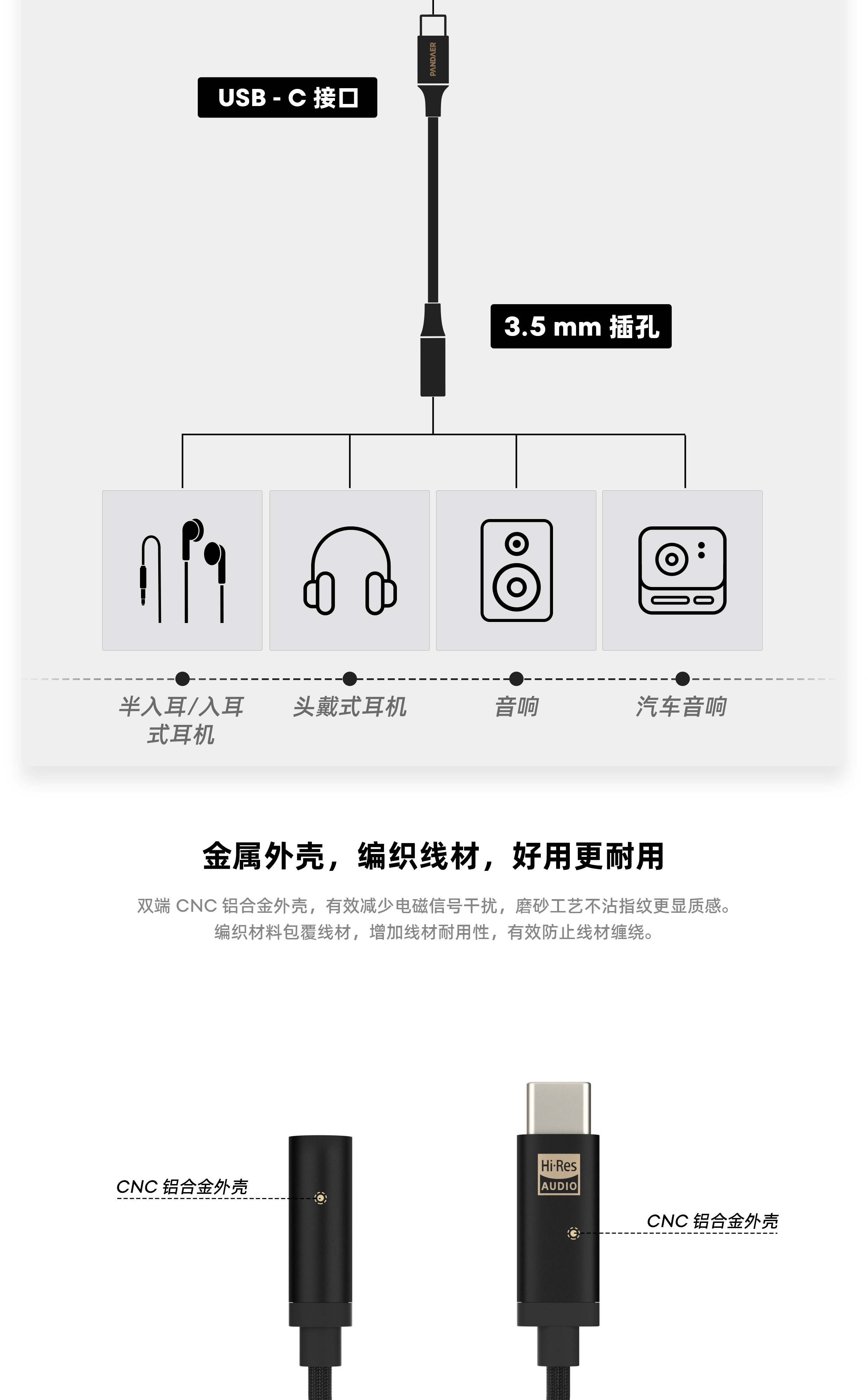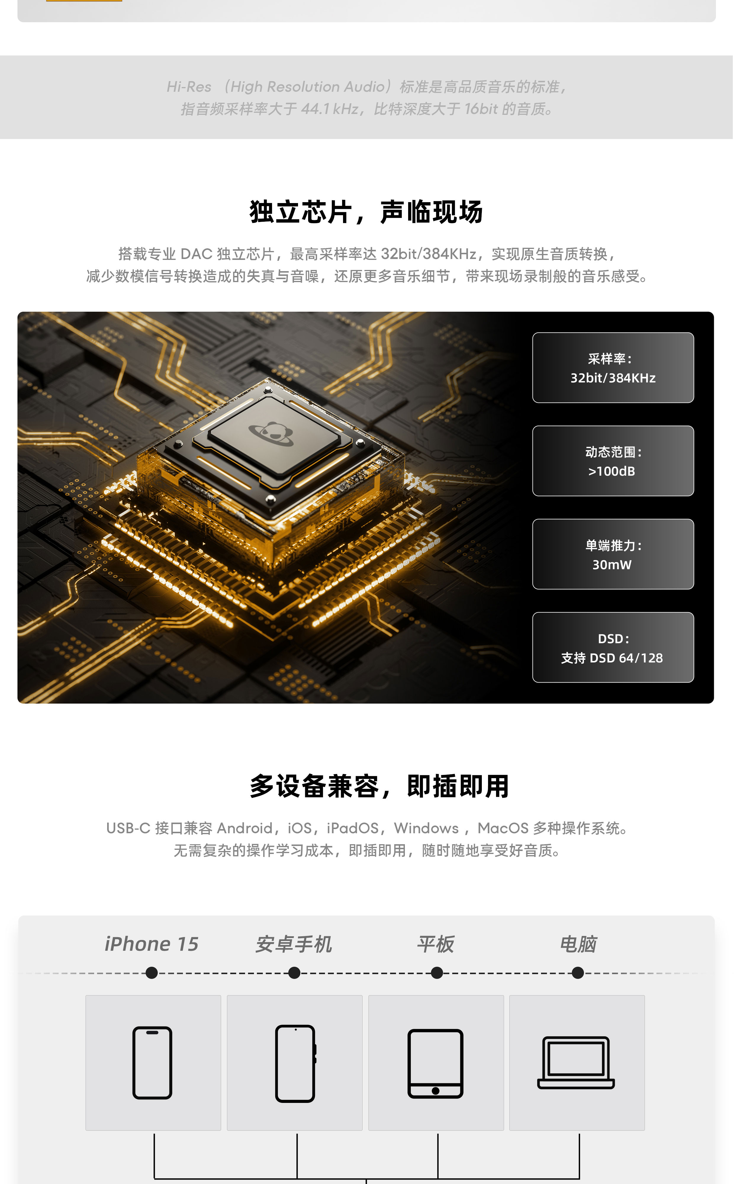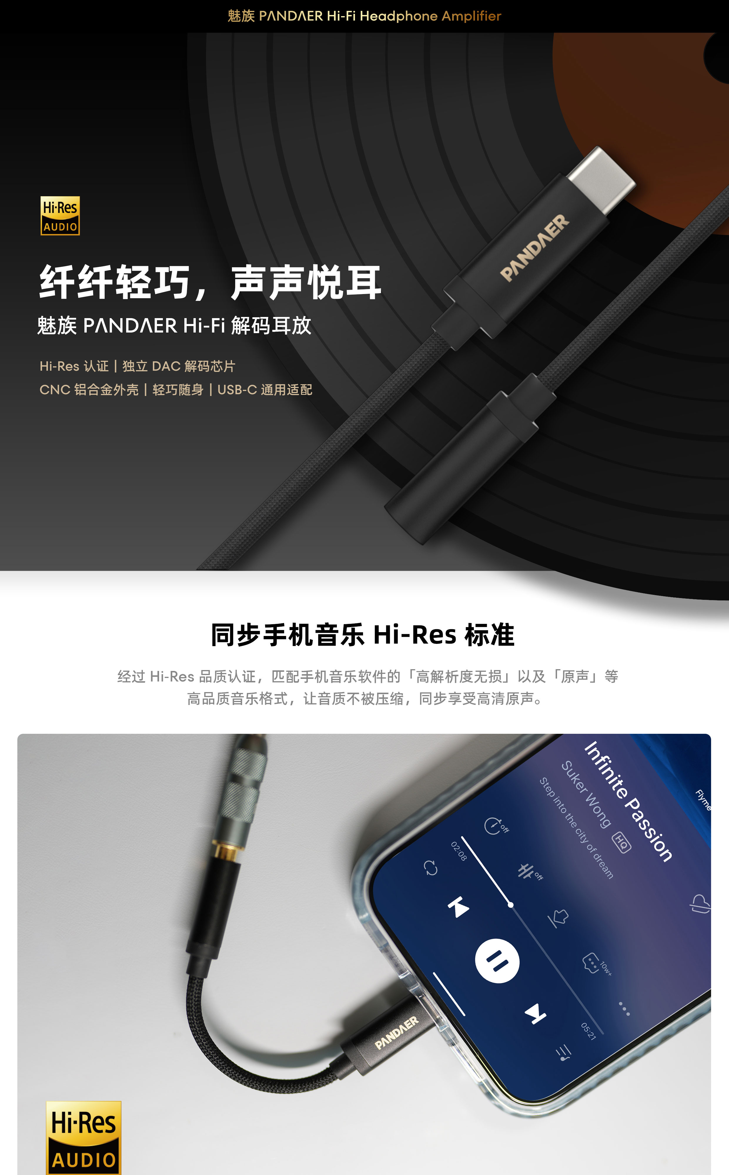 Hi-Res 认证 | 独立 DAC 解码芯片 | CNC 铝合金外壳 | 轻巧随身