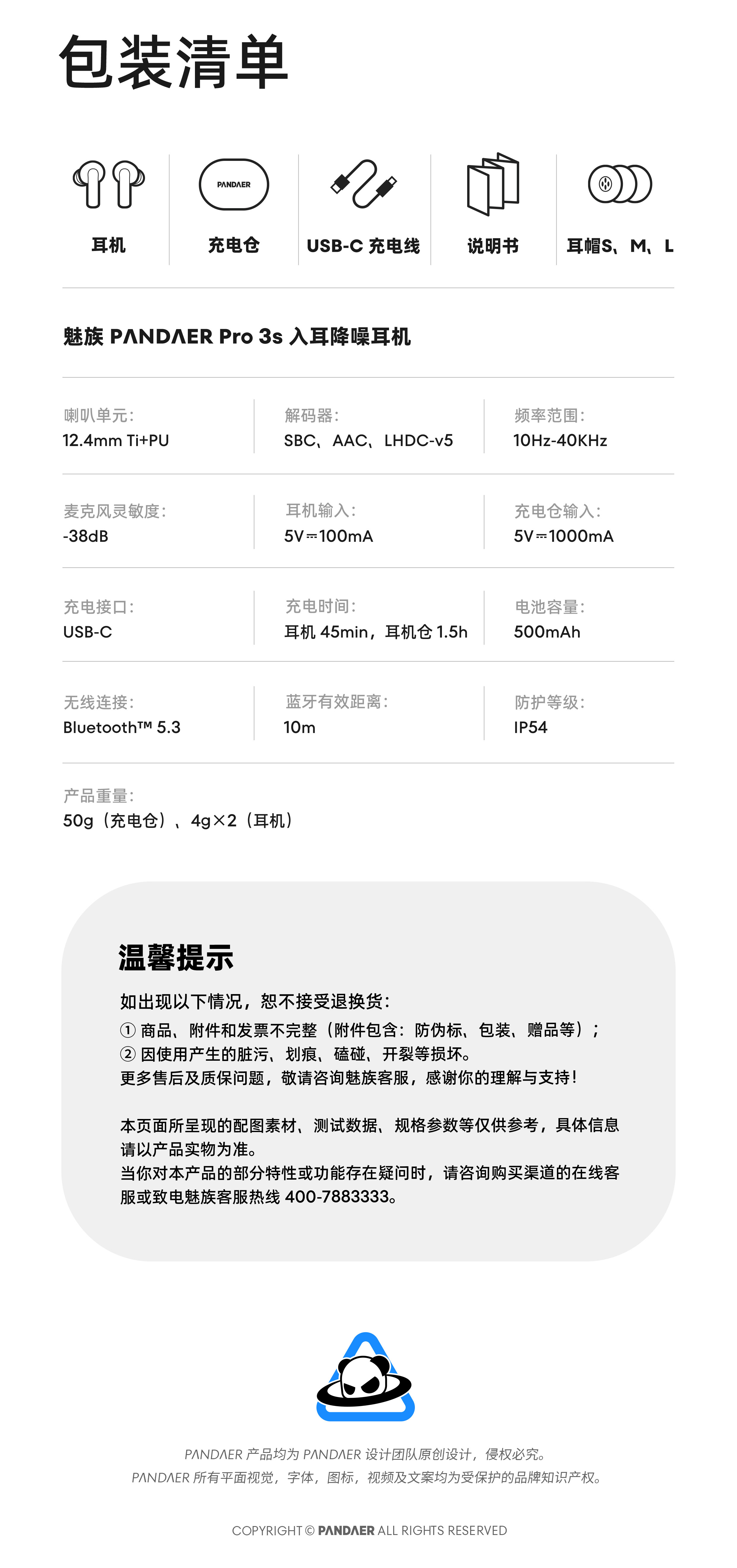 PΛNDΛER Pro 3s 入耳式降噪耳机