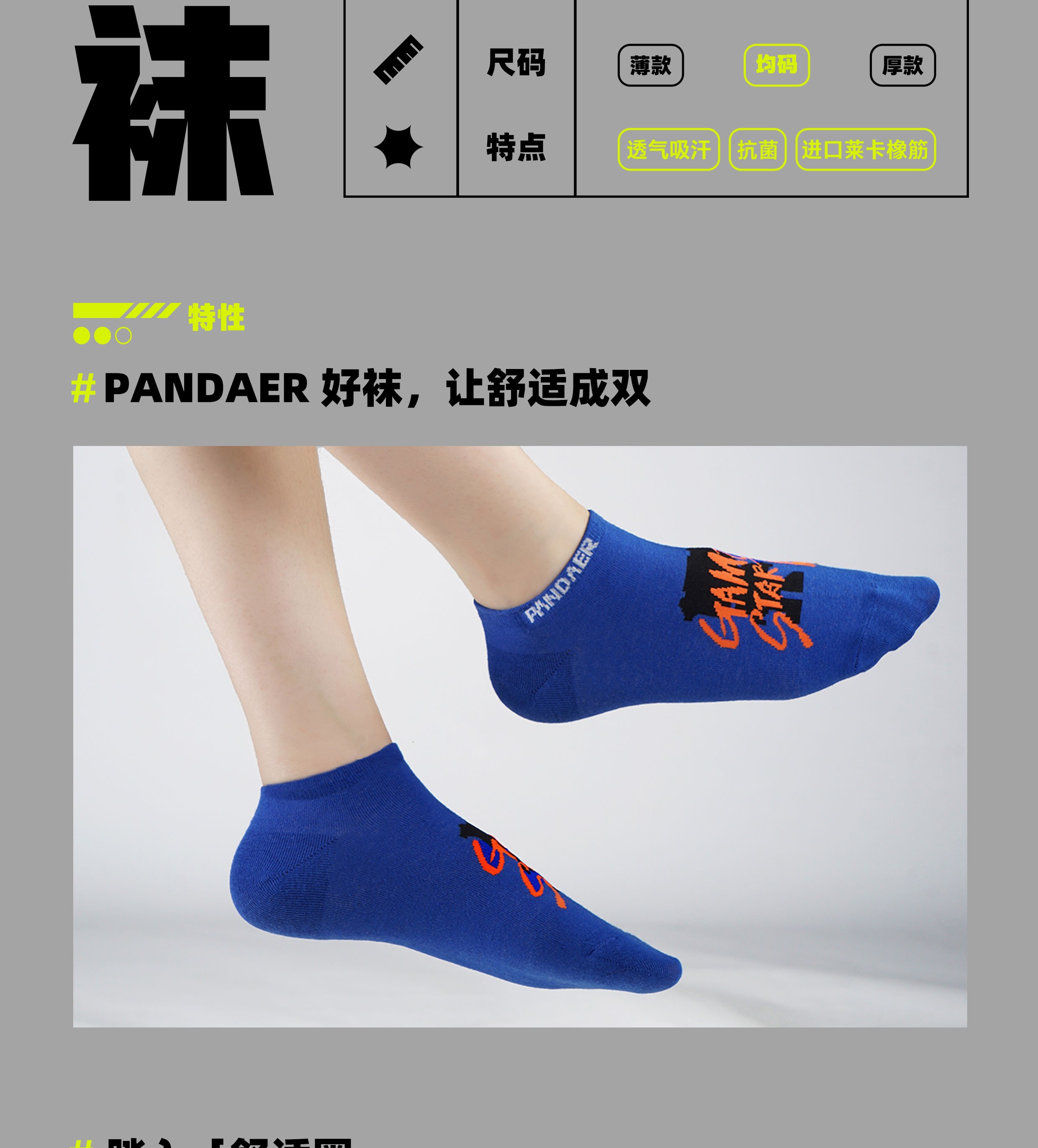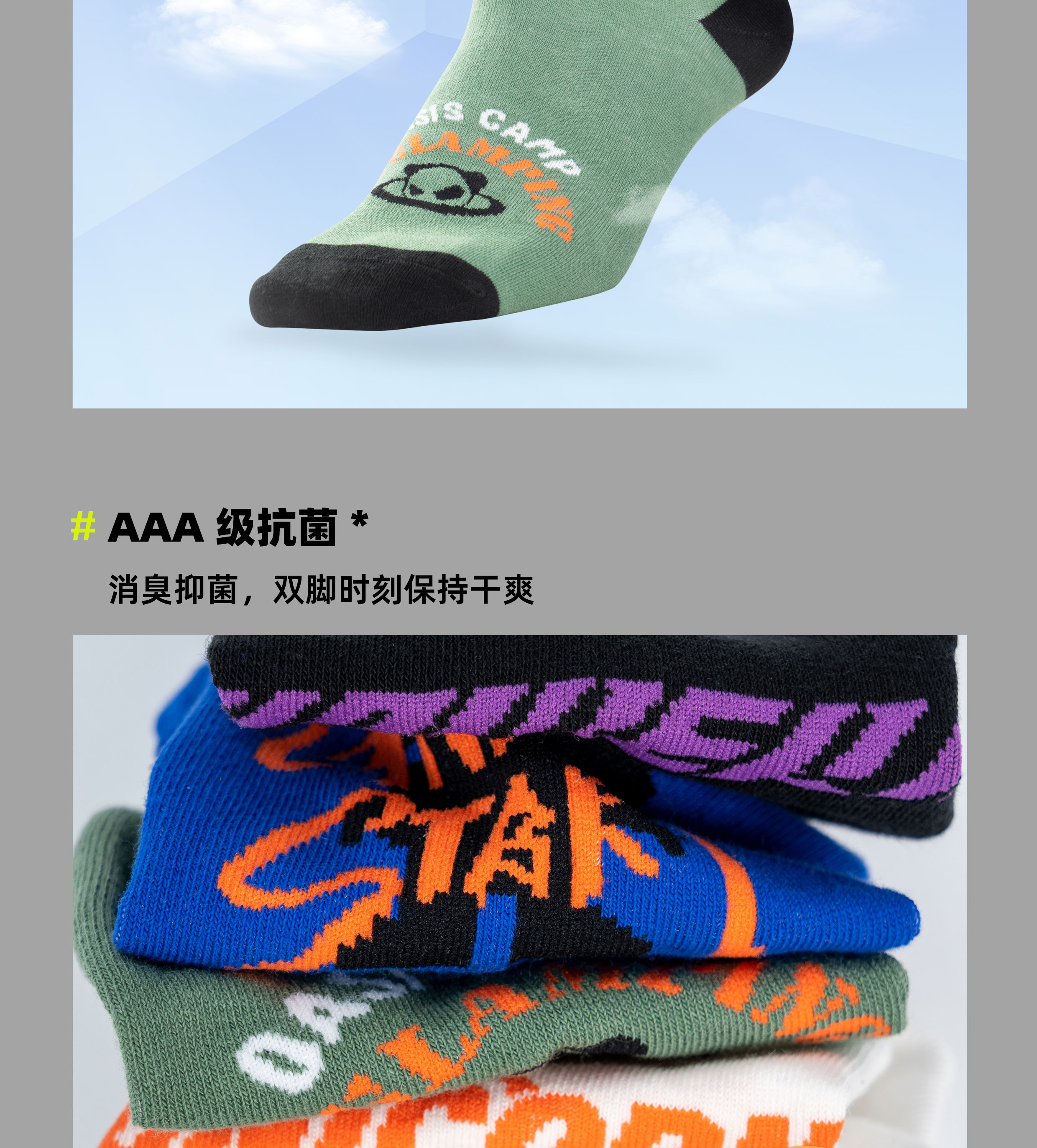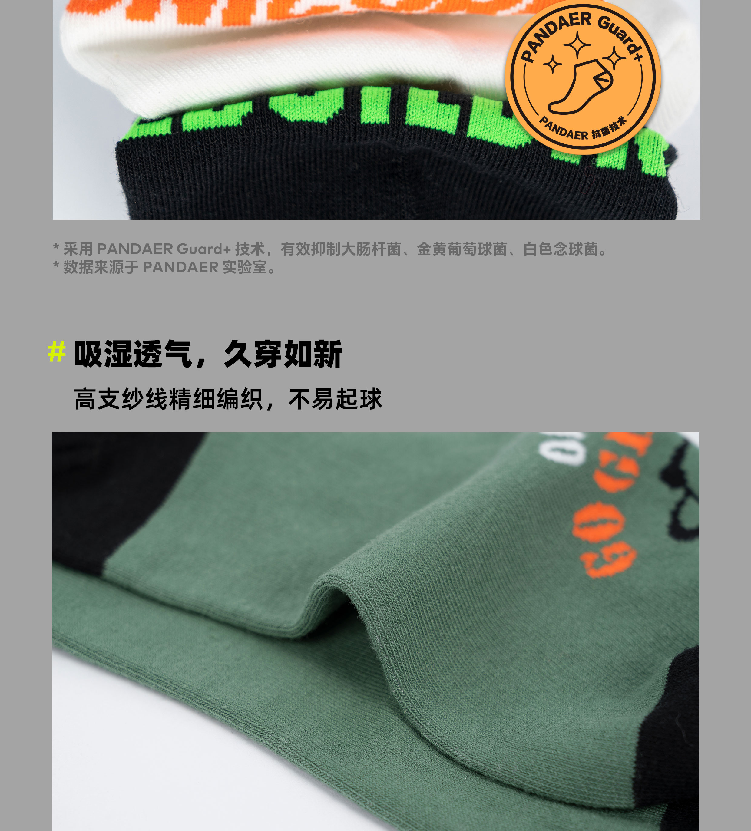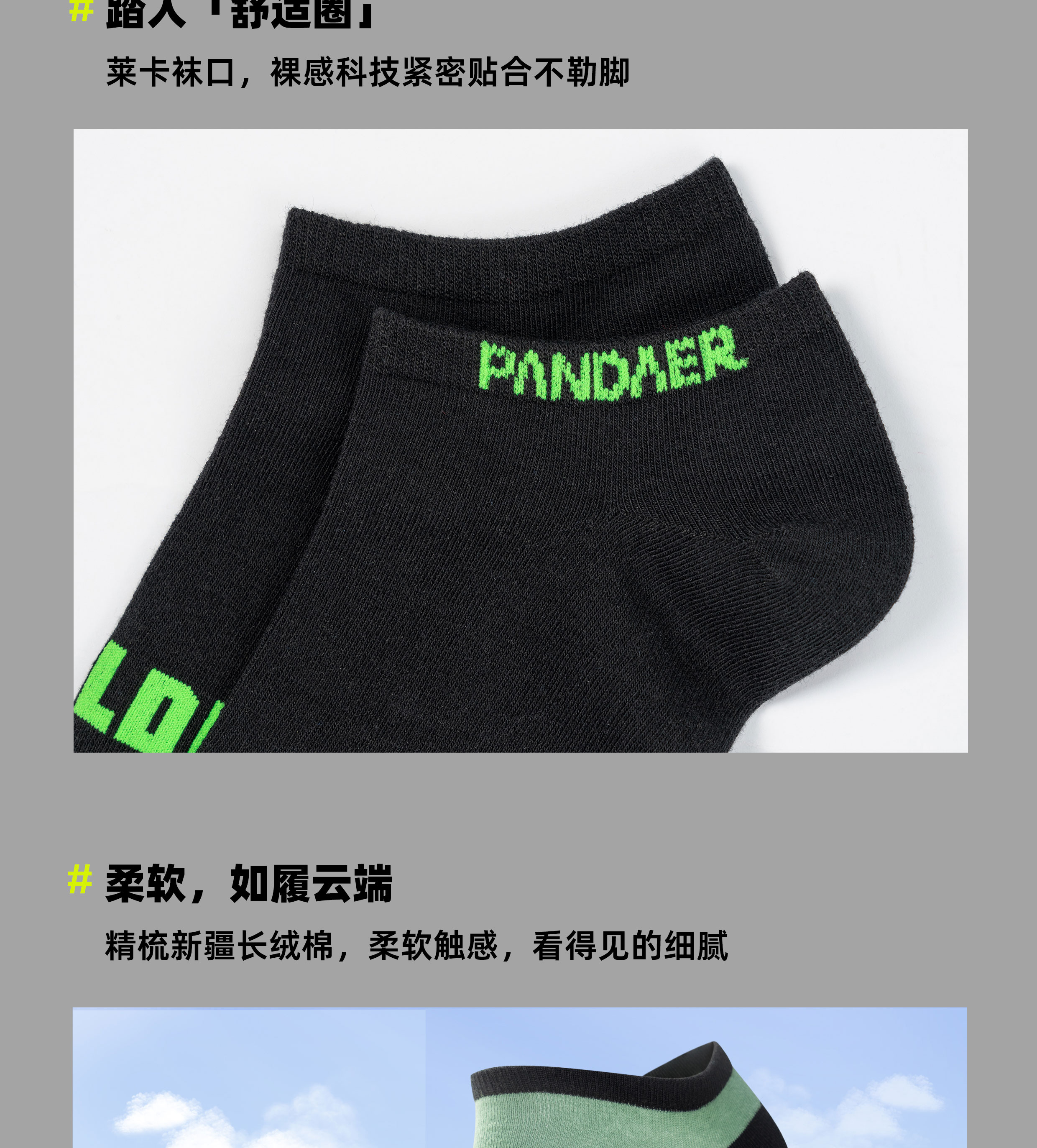 简约设计 | 新疆精梳棉 | 抗菌MAX | 密实耐磨 | 莱卡袜⼝|环保防敏