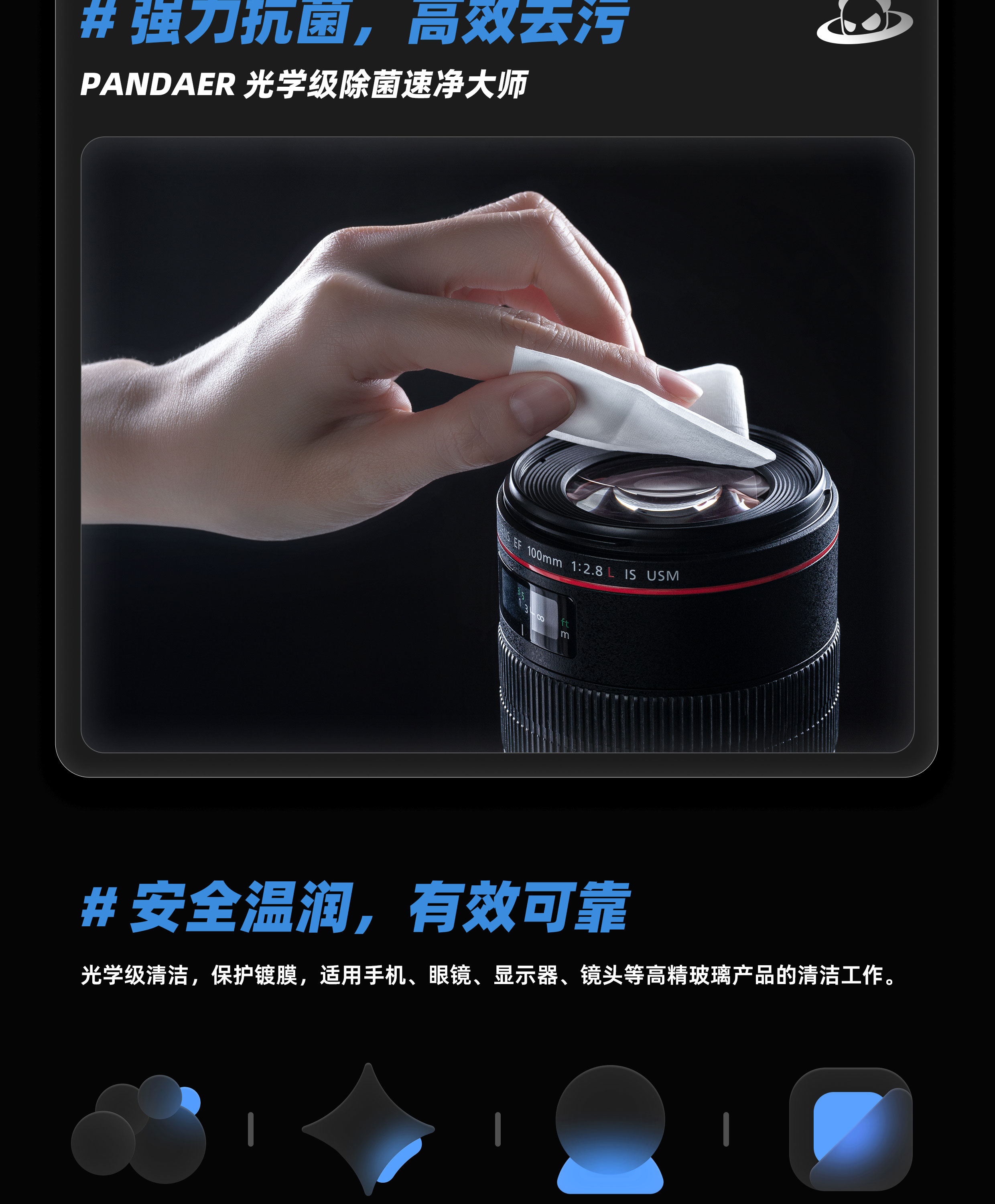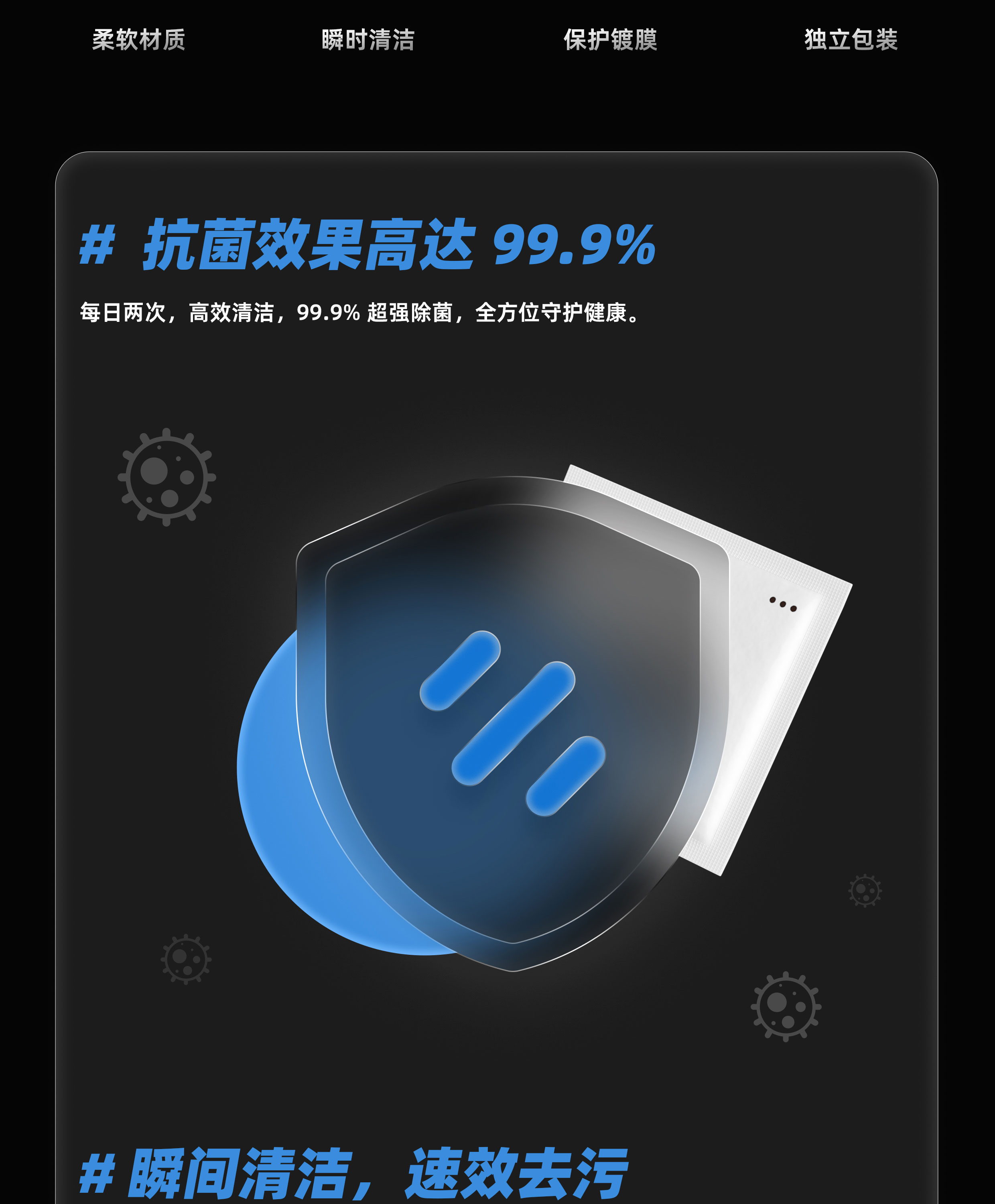 光学级清洁 | 99.9% 深入除菌 | 速干速净特调配方 | 独立包装