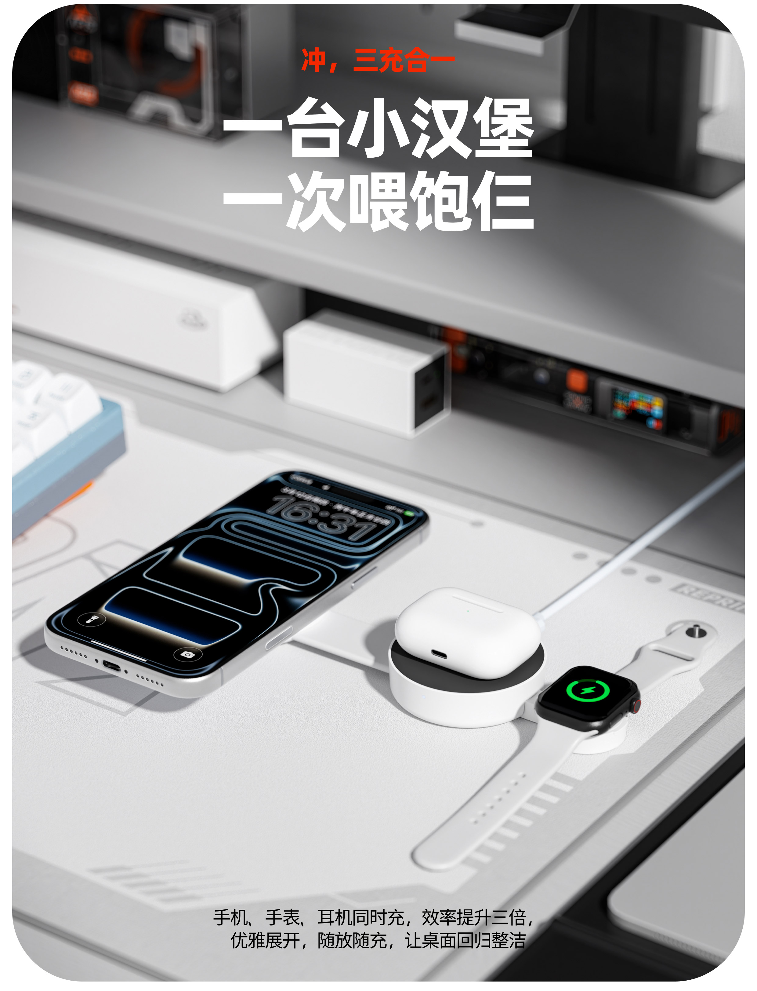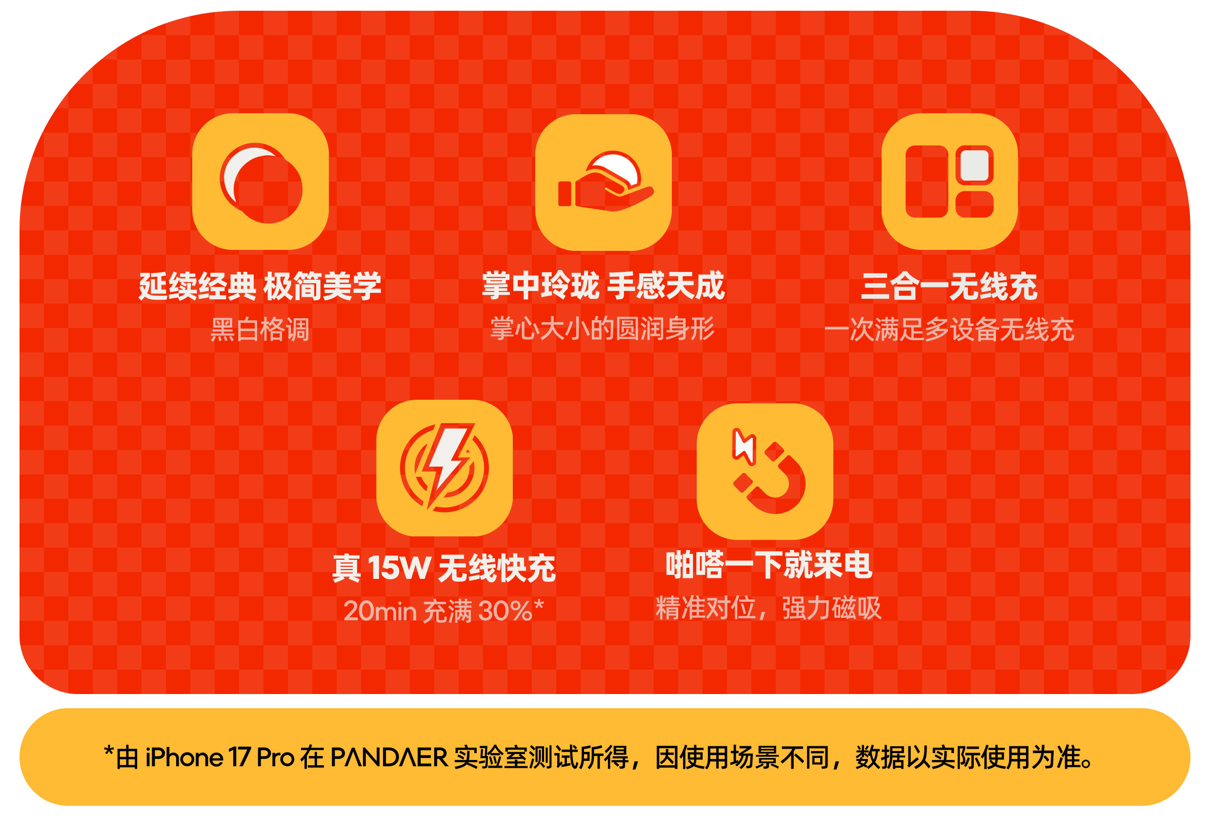 延续经典 极简美学|掌中玲珑 手感天成|三合一无线充|真 15W 无线快充
